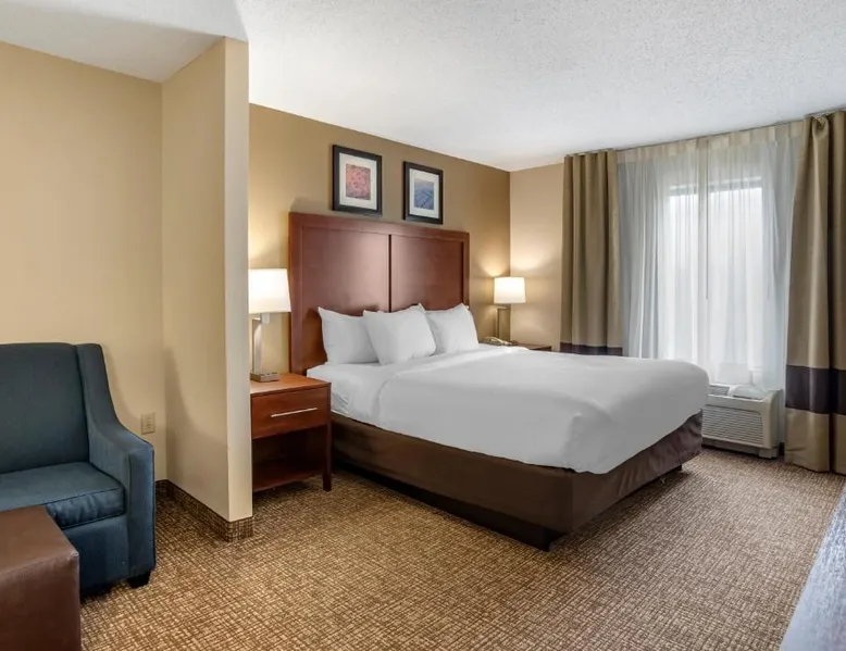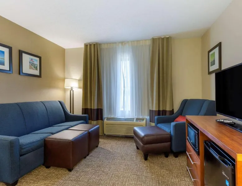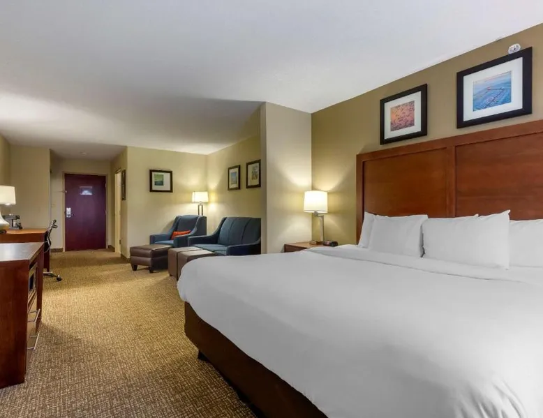 The new Comfort Inn & Suites hotel offers a great location, just three miles from Chesapeake College. This Cambridge, MD hotel is also near attractions like Blackwater National Wildlife Refuge, the Brannock Maritime Museum, the Richardson Maritime Museum, Sailwinds Park and Nathan of Dorchester, a traditional Chesapeake Bay skipjack built to preserve the nautical heritage of Dorchester County. All well-appointed guest rooms and suites offer all the conveniences needed to ensure you feel at home. In-room amenities include microwaves, refrigerators, coffee makers, hair dryers, curved shower rods, desks, irons, ironing boards and cable television. Some rooms have sofa sleepers. Nonsmoking rooms can be requested. Laundry facilities are located on the premises for your added convenience. Guests of this Cambridge, MD hotel are invited to enjoy amenities and features like: Free breakfast with hot waffles, served daily; Free wireless high-speed Internet access; Free local calls; Exercise room The on-site meeting room can accommodate most events and business functions. Access to copy and fax services is offered. The beautiful city of Cambridge is the county seat of Dorchester County and is one of the oldest towns in Maryland. Our surrounding area is a great place for fishing enthusiasts with favorite species like rockfish, bluefish, speckled trout and flounder. The spacious twin/double room features air conditioning, a tea and coffee maker, as well as a private bathroom boasting a bath and a shower. The unit has 1 bed.