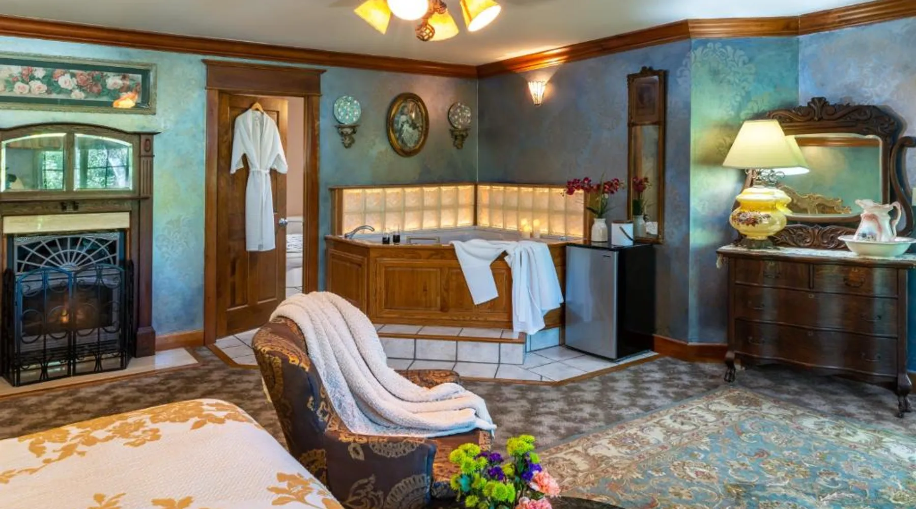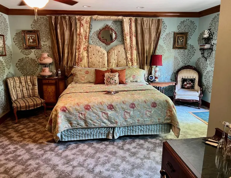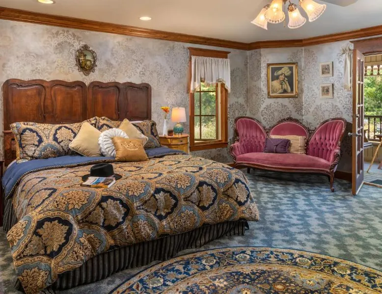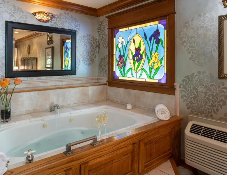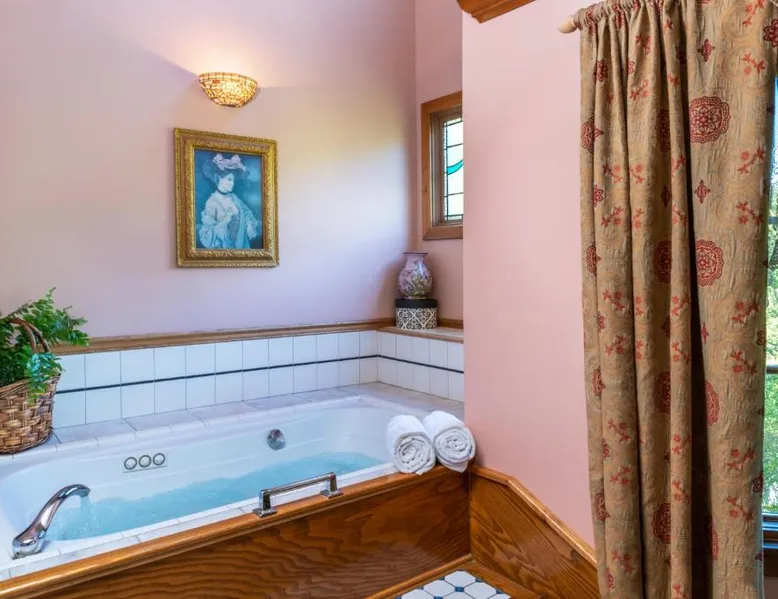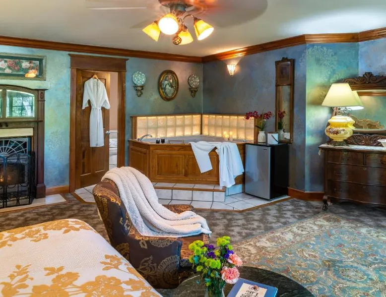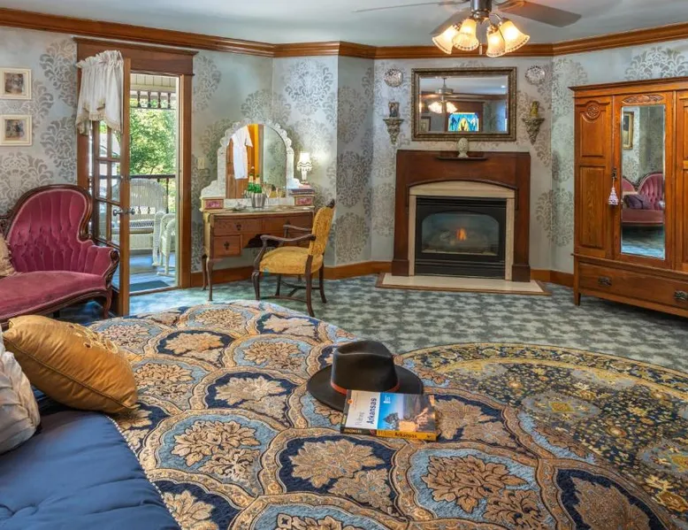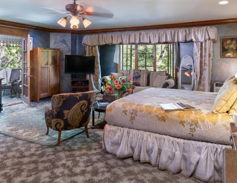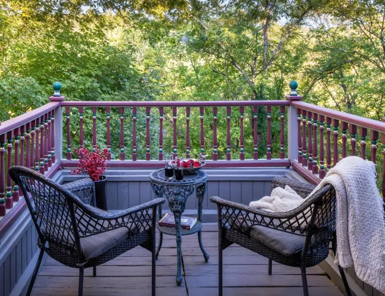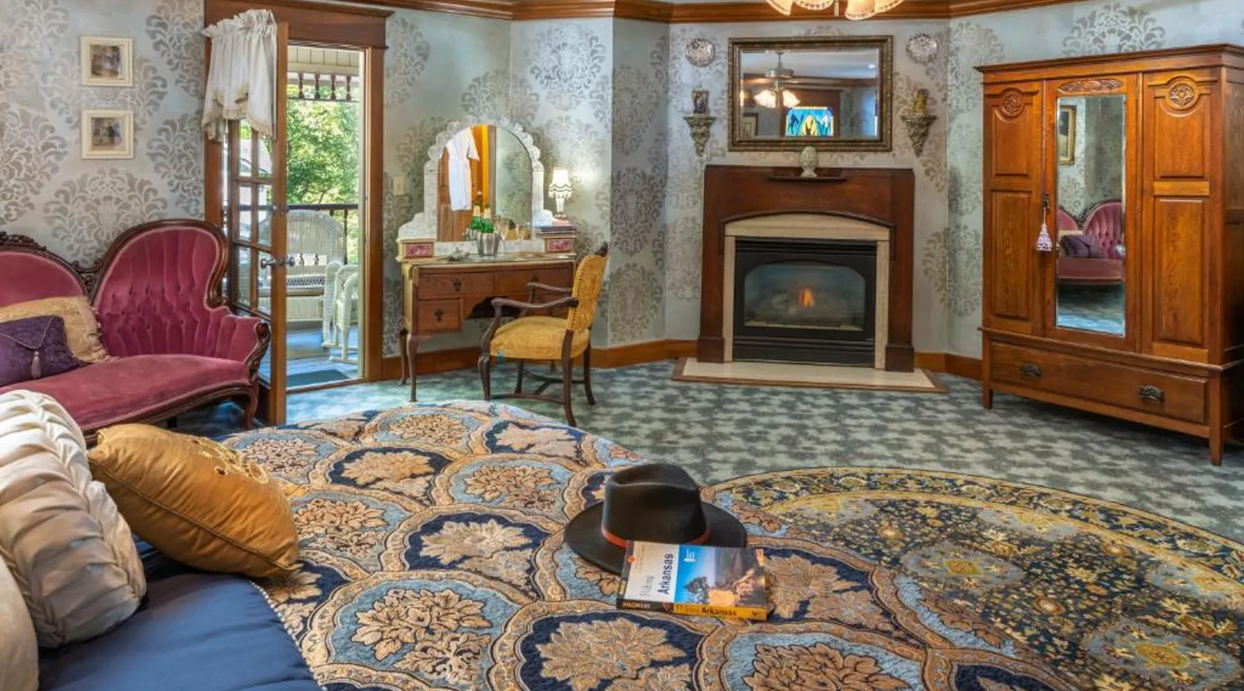 Comfortable Accommodations: Angel at Rose Hall in Eureka Springs offers 4-star comfort with air-conditioning, balconies, and private bathrooms. Each room includes a work desk, TV, and soundproofing for a relaxing stay. Exceptional Facilities: Guests can enjoy a garden, terrace, and free WiFi. Additional amenities include an outdoor fireplace, hot tub, and outdoor seating area. Free on-site private parking is available. Convenient Location: Located less than 0.6 mi from Eureka Springs Historic District and 40 mi from Boone County Airport. Nearby attractions include The Great Passion Play (1.9 mi) and Onyx Cave Park (6.2 mi). Guest Favorites: Highly rated for its friendly host, delicious breakfast, and convenient location. Activities available include fishing, hiking, cycling, and snorkeling. This suite's special features are the spa bath and the fireplace. This suite includes 1 living room, 1 separate bedroom and 1 bathroom with a walk-in shower and free toiletries. This air-conditioned suite consists of a dining area, a flat-screen TV with cable channels soundproof walls and a balcony. The unit has 1 bed.