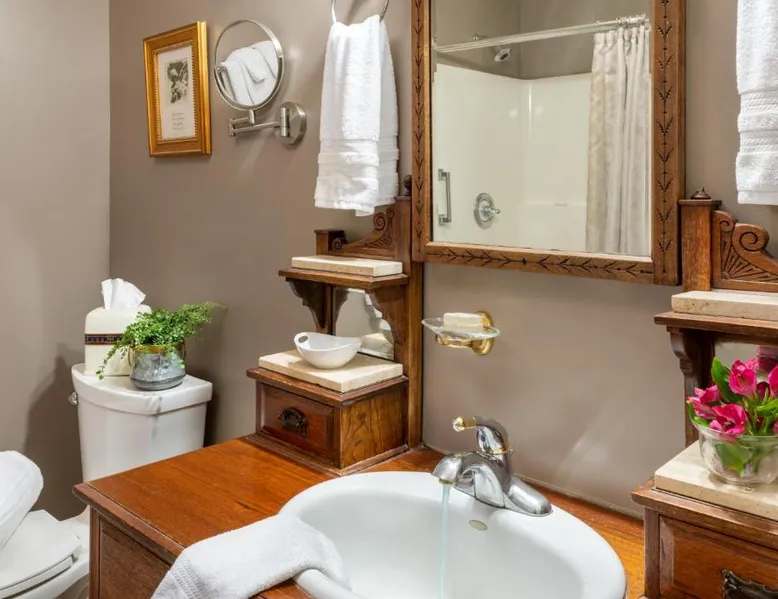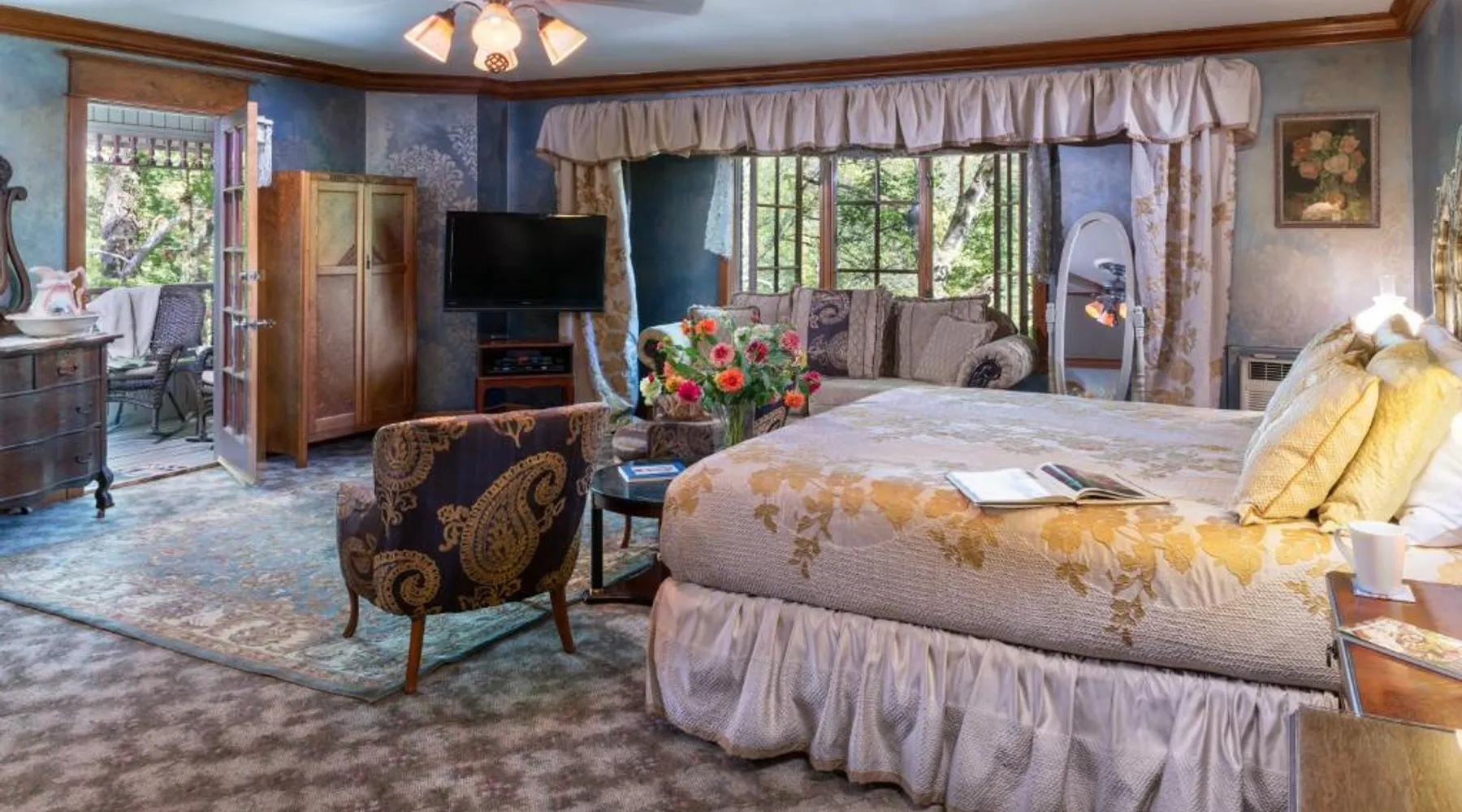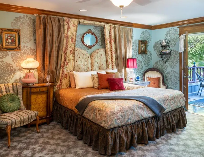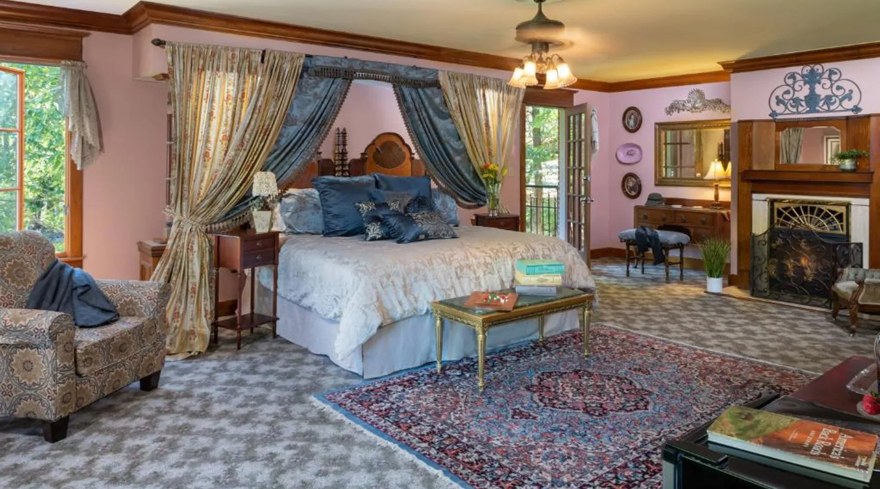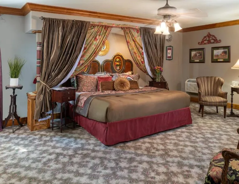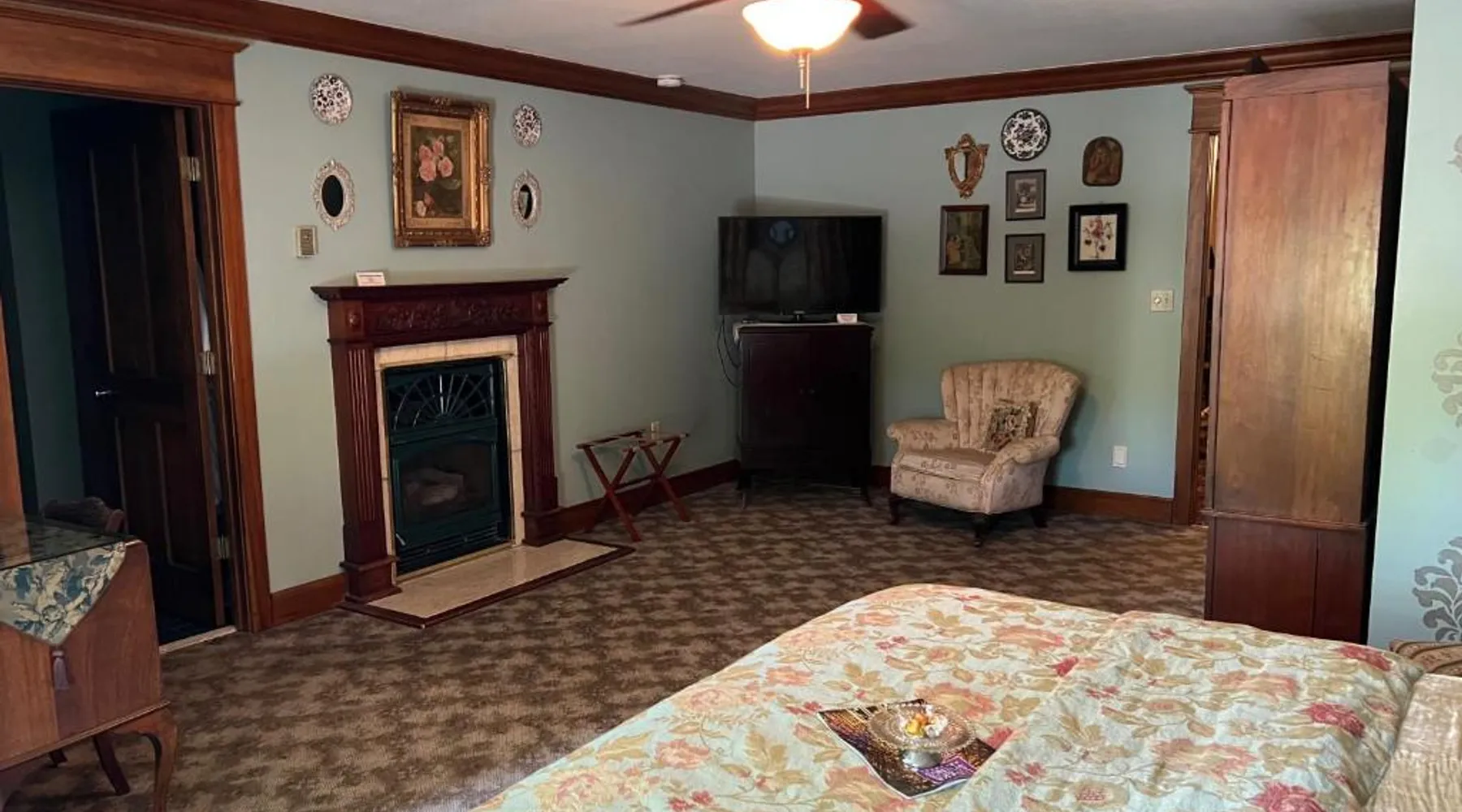 Comfortable Accommodations: Angel at Rose Hall in Eureka Springs offers 4-star comfort with air-conditioning, balconies, and private bathrooms. Each room includes a work desk, TV, and soundproofing for a relaxing stay. Exceptional Facilities: Guests can enjoy a garden, terrace, and free WiFi. Additional amenities include an outdoor fireplace, hot tub, and outdoor seating area. Free on-site private parking is available. Convenient Location: Located less than 0.6 mi from Eureka Springs Historic District and 40 mi from Boone County Airport. Nearby attractions include The Great Passion Play (1.9 mi) and Onyx Cave Park (6.2 mi). Guest Favorites: Highly rated for its friendly host, delicious breakfast, and convenient location. Activities available include fishing, hiking, cycling, and snorkeling. This suite's special features are the spa bath and the fireplace. This suite includes 1 living room, 1 separate bedroom and 1 bathroom with a walk-in shower and free toiletries. This air-conditioned suite consists of a dining area, a flat-screen TV with cable channels soundproof walls and a balcony. The unit has 1 bed.