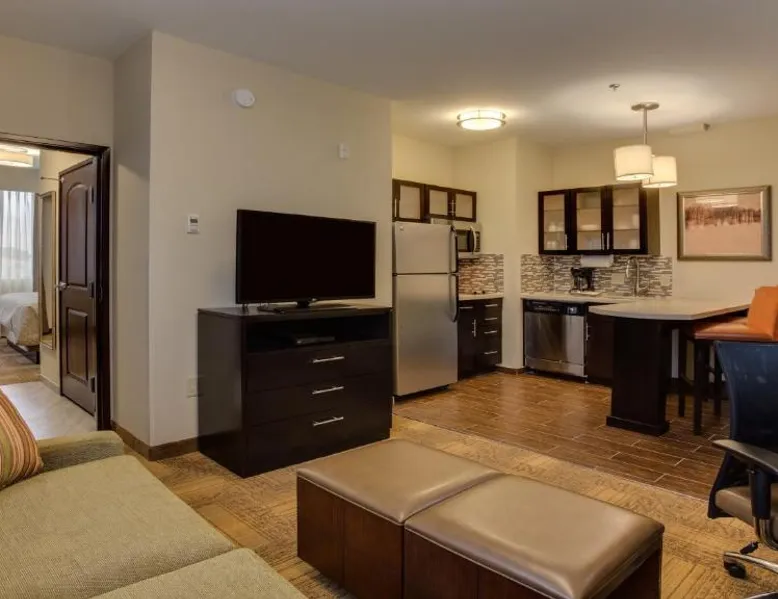 Comfortable Accommodations: Staybridge Suites - Johnson City by IHG in Johnson City offers spacious rooms with air-conditioning, private bathrooms, baths, and TVs. Guests appreciate the room comfort and size. Essential Facilities: The hotel provides free WiFi and free on-site private parking. Reception staff speak English. Local Attractions: Located 11 mi from Tri-Cities Regional Airport, the property is near Tweetsie Trail and George L. Carter Railroad Museum (4.3 mi), Tipton-Haynes Historic Site (5.6 mi), Hands On! Discovery Center (9.3 mi), and Bristol Motor Speedway (14 mi). Guest Satisfaction: Highly rated by guests for room comfort, size, and breakfast provided by the property. This suite offers a private bathroom, and air conditioning. This suite provides a flat-screen TV. The unit has 2 beds.