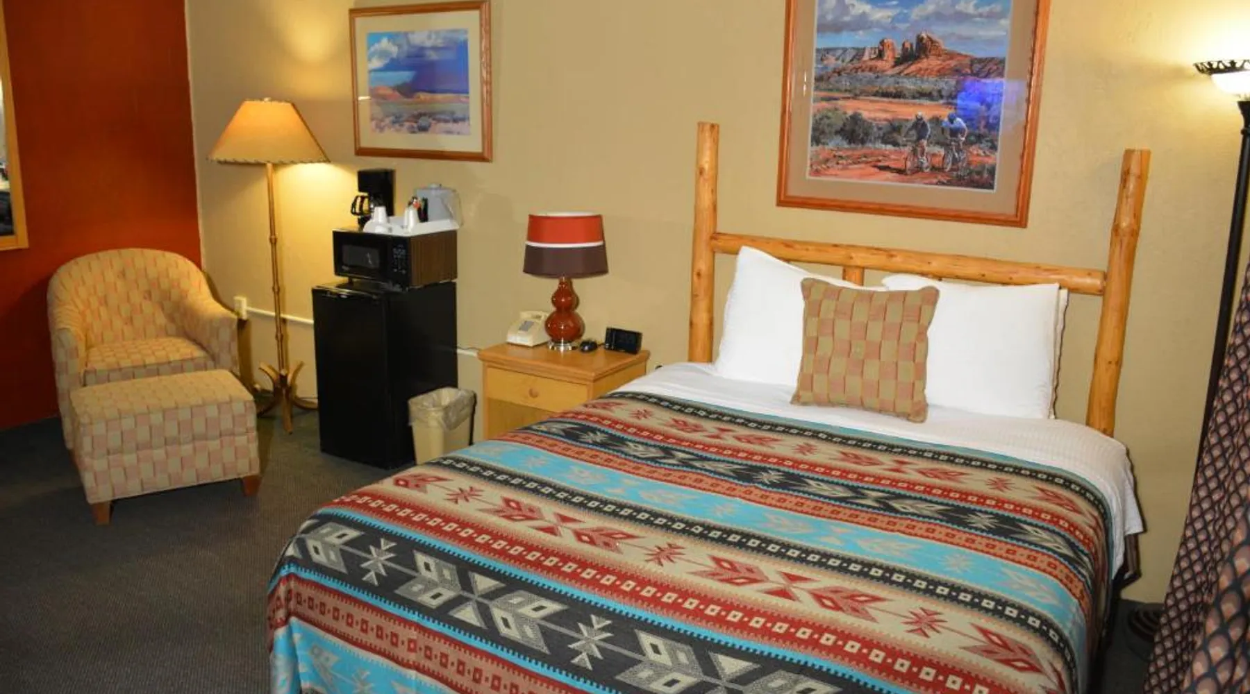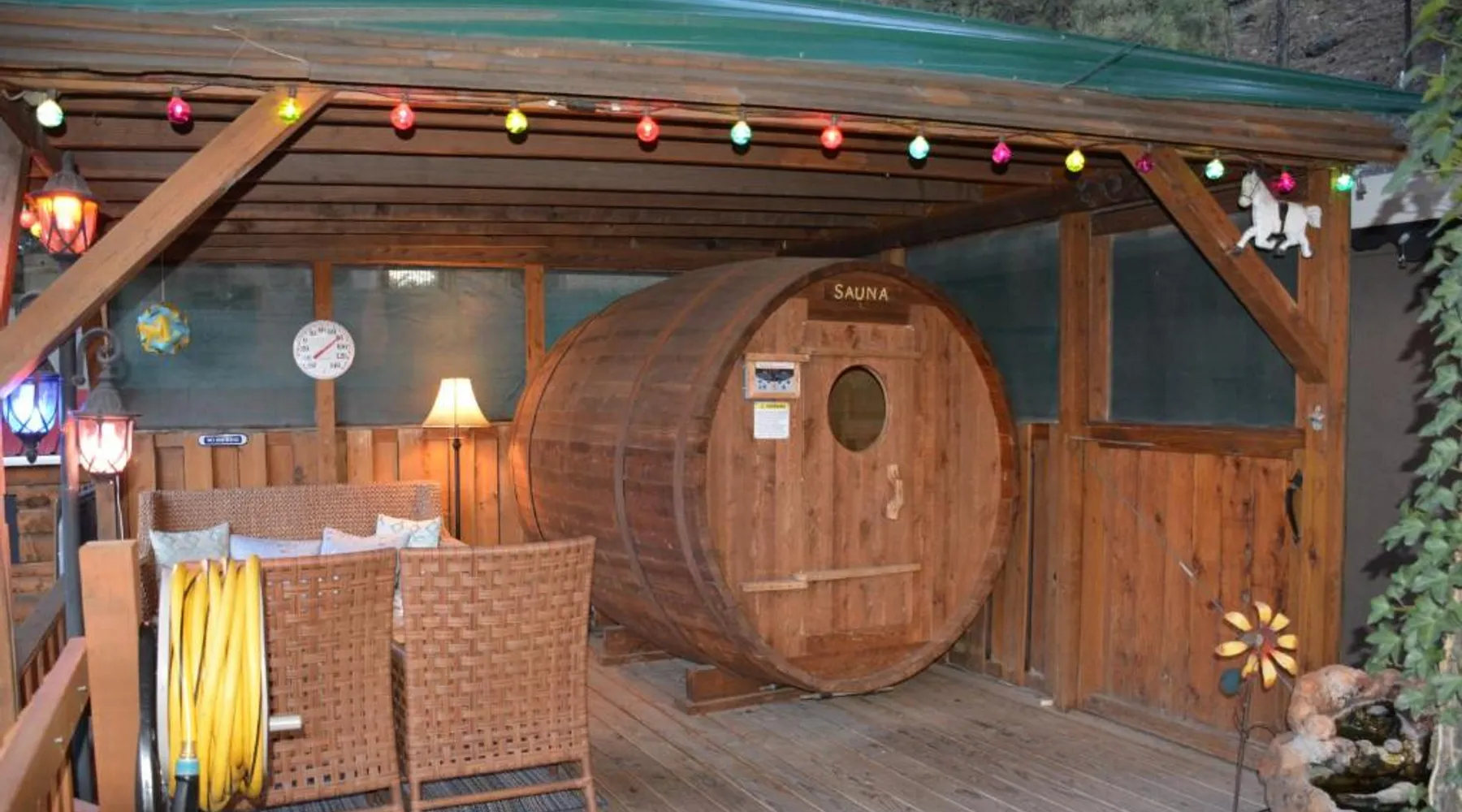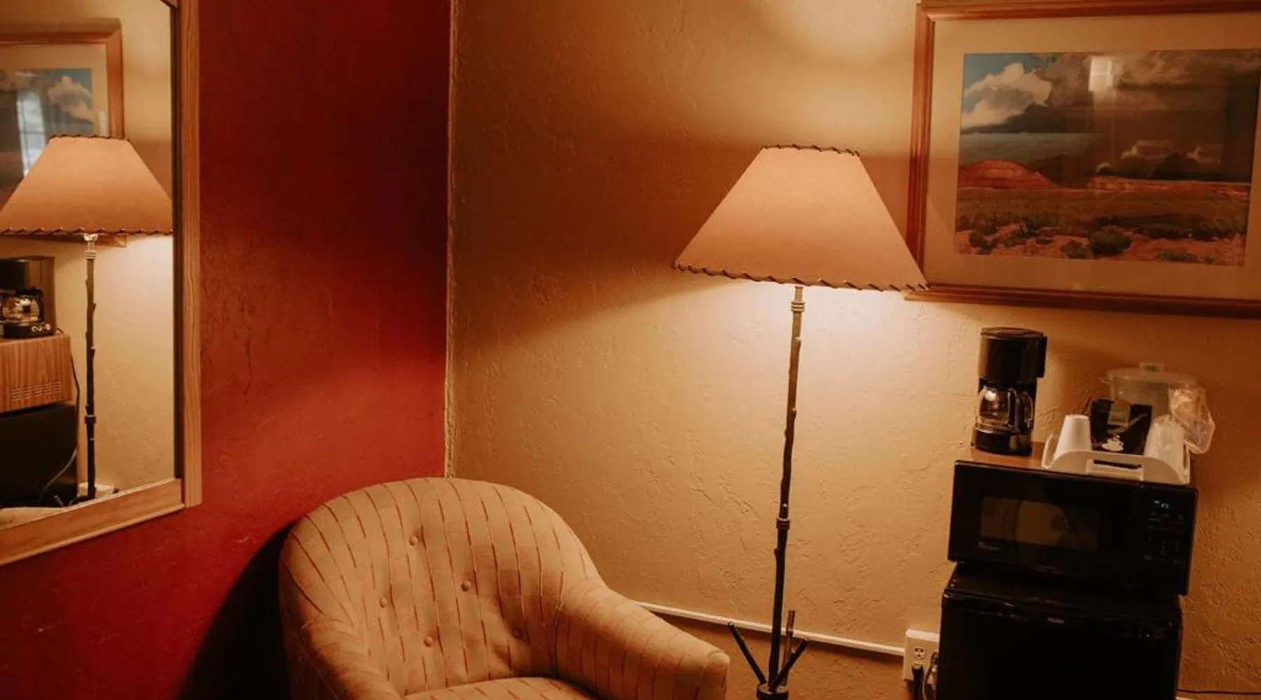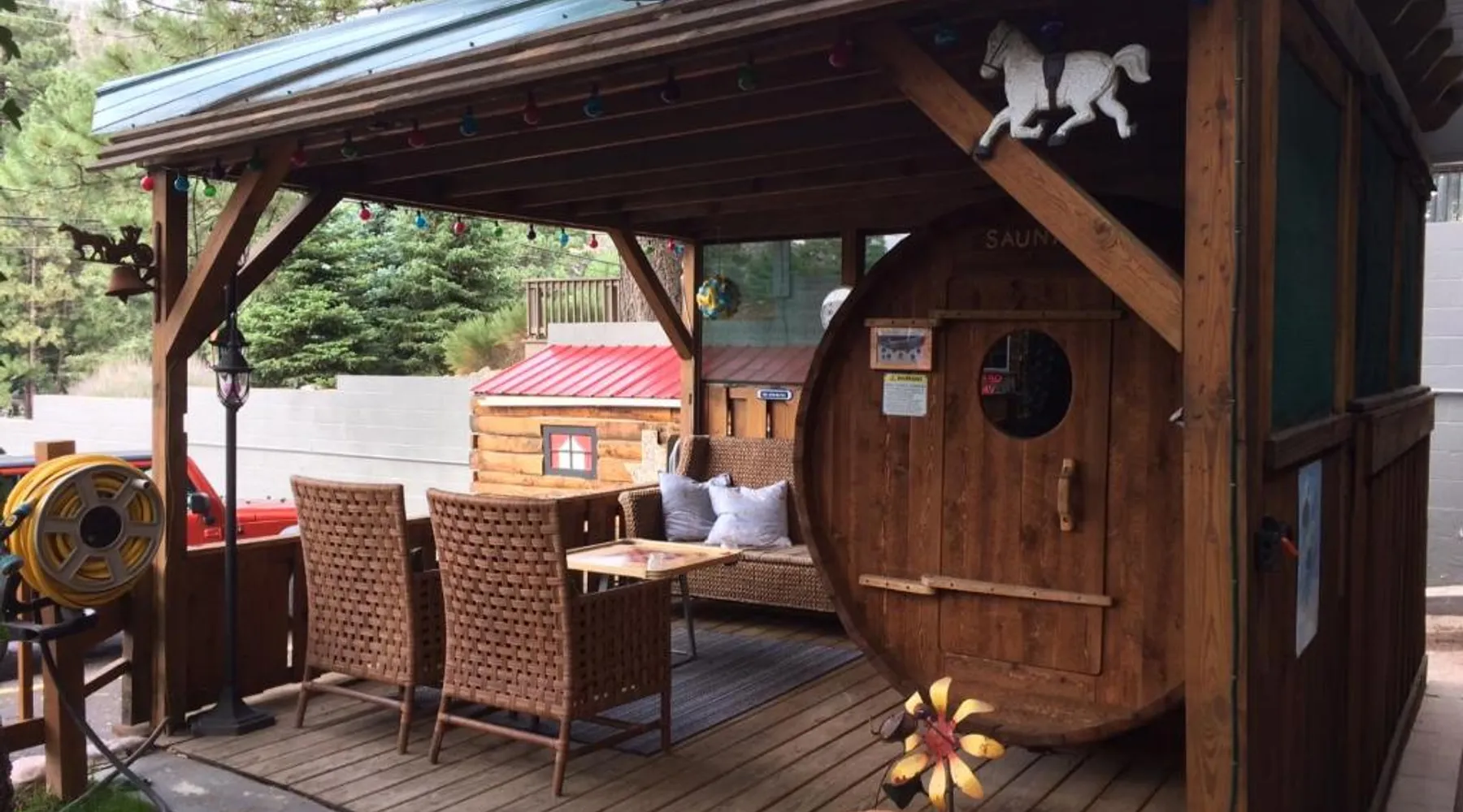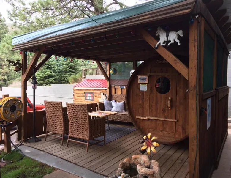 Located 17 miles from Ski Apache, this hotel is 3 miles from of Inn of the Mountain Gods Casino and Ruidoso Downs Race Track. A continental breakfast consisting of homemade muffins and locally roasted coffee is offered daily and free Wi-Fi is offered. Cable TV is featured in all rooms at Sitzmark Chalet Inn. Simply furnished, each room is equipped with tea and coffee-making facilities. A fridge and microwave are included. Guests of Sitzmark Chalet Inn Ruidoso can relax in the unique whiskey barrel steam sauna. BBQ facilities are available for outdoor entertainment. A lending library of books, board games and disc golf sets is offered. Ruidoso Downs Race Track is 3 miles from this hotel. This second floor suite features its own foyer. In the suite is a seating area with an electric fireplace for ambiance, cable tv with dvd player, a microwave oven, refrigerator and café table which seats 4. An private bathroom is also included Please note that this in an upper floor room.