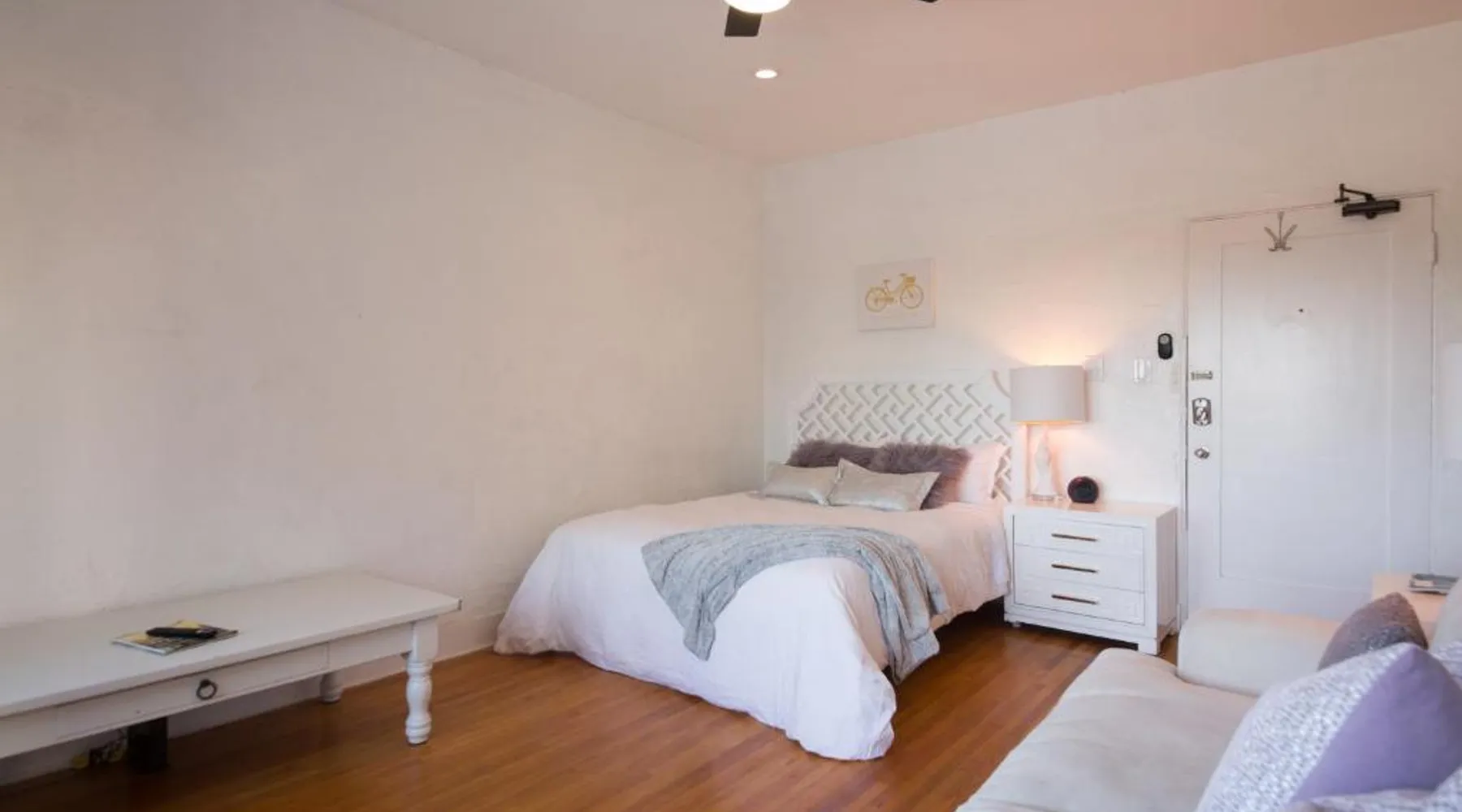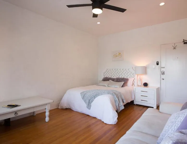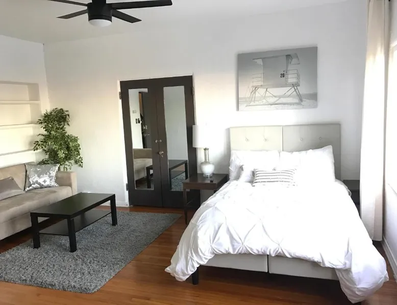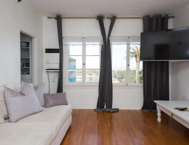 Beachfront Location: The Riviera in San Pedro offers direct beachfront access and stunning sea views. Guests can relax on the sandy shores just a 4-minute walk from Cabrillo Beach. Modern Amenities: The apartment features free WiFi, air-conditioning, and a fully equipped kitchenette. Additional amenities include a private bathroom with a walk-in shower, streaming services, and a work desk. Convenient Facilities: The property provides free on-site private parking, an electric vehicle charging station, bicycle parking, and express check-in and check-out services. Car hire and free toiletries are also available. Nearby Attractions: Long Beach Airport is 15 mi away, with attractions such as Battleship Iowa Museum (3.1 mi) and Queen Mary (9.9 mi) nearby. This apartment includes a kitchen, a seating area, 1 separate bedroom and 1 bathroom with a bath and a shower. In the well-equipped kitchen, guests will find a stovetop, a refrigerator, an oven and a microwave. The apartment offers a tea and coffee maker, a wardrobe, a sofa, a flat-screen TV with streaming services, as well as sea views. The unit has 1 bed.