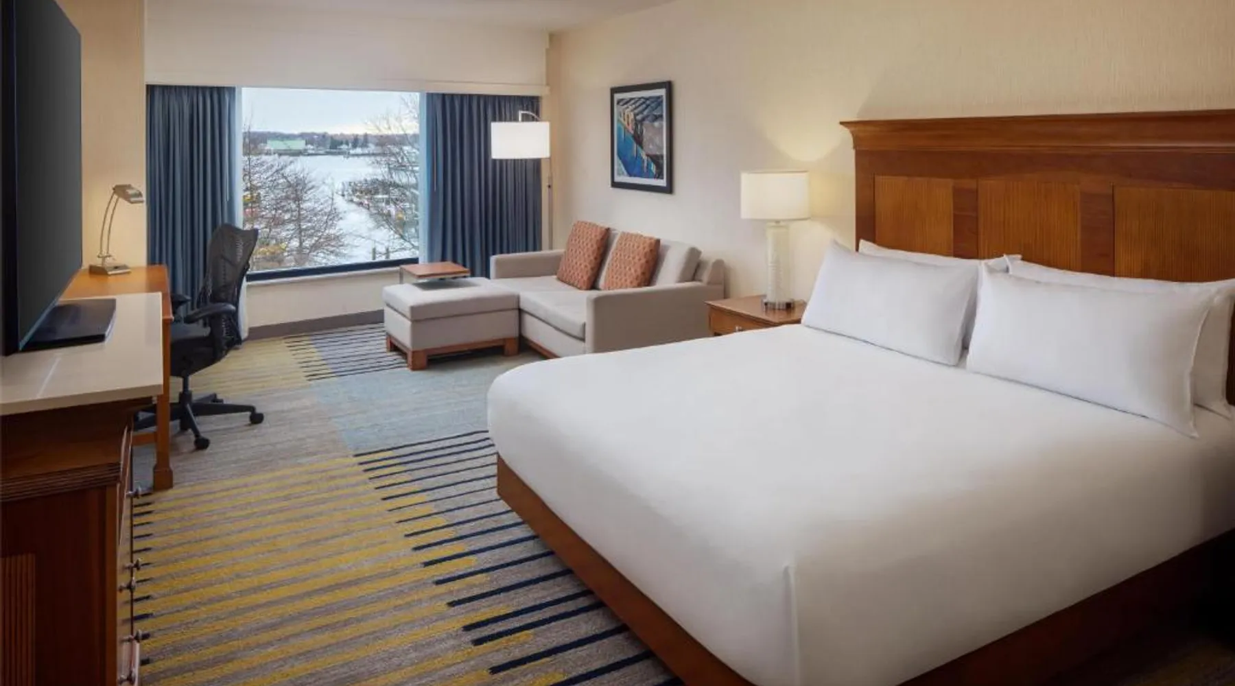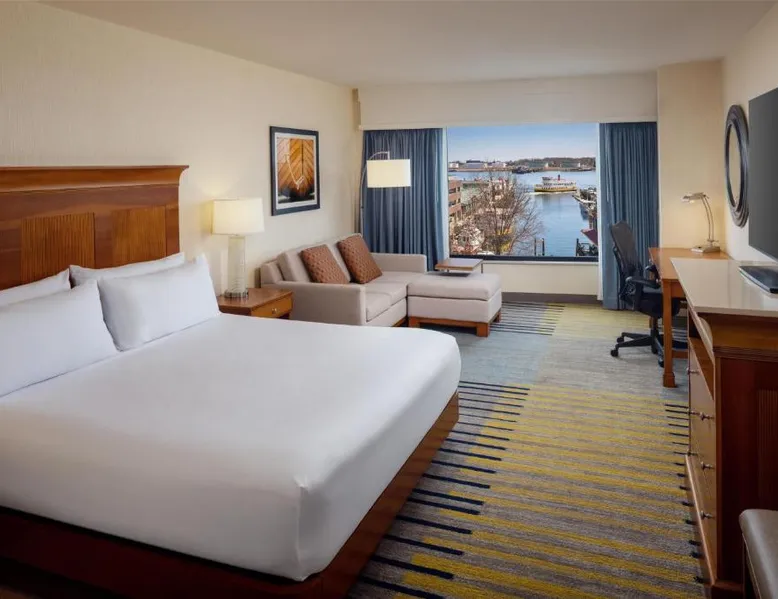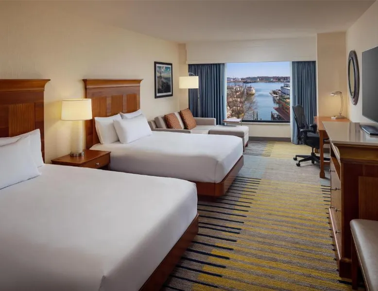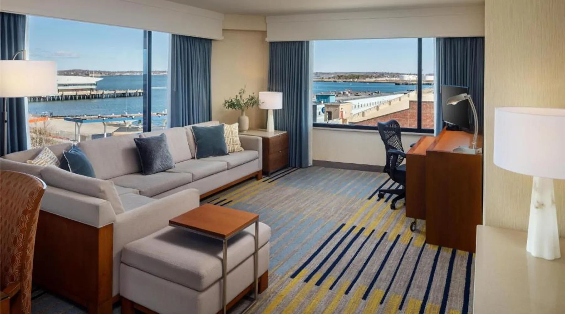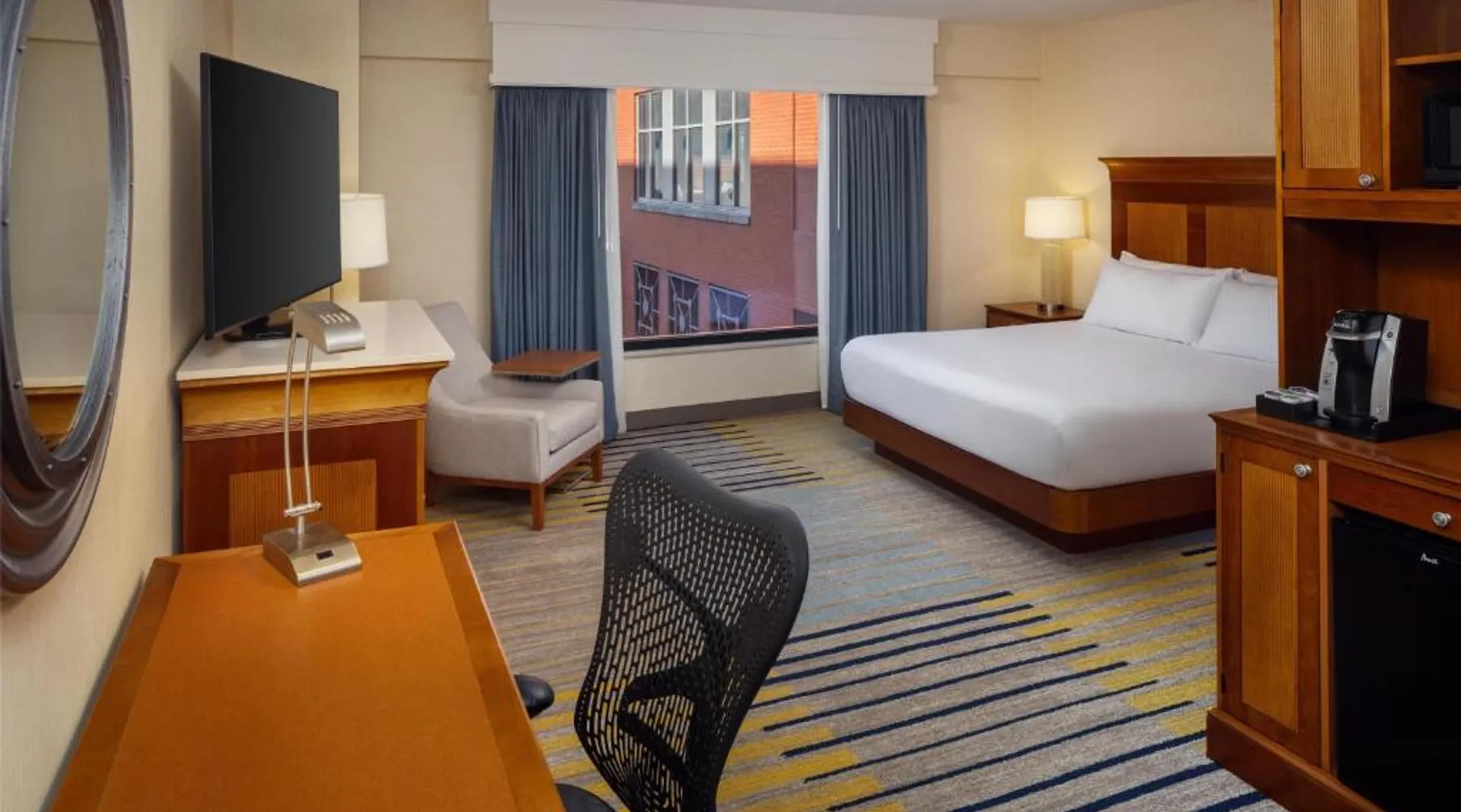 Offering views of Casco Bay and Portland, Maine's working waterfront, this hotel is just steps from attractions and activities, and features free WiFi. All guest rooms feature refrigerators, microwaves and a flat-screen cable TV. A fitness center, indoor pool and 24-hour business center are offered at this hotel. Guests can start the day with a breakfast buffet in the on-site Great American Grill. In the evening, the Lobby Bar serves dinner and room service is available. Portland Observatory and Victorian Mansion are 0.7 mi from the property, while Portland Harbor Museum is 3.5 mi away. This accessible room features a microwave, refrigerator, cable TV, and a work desk.