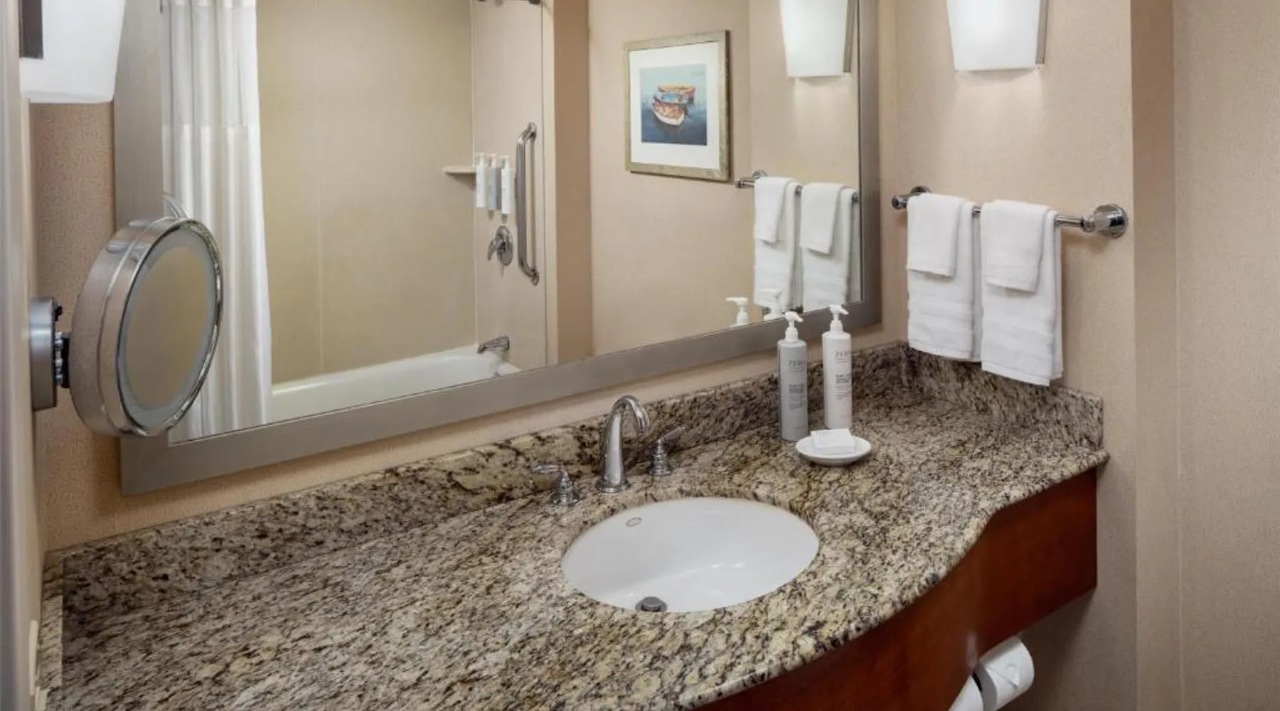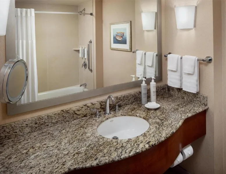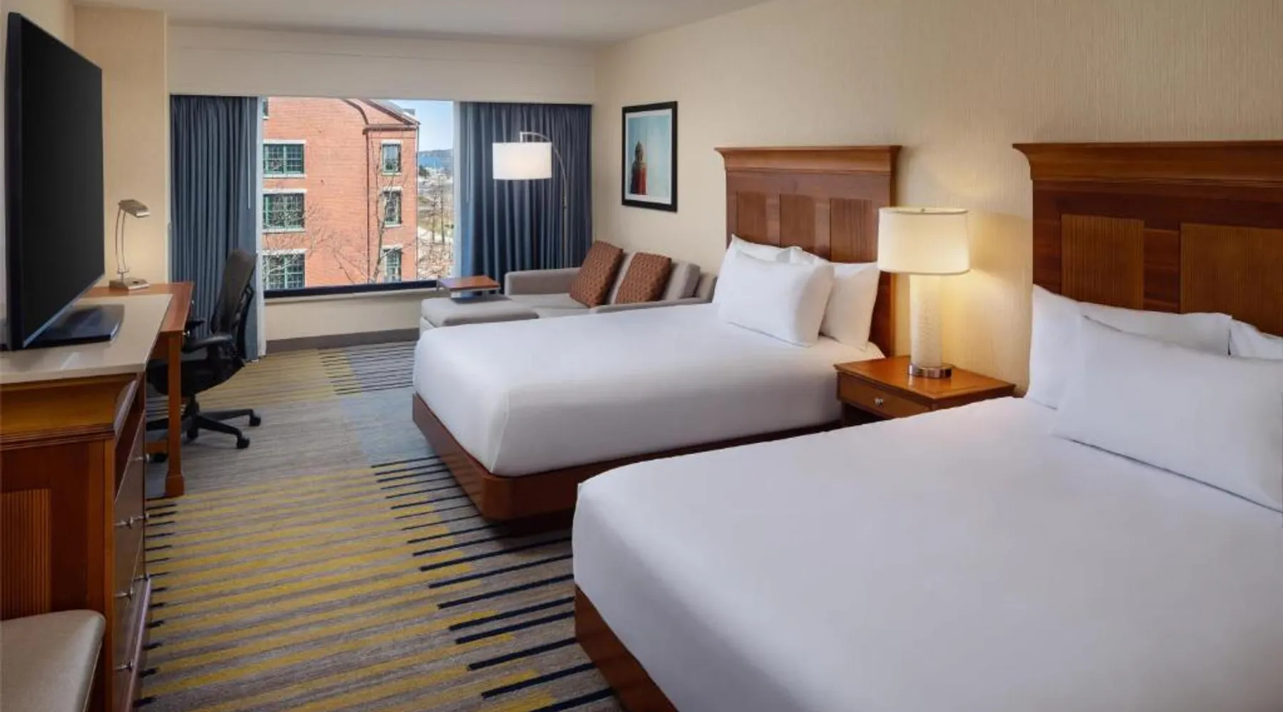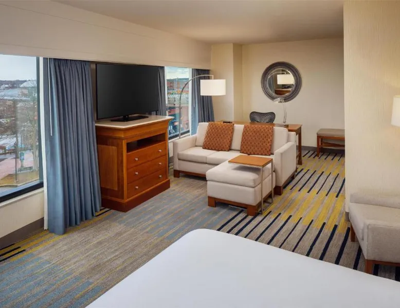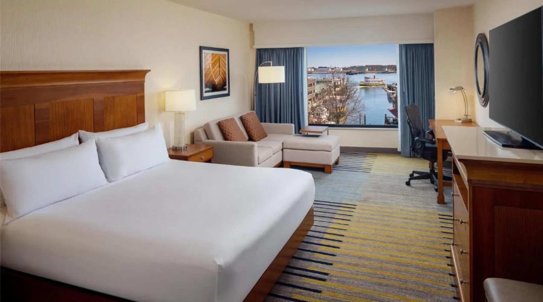 Offering views of Casco Bay and Portland, Maine's working waterfront, this hotel is just steps from attractions and activities, and features free WiFi. All guest rooms feature refrigerators, microwaves and a flat-screen cable TV. A fitness center, indoor pool and 24-hour business center are offered at this hotel. Guests can start the day with a breakfast buffet in the on-site Great American Grill. In the evening, the Lobby Bar serves dinner and room service is available. Portland Observatory and Victorian Mansion are 0.7 mi from the property, while Portland Harbor Museum is 3.5 mi away. This accessible room features a microwave, refrigerator, cable TV, and a work desk.