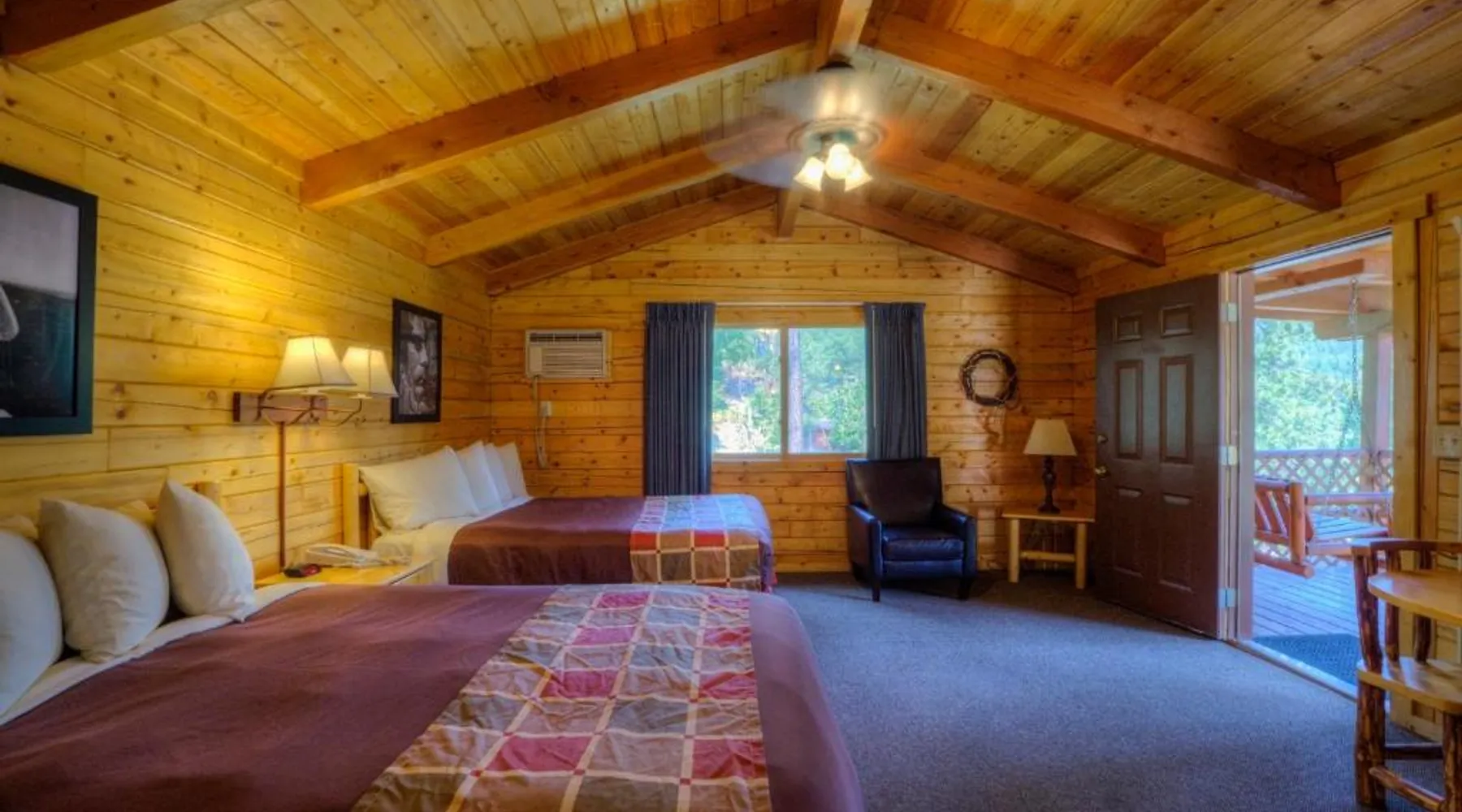 Comfortable Accommodations: Powder House Lodge in Keystone offers family rooms with private bathrooms, balconies, and mountain views. Each room includes air-conditioning, a refrigerator, and a TV. Dining and Leisure: The hotel features a family-friendly restaurant serving American, seafood, steakhouse, and local cuisines. Guests can relax by the seasonal outdoor swimming pool, sun terrace, or outdoor fireplace. Free WiFi is available throughout the property. Convenient Location: Located 26 mi from Rapid City Regional Airport, the lodge is near Mount Rushmore (4.3 mi), Rush Mountain Adventure Park (7.5 mi), and other attractions. Free on-site private parking and an electric vehicle charging station enhance the stay. This family room's standout feature is the pool with a view. This air-conditioned family room includes a flat-screen TV with cable channels, a private bathroom as well as a balcony with mountain views. The unit offers 3 beds.