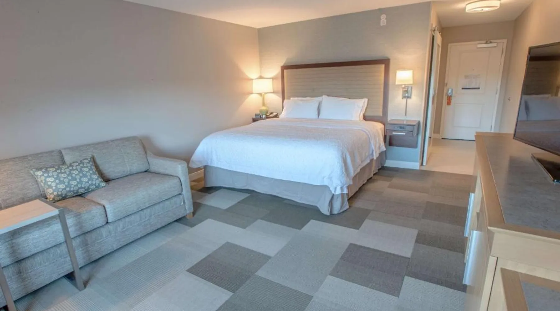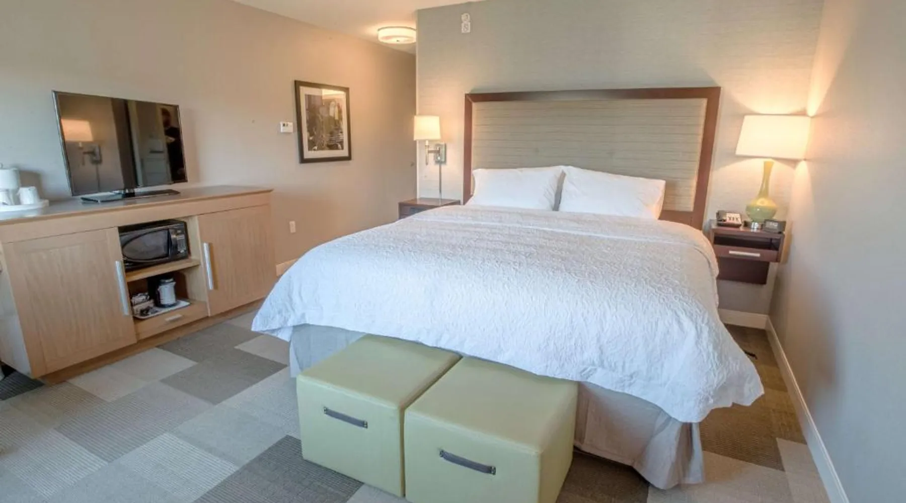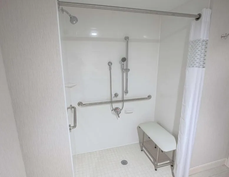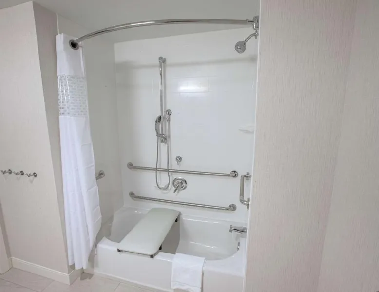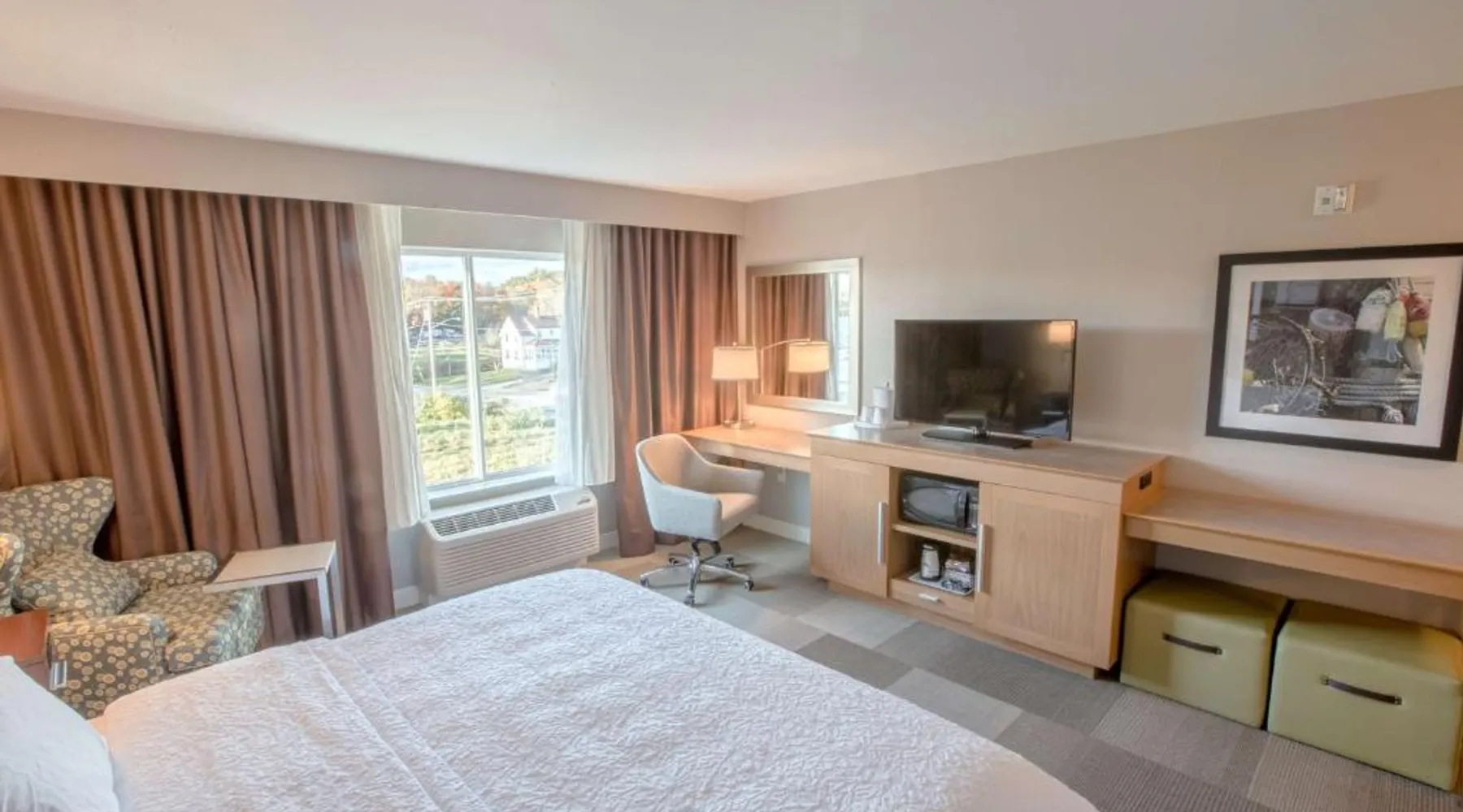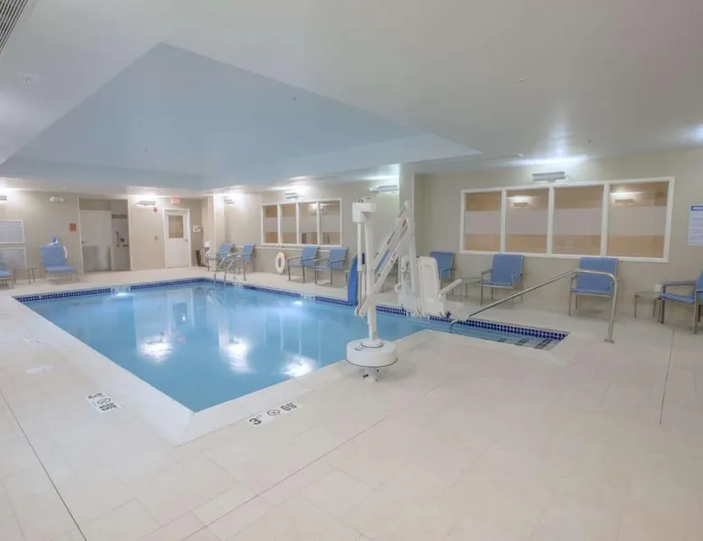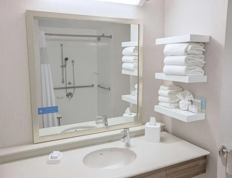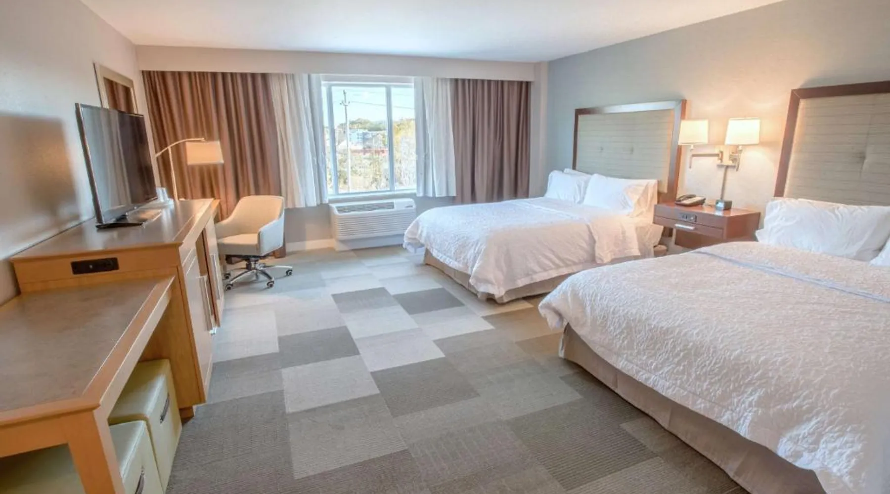 The Hampton Inn Amesbury is located in the coastal region of Massachusetts. The hotel offers complimentary Wi-Fi and hot breakfast to all guests. Each of the rooms feature a microwave, mini-fridge, study table and a flat-screen cable TV. With a heated indoor pool and fitness center, the hotel also has a 24-hour front desk, business center, suite shop and a meeting space for up to 45 guests. Portsmouth is 17 mi from Hampton Inn by Hilton Amesbury, MA, while Salem is 23 mi away. The nearest airport is Logan Airport, 34 mi from the Amesbury hotel. This double room provides a tea and coffee maker and a flat-screen TV. The unit offers 1 bed.
