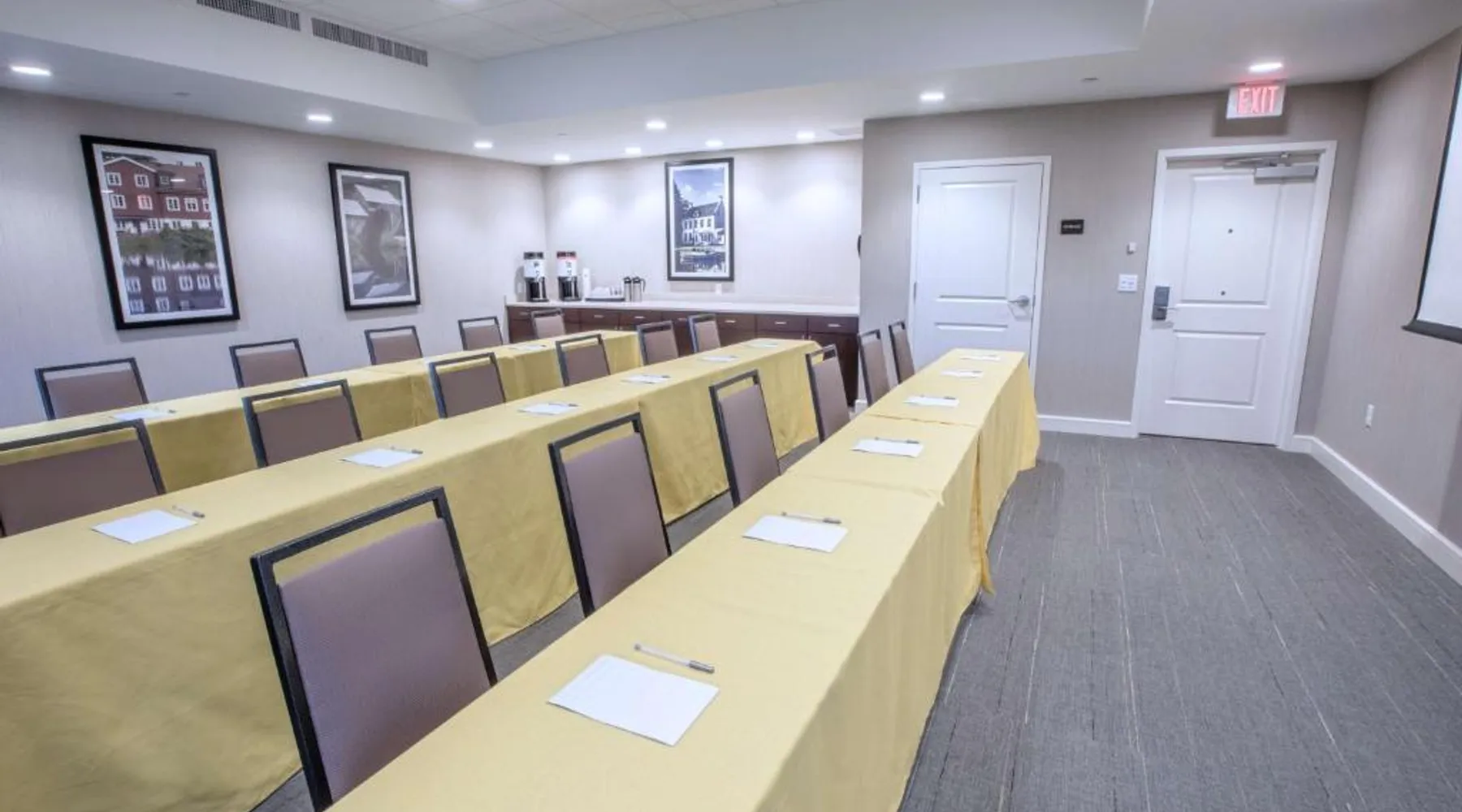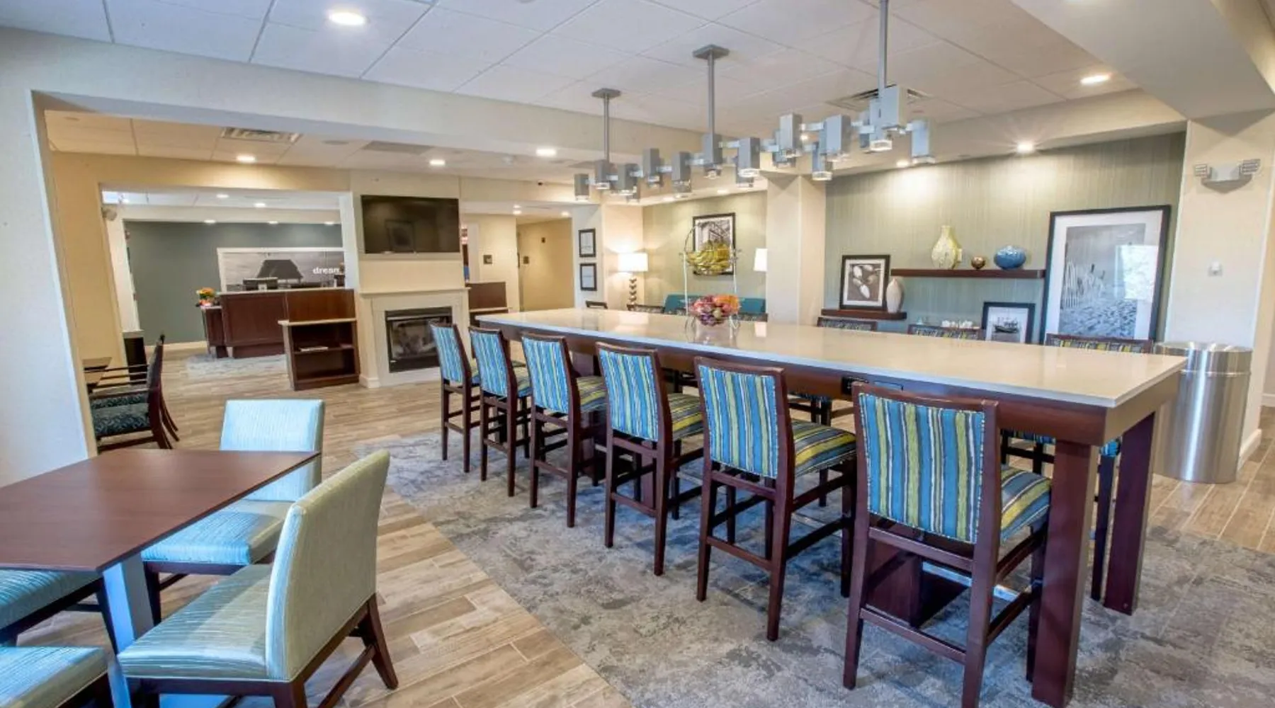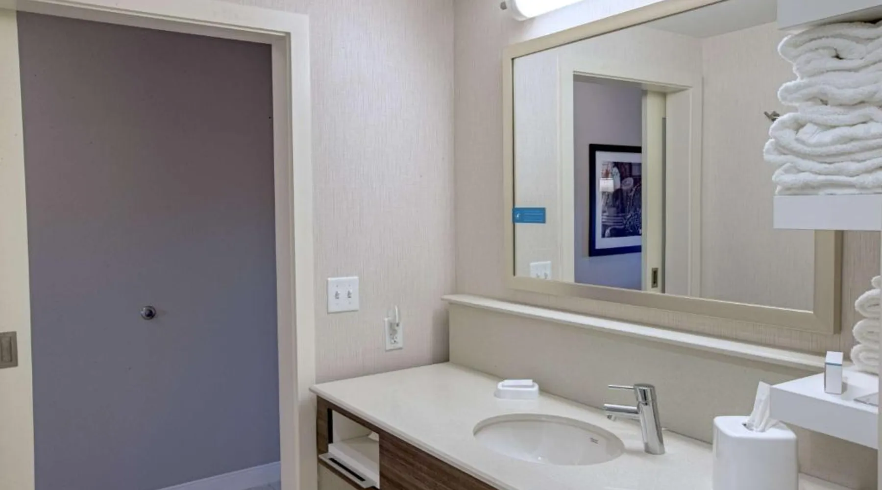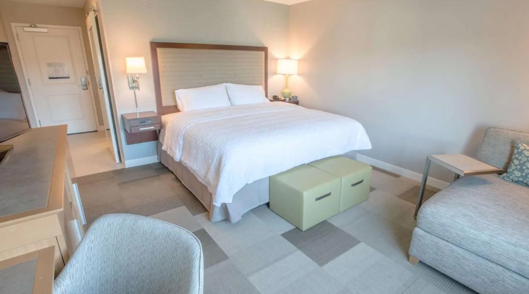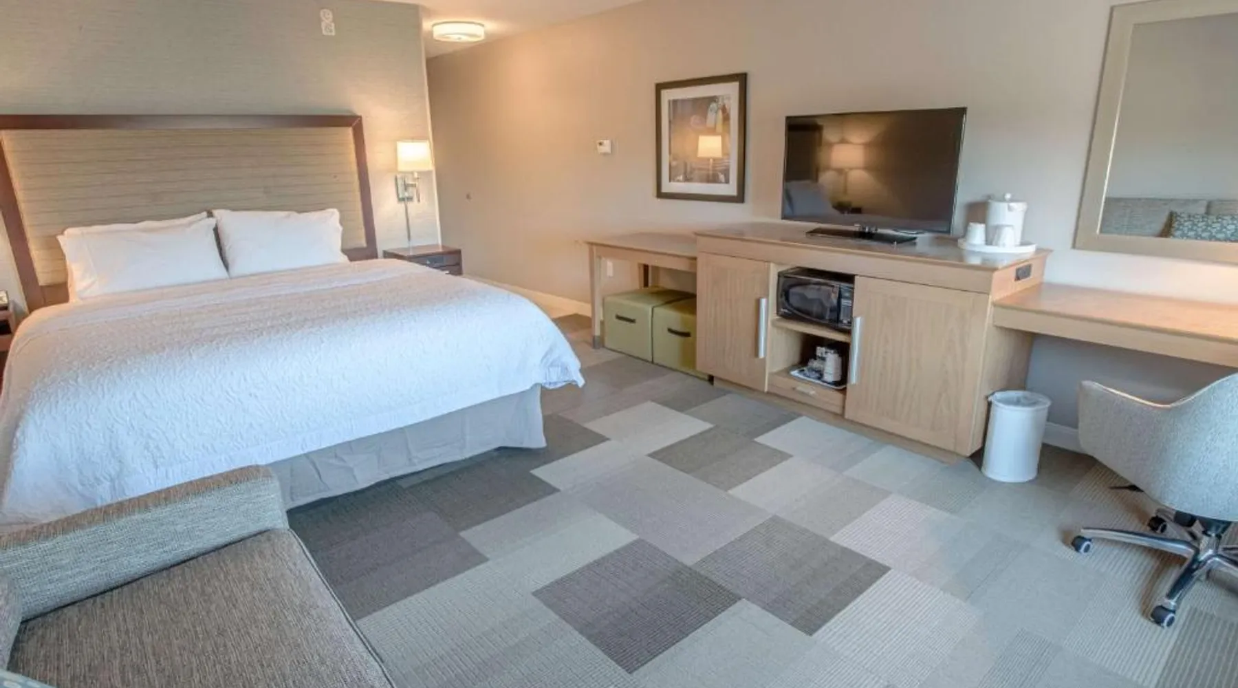 The Hampton Inn Amesbury is located in the coastal region of Massachusetts. The hotel offers complimentary Wi-Fi and hot breakfast to all guests. Each of the rooms feature a microwave, mini-fridge, study table and a flat-screen cable TV. With a heated indoor pool and fitness center, the hotel also has a 24-hour front desk, business center, suite shop and a meeting space for up to 45 guests. Portsmouth is 17 mi from Hampton Inn by Hilton Amesbury, MA, while Salem is 23 mi away. The nearest airport is Logan Airport, 34 mi from the Amesbury hotel. This double room provides a tea and coffee maker and a flat-screen TV. The unit offers 1 bed.