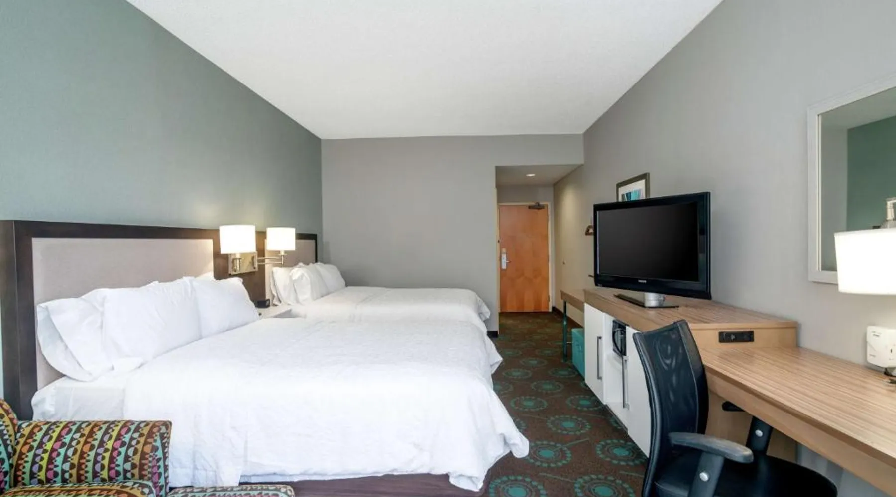 Hampton Inn & Suites in Chincoteague, VA offers waterfront accommodations. Free WiFi is available. A flat-screen TV is available. There is a 24-hour front desk at the property. Additional amenities include complimentary breakfast, a pool, hot tub and fitness center. The nearest airport is Salisbury-Ocean City Wicomico Regional Airport, 29 mi from Hampton Inn & Suites Chincoteague-Waterfront, Va. This quadruple room features a tea and coffee maker, a safe deposit box, a flat-screen TV and a balcony. The unit offers 2 beds.