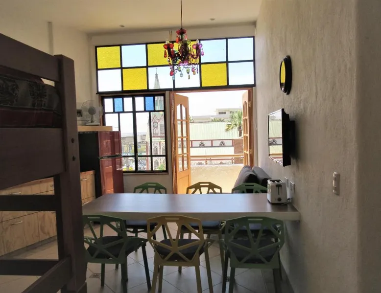 Comfortable Accommodations: Apartamento Terra Amata Arica in Arica offers a garden and terrace with free WiFi. The apartment features air-conditioning, a kitchenette, and a private bathroom. Modern Amenities: Guests enjoy a fully equipped kitchen, tea and coffee maker, and a work desk. Additional amenities include a balcony, outdoor dining area, and free toiletries. Convenient Location: Located 8.7 mi from Chacalluta International Airport, the property is near El Laucho Beach (16-minute walk), Cathedral of San Marcos de Arica (few steps), and Arica Port (less than 0.6 mi). Highly rated for its host, kitchen, and convenient location. The well-equipped kitchen has a refrigerator, kitchenware, a microwave and a toaster. The air-conditioned apartment features a flat-screen TV with cable channels, a private entrance, soundproof walls, a tea and coffee maker as well as city views. The unit has 5 beds.