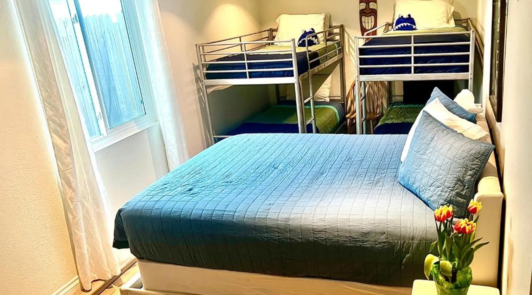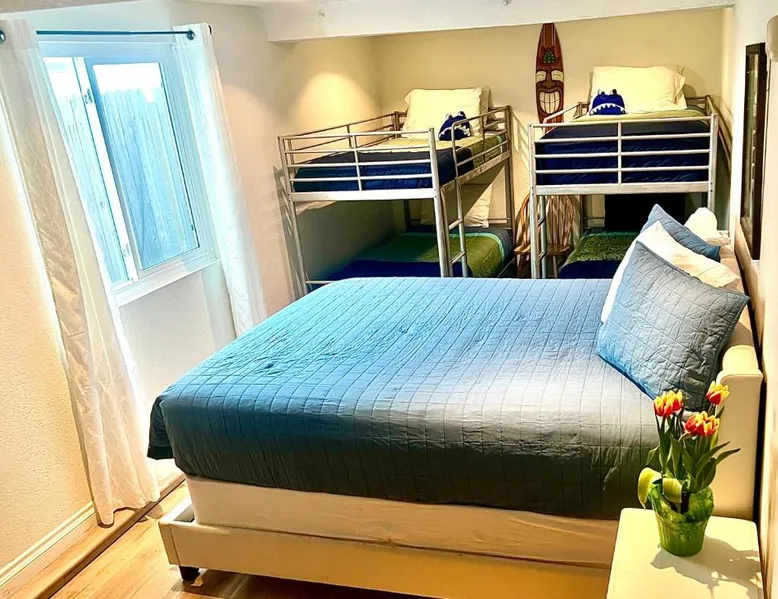 Beachfront Location: Sweet Beach Duplex in Newport Beach offers direct beachfront access and stunning sea views. Guests can relax on the sun terrace or enjoy the outdoor fireplace. Comfortable Accommodations: The holiday home features family rooms, a fully equipped kitchen, and a private bathroom. Additional amenities include air-conditioning, a washing machine, and free WiFi. Leisure Facilities: Free bicycles are available for exploring the area. The property includes an outdoor play area, picnic spots, and barbecue facilities. Nearby Attractions: Located 6.2 mi from John Wayne Airport, Sweet Beach Duplex is a short walk from Newport Beach Pier and Surface Jet Tours. Boating is popular in the surrounding area. The fireplace is a top feature of this holiday home. Boasting a private entrance, this air-conditioned holiday home comes with 1 living room, 3 separate bedrooms and 2 bathrooms with a walk-in shower and a bath. Guests will find a stovetop, a refrigerator, a dishwasher and kitchenware in the well-fitted kitchen. The holiday home also includes a barbecue. Featuring a terrace with sea views, this holiday home also features a washing machine and a flat-screen TV with streaming services. The unit has 3 beds.