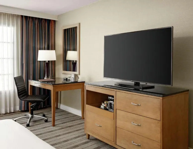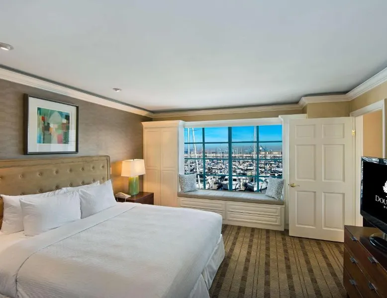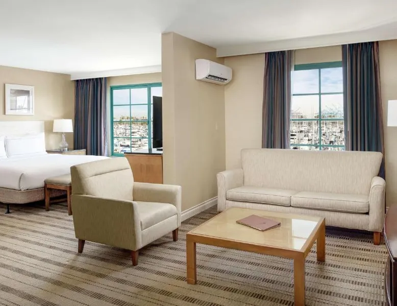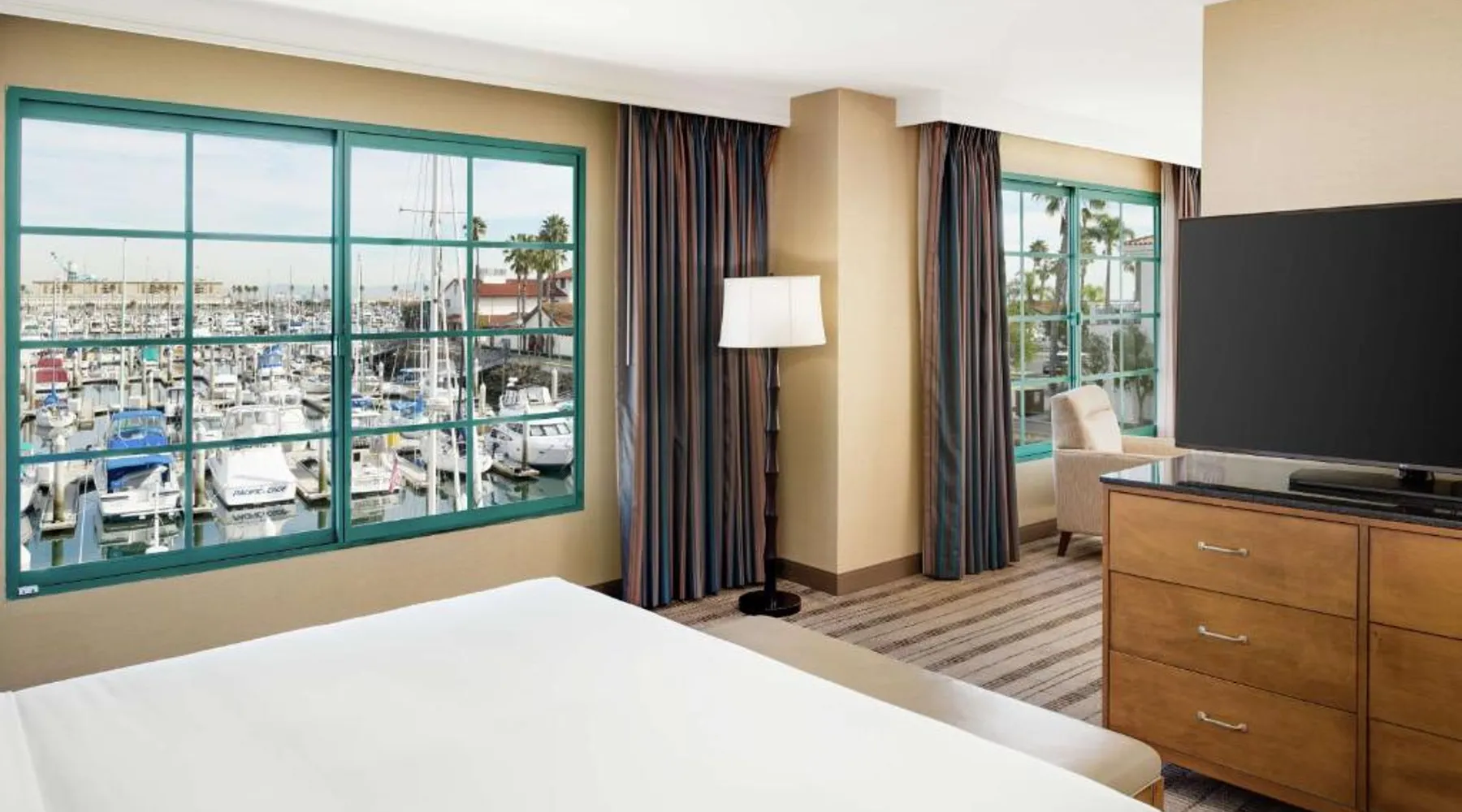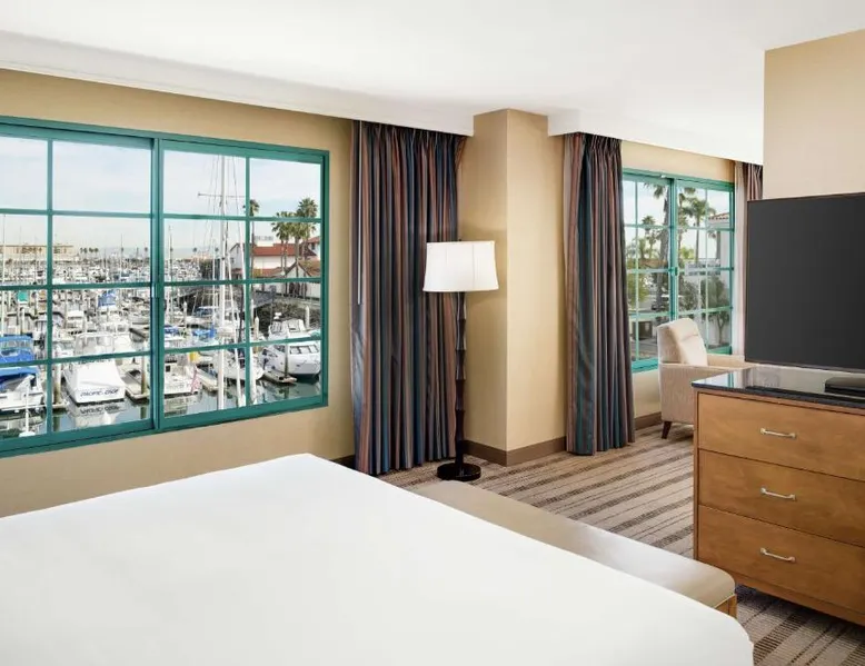 Located within walking distance of California Yacht Marina and Cabrillo Beach, this hotel offers an outdoor pool. Rooms feature 32-inch flat-screen cable TVs. Rooms at Doubletree Hotel San Pedro provide video games and seating areas. They are also furnished with desks and coffee makers. Wi-Fi is available. San Pedro Doubletree Hotel offers a gym, tennis court and basketball court. Guests can enjoy indoor or outdoor dining at the hotel’s Marina Grill Restaurant. Additional hotel facilities include a hot tub and business center. Cabrillo Beach Marine Aquarium is less than one mile from Doubletree. The hotel is 5 miles from Trump National Golf Club Los Angeles and 20 miles from Los Angeles International Airport. The spacious double room features air conditioning, a tea and coffee maker, a safe deposit box, heating, as well as a TV. The unit has 1 bed.