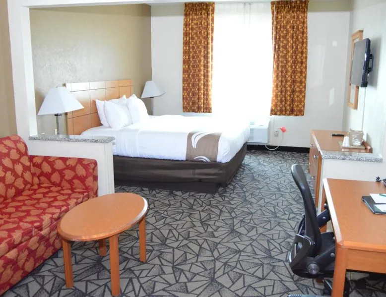Comfortable Accommodations: Quality Inn Coralville - Iowa River Landing in Coralville offers comfortable rooms with air-conditioning, private bathrooms, and free WiFi. Each room includes a work desk, sofa, and TV, ensuring a pleasant stay. Exceptional Facilities: Guests can enjoy an indoor swimming pool, lounge, and 24-hour front desk. Additional amenities include free on-site private parking, private check-in and check-out services, and a business area. Delicious Breakfast: A continental, American, or buffet breakfast is served daily, featuring warm dishes, fresh pastries, pancakes, fruits, and juice. Guests appreciate the quality and value for money of the breakfast provided by the property. Convenient Location: Located 19 mi from The Eastern Iowa Airport, the hotel is near attractions such as Kinnick Stadium (2.5 mi) and Paramount Theater (24 mi). Free WiFi is available throughout the property. The unit has 1 bed.