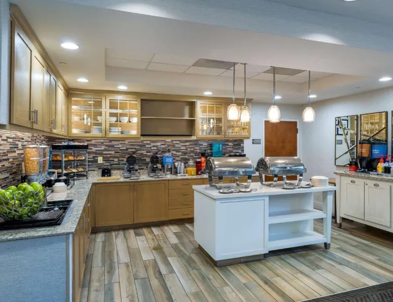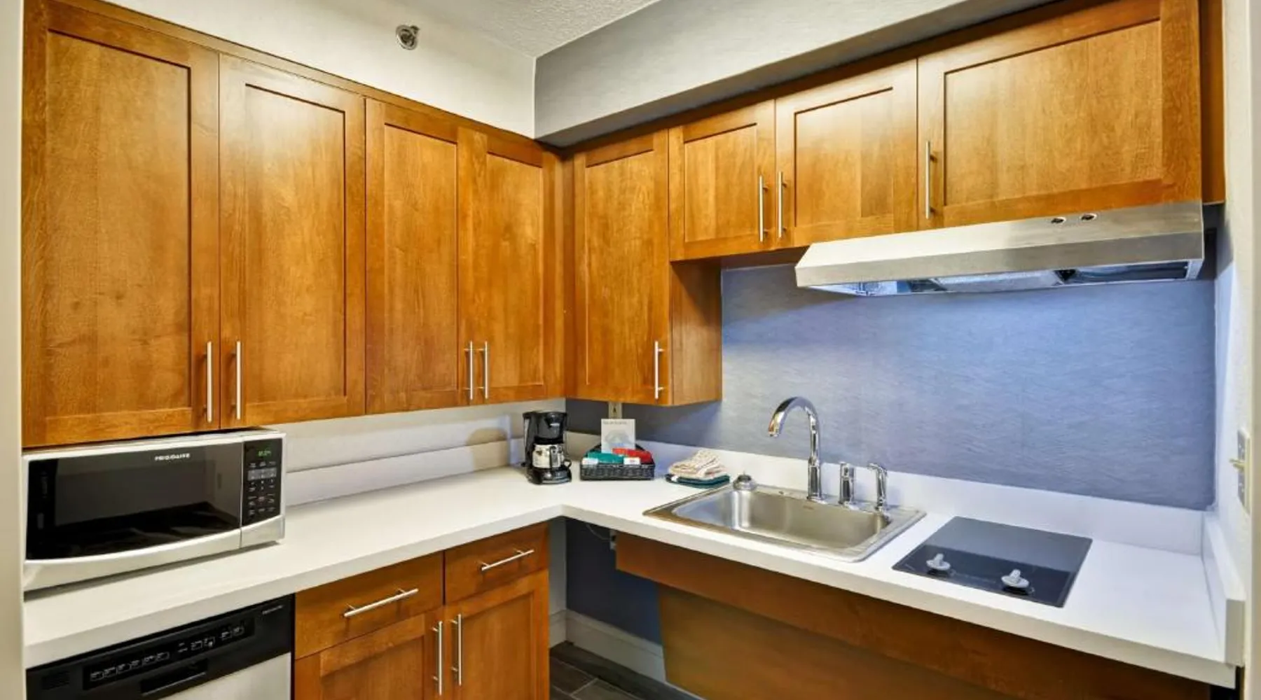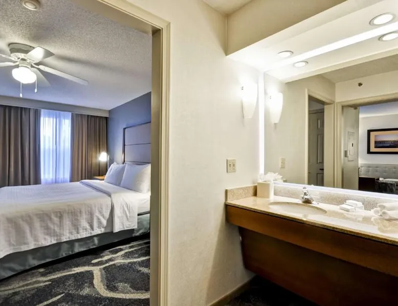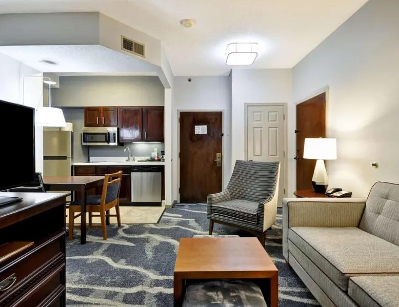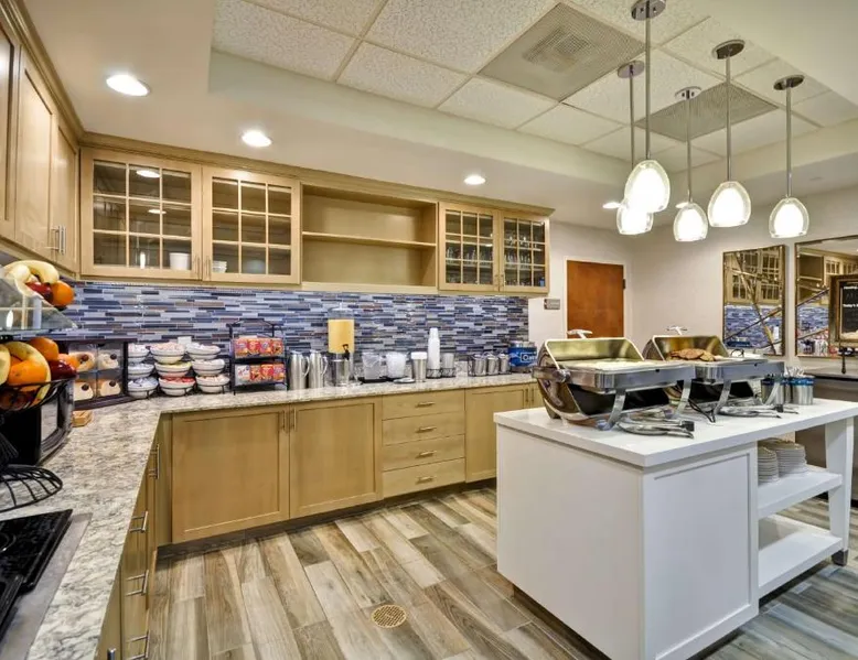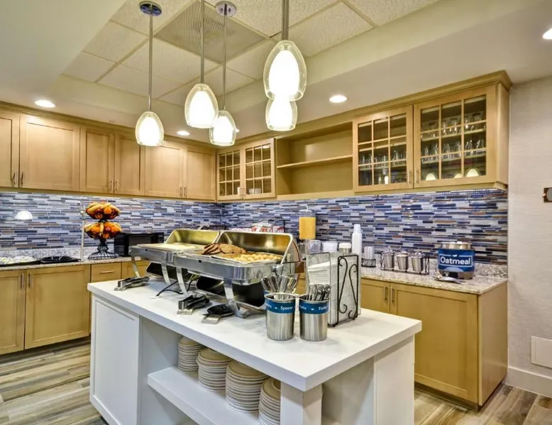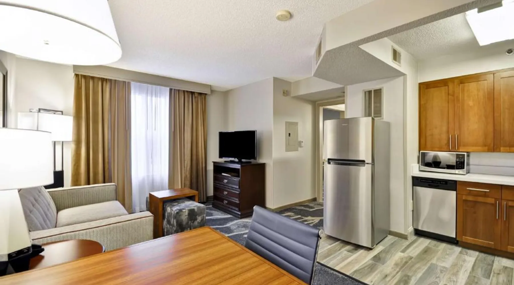 Comfortable Accommodations: Homewood Suites Memphis Germantown in Memphis offers family rooms with air-conditioning, refrigerators, microwaves, and free WiFi. Each room includes a kitchen with a stovetop, toaster, dishwasher, and kitchenware. Exceptional Facilities: Guests can enjoy an outdoor swimming pool, fitness room, and free on-site parking. Additional amenities include a 24-hour front desk, elevator, and free toiletries. Delicious Breakfast: A complimentary American buffet breakfast is served with gluten-free options. Breakfast includes fresh pastries, fruits, juice, and a work desk. Prime Location: Located 12 mi from Memphis International Airport, the hotel is near attractions such as Stax Museum of American Soul Music (15 mi) and Graceland (17 mi). Guests appreciate the attentive staff and room cleanliness. This suite features a microwave and refrigerator as well as an additional sink and counter space.