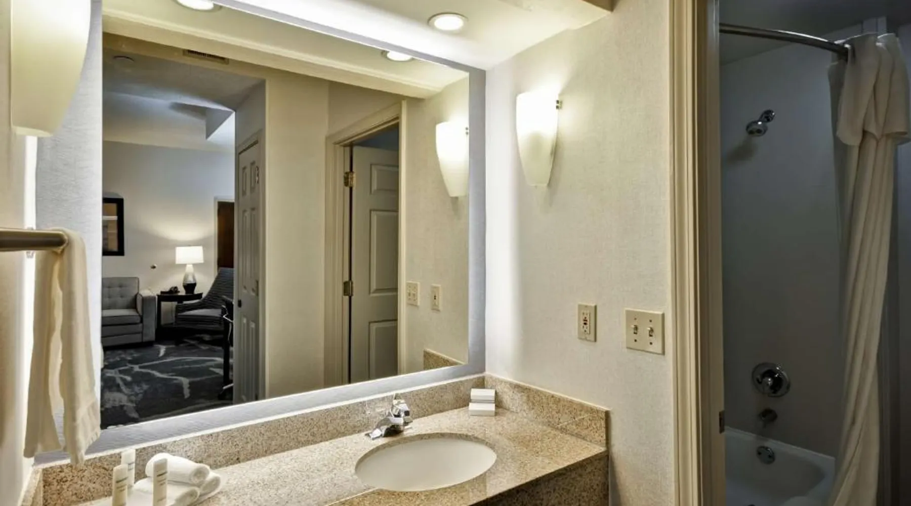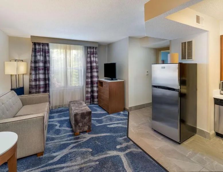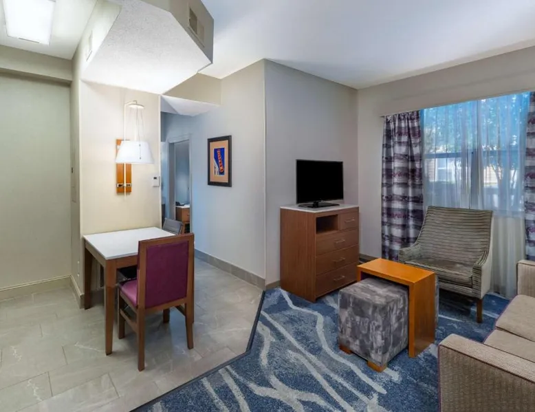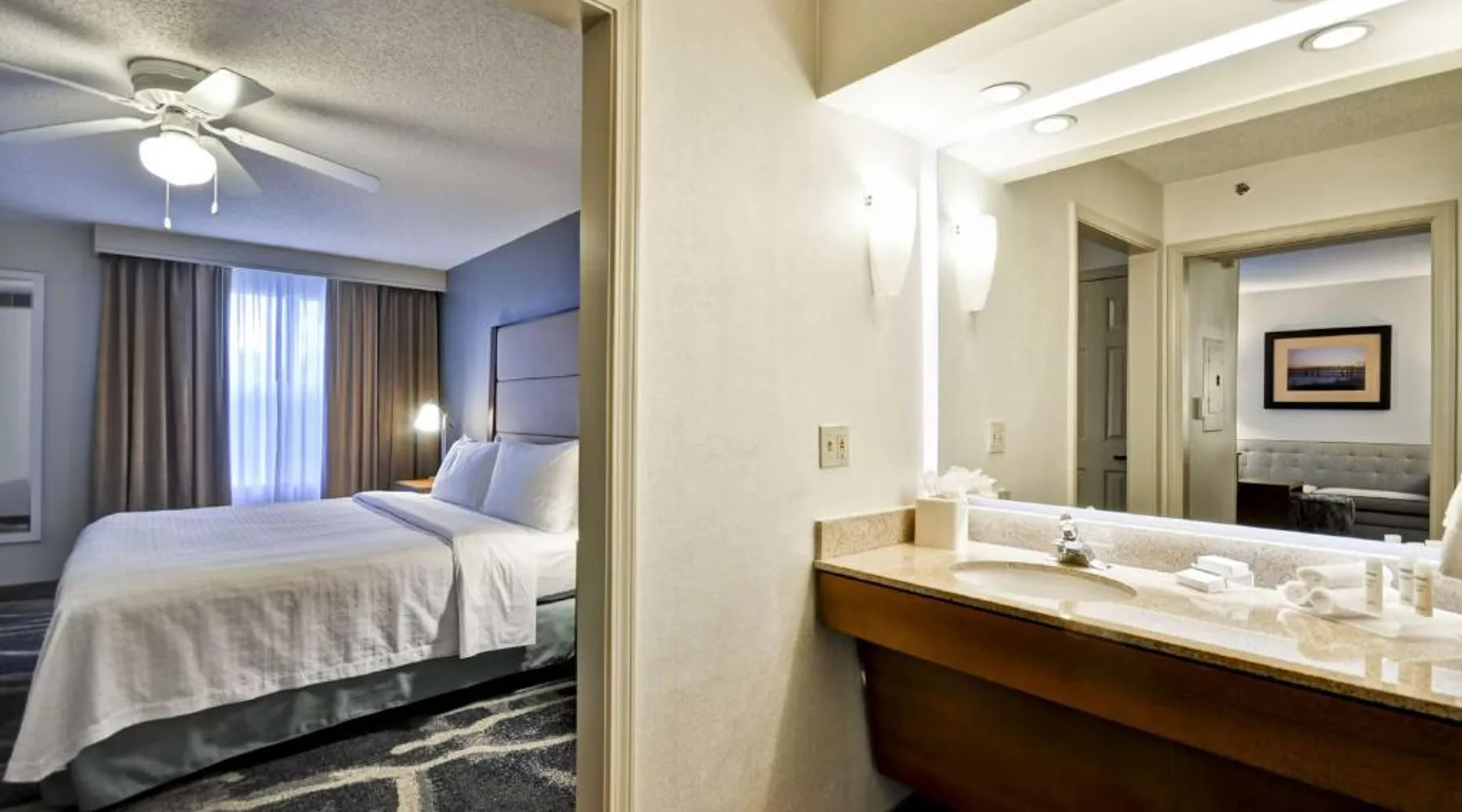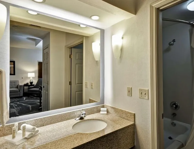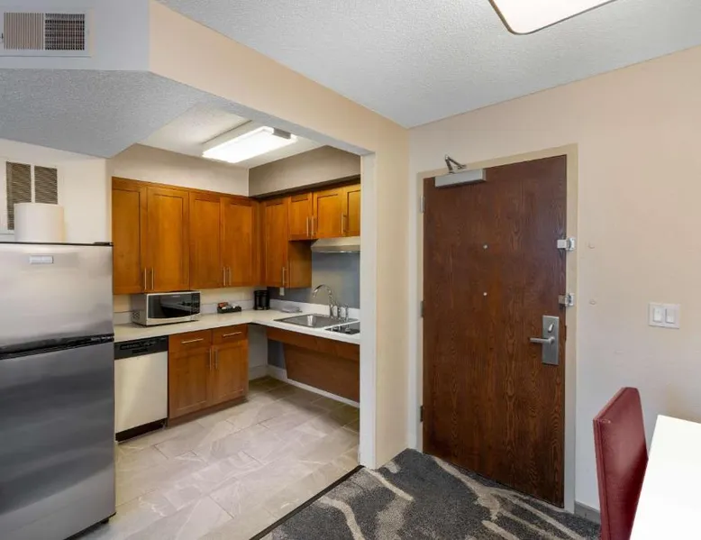Comfortable Accommodations: Homewood Suites Memphis Germantown in Memphis offers family rooms with air-conditioning, refrigerators, microwaves, and free WiFi. Each room includes a kitchen with a stovetop, toaster, dishwasher, and kitchenware. Exceptional Facilities: Guests can enjoy an outdoor swimming pool, fitness room, and free on-site parking. Additional amenities include a 24-hour front desk, elevator, and free toiletries. Delicious Breakfast: A complimentary American buffet breakfast is served with gluten-free options. Breakfast includes fresh pastries, fruits, juice, and a work desk. Prime Location: Located 12 mi from Memphis International Airport, the hotel is near attractions such as Stax Museum of American Soul Music (15 mi) and Graceland (17 mi). Guests appreciate the attentive staff and room cleanliness. This suite features a microwave and refrigerator as well as an additional sink and counter space.