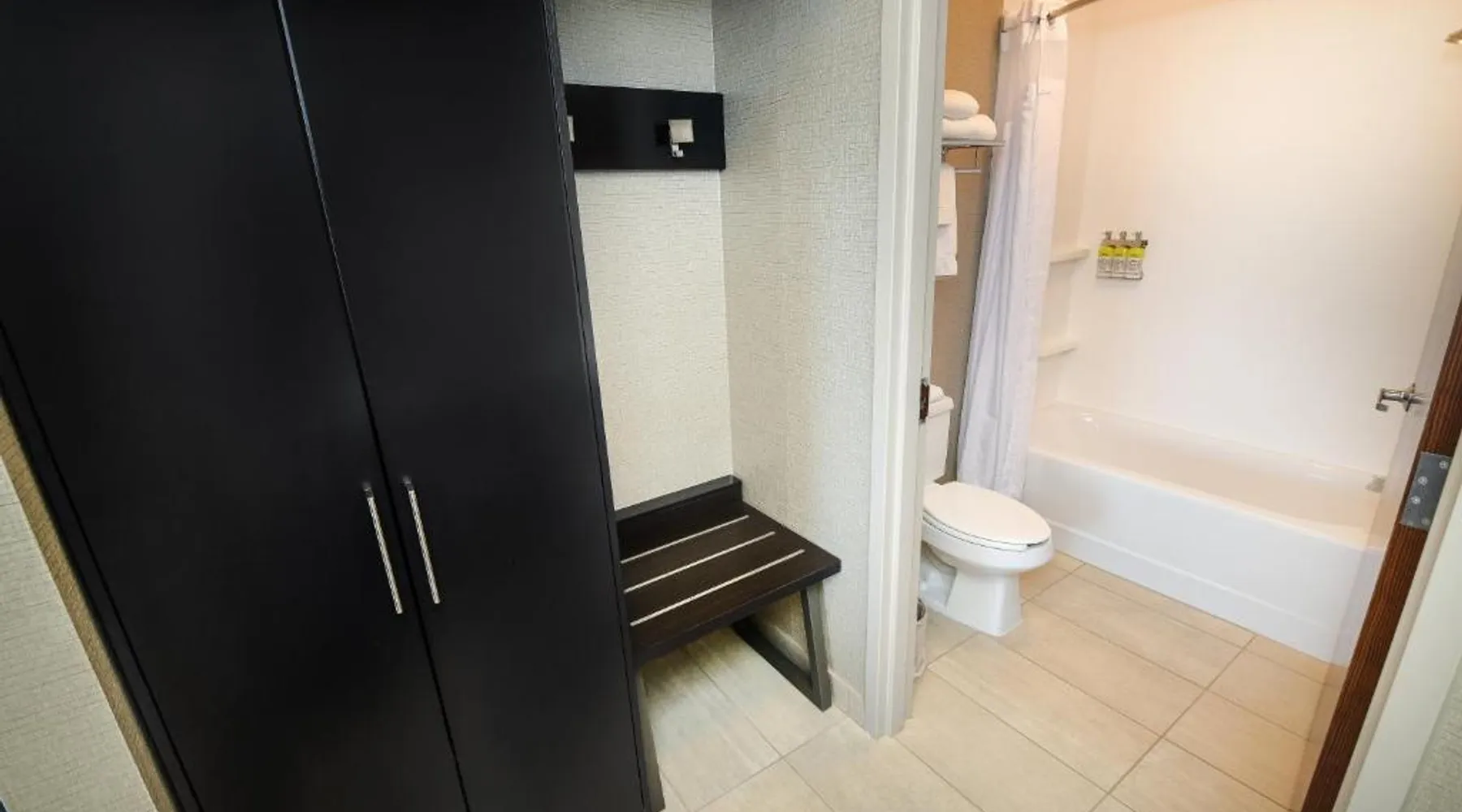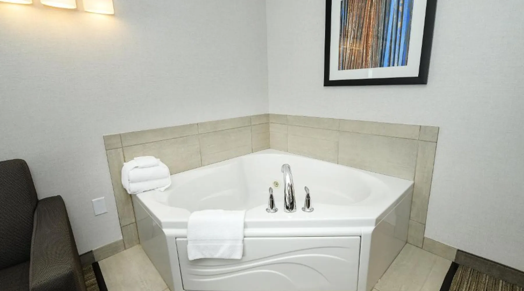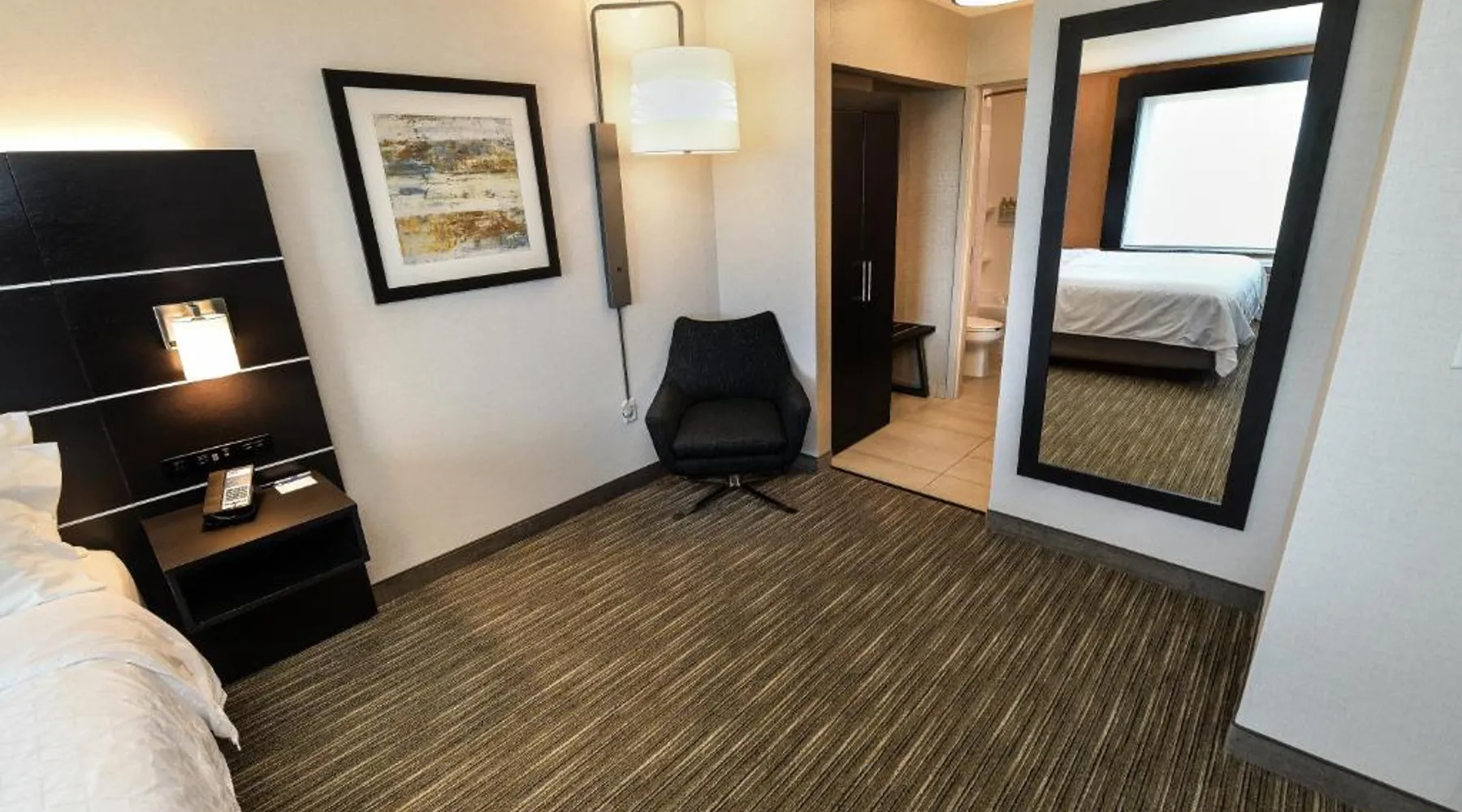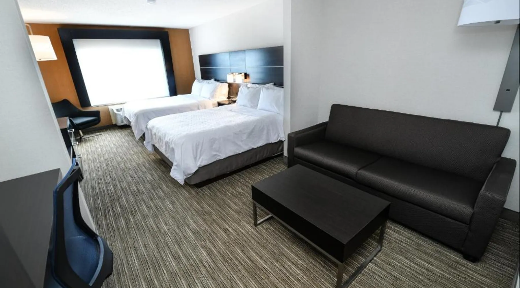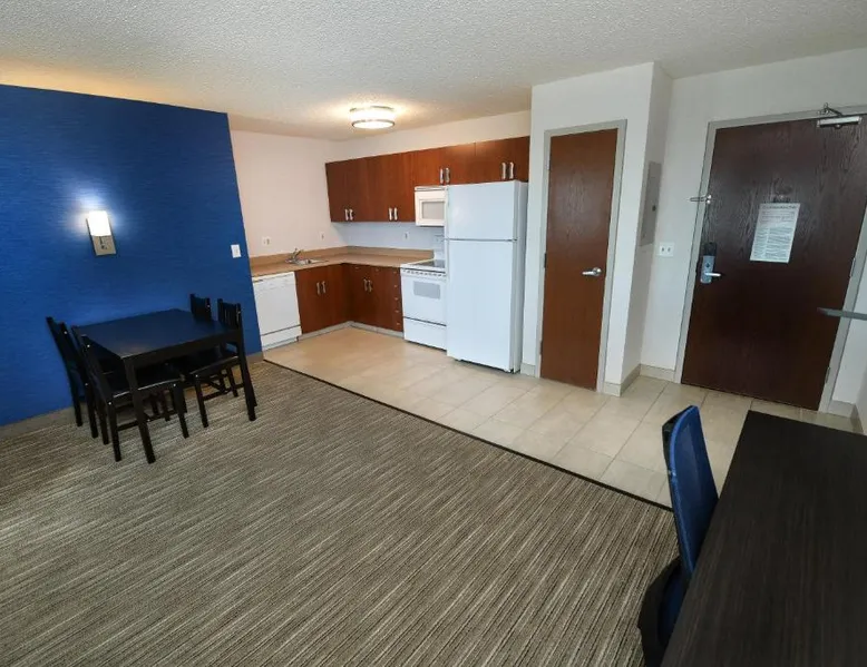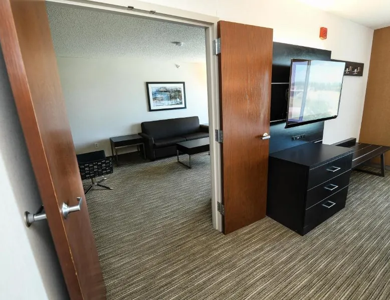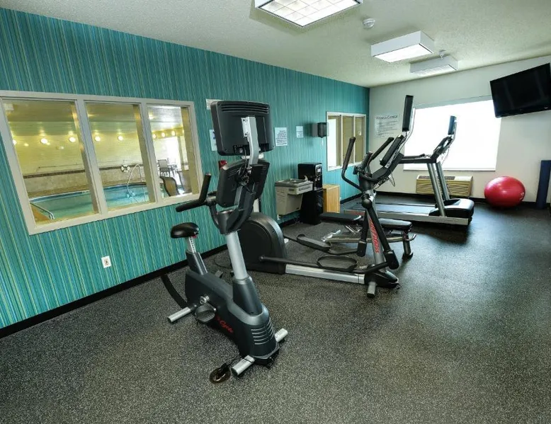 Comfortable Accommodations: Holiday Inn Express Hotel & Suites Grand Forks by IHG in Grand Forks offers air-conditioned rooms with private bathrooms, tea and coffee makers, and free WiFi. Each room includes a work desk, TV, and complimentary toiletries. Leisure Facilities: Guests can enjoy a fitness center, indoor swimming pool, and hot tub. Additional amenities include a elevator, 24-hour front desk, housekeeping service, business area, and express check-in and check-out. Dining Options: A continental buffet breakfast is served daily, featuring warm dishes, juice, fresh pastries, pancakes, and fruits. Free on-site private parking is available. Location and Attractions: Located 6.8 mi from Grand Forks International Airport and 3.7 mi from the University of North Dakota. This spacious suite features a fully equipped kitchen with a dining area, a living room with a sofa bed and 2 TVs.