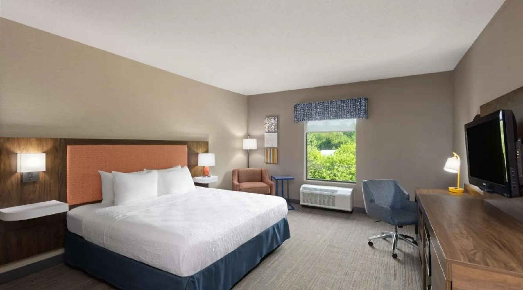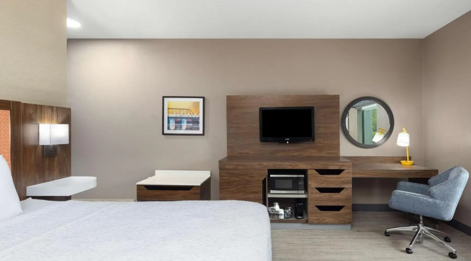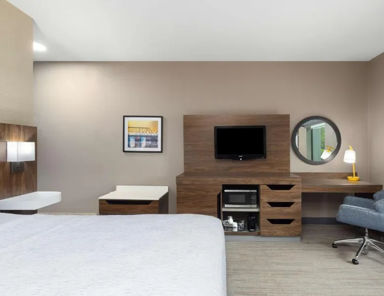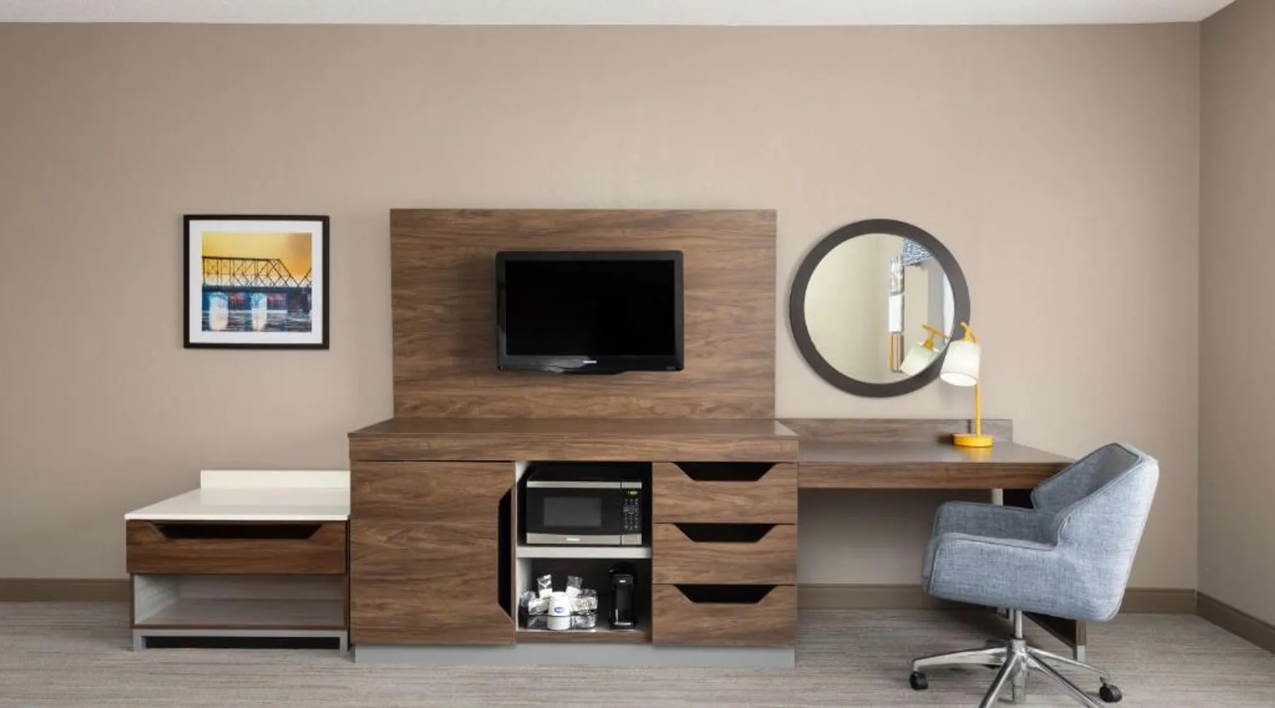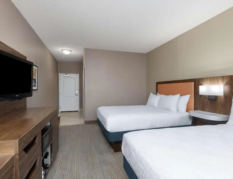 Comfortable Accommodations: Hampton Inn & Suites Harrisburg in Harrisburg offers family rooms with air-conditioning, free WiFi, and amenities such as a tea and coffee maker, hairdryer, sofa bed, and refrigerator. Each room includes a seating area, free toiletries, microwave, and TV. Leisure Facilities: Guests can enjoy a fitness center, sun terrace, indoor swimming pool, and outdoor seating area. Additional facilities include a lounge, fitness room, elevator, 24-hour front desk, minimarket, daily housekeeping service, child-friendly buffet, business area, coffee shop, and luggage storage. Prime Location: Located 4.3 mi from the National Civil War Museum and 5 mi from the Pennsylvania State Capitol, the hotel is also near attractions like Hersheypark (15 mi) and Zoo America (15 mi). Paid on-site parking is available. Guest Satisfaction: Highly rated by guests for its breakfast provided by the property, room comfort, and attentive staff. Featuring a flat-screen cable TV and a coffee maker.