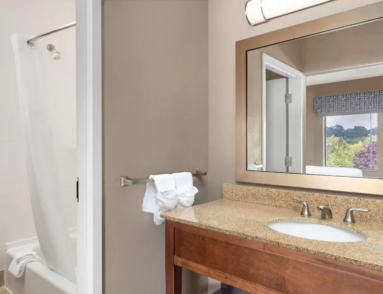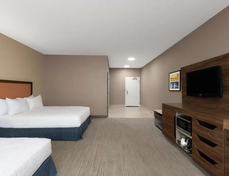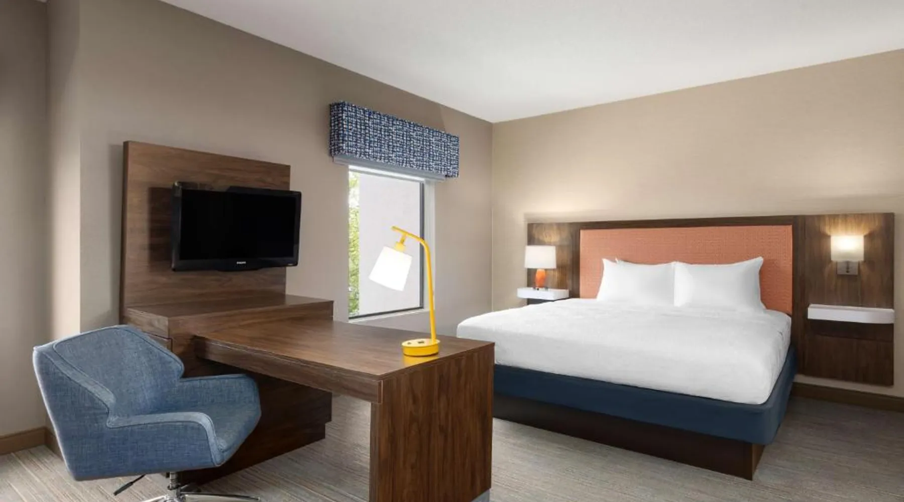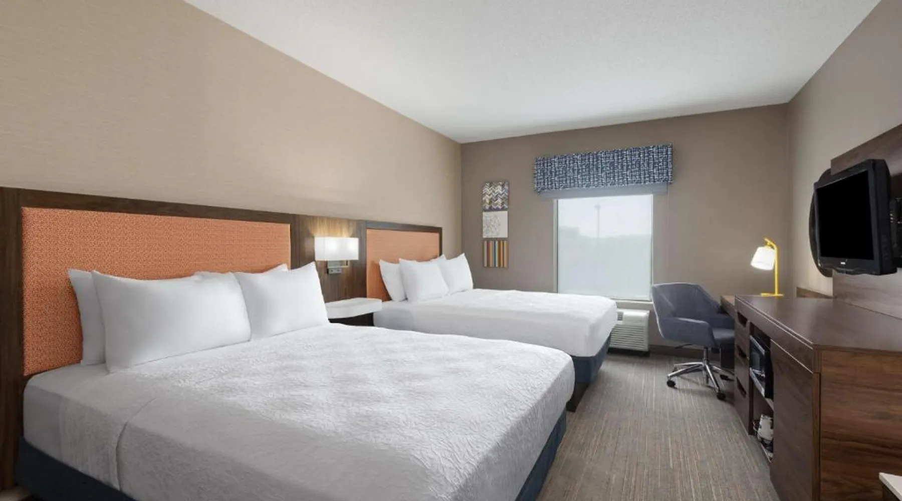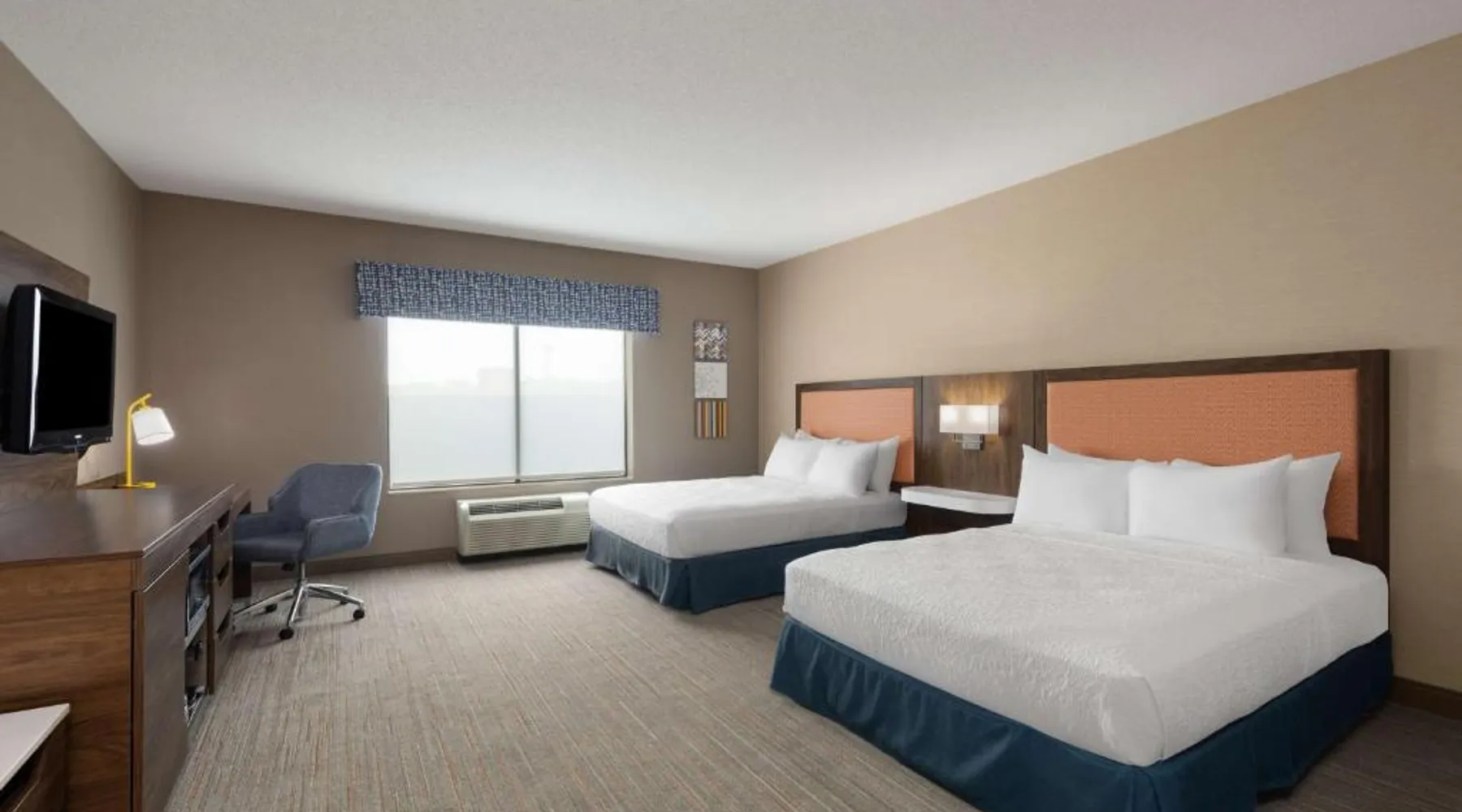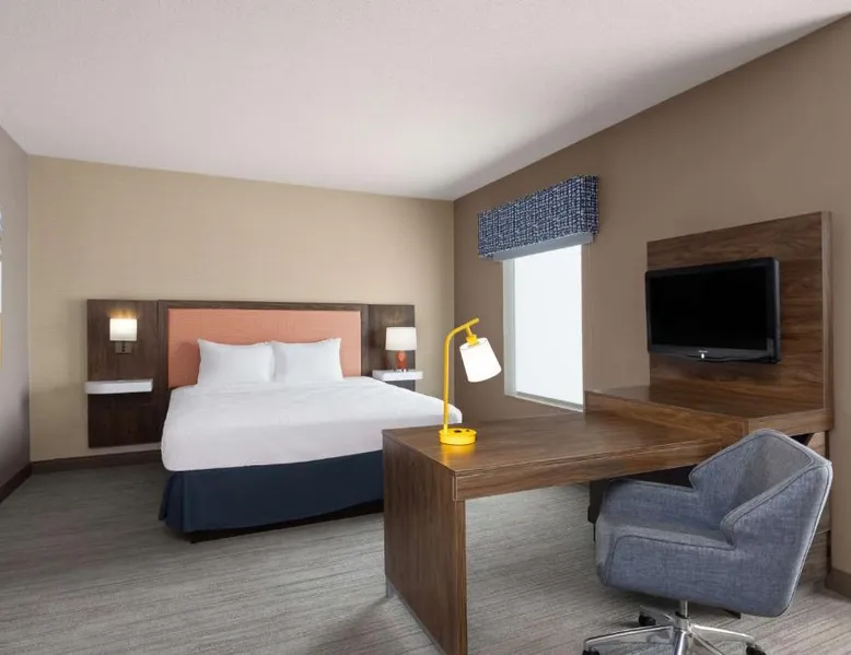 Comfortable Accommodations: Hampton Inn & Suites Harrisburg in Harrisburg offers family rooms with air-conditioning, free WiFi, and amenities such as a tea and coffee maker, hairdryer, sofa bed, and refrigerator. Each room includes a seating area, free toiletries, microwave, and TV. Leisure Facilities: Guests can enjoy a fitness center, sun terrace, indoor swimming pool, and outdoor seating area. Additional facilities include a lounge, fitness room, elevator, 24-hour front desk, minimarket, daily housekeeping service, child-friendly buffet, business area, coffee shop, and luggage storage. Prime Location: Located 4.3 mi from the National Civil War Museum and 5 mi from the Pennsylvania State Capitol, the hotel is also near attractions like Hersheypark (15 mi) and Zoo America (15 mi). Paid on-site parking is available. Guest Satisfaction: Highly rated by guests for its breakfast provided by the property, room comfort, and attentive staff. Featuring a flat-screen cable TV and a coffee maker.