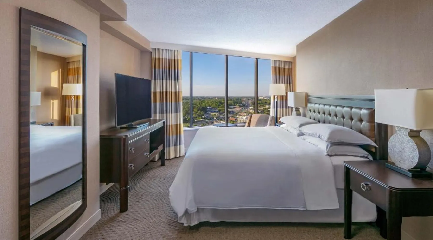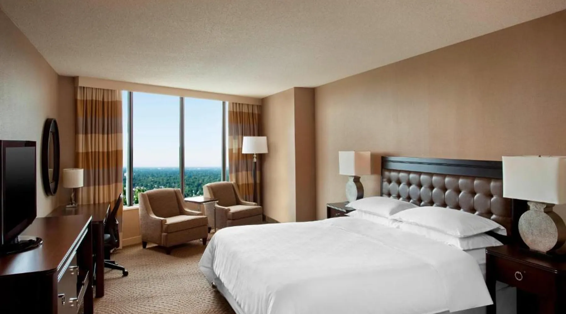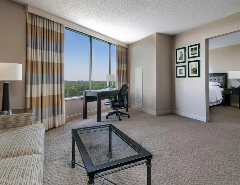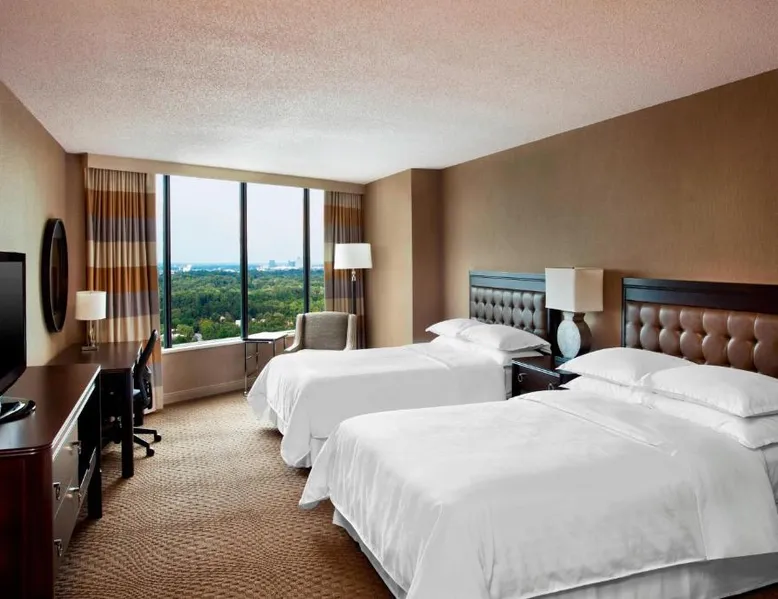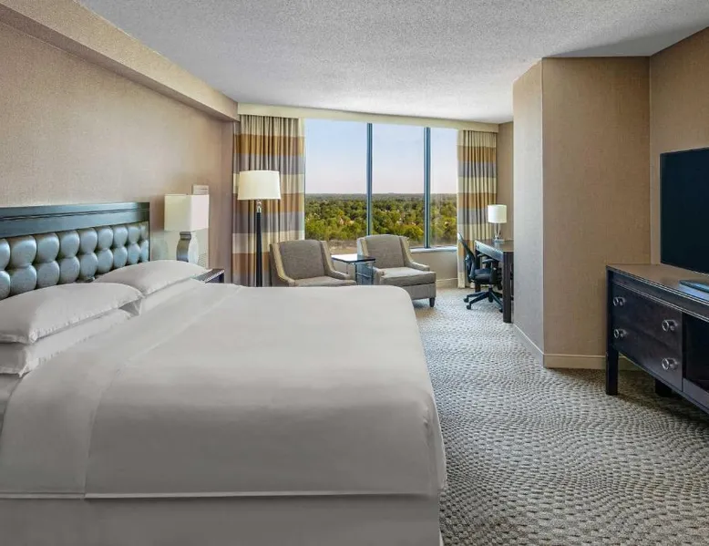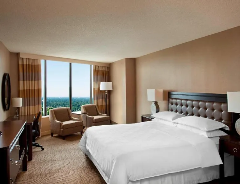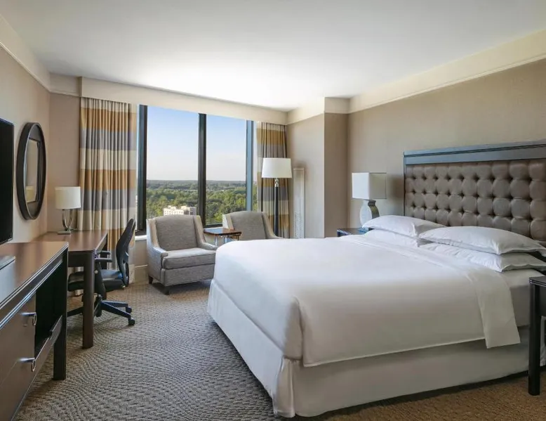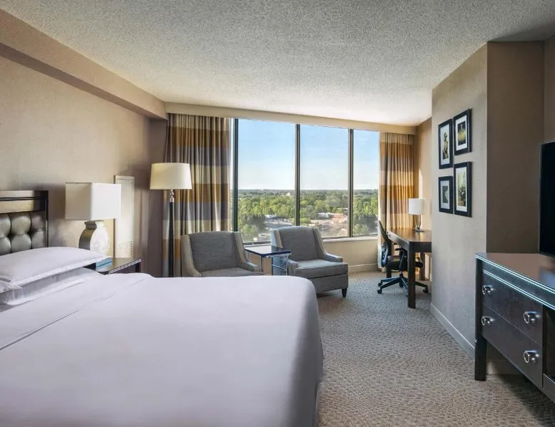 Located in Greensboro, North Carolina, this hotel is 1.4 mi from Greensboro Coliseum. White Oak Amphitheater and Airbound Trampoline Park are also within 1.9 mi. The hotel features a fitness center and on-site dining. Rooms include 37-inch flat-screen TVs. Each air-conditioned room at Sheraton Greensboro includes coffee-making facilities and a work desk. Warmly decorated, the rooms also include free Wi-Fi. Joseph's full-service restaurant, an indoor pool, and an outdoor pool are available at this hotel. Free WiFi in public areas, free self parking, and a free airport shuttle are also provided. Other amenities include 3 bars/lounges, a 24-hour fitness center, and a coffee shop/café. The hotel offers free shuttle service to and from Piedmont Triad International Airport and is 20 minutes’ drive away. The University of North Carolina Greensboro is 3 miles away. The spacious double room features air conditioning, a safe deposit box, as well as a private bathroom boasting a hairdryer. The double room offers a carpeted floor. The unit has 1 bed.