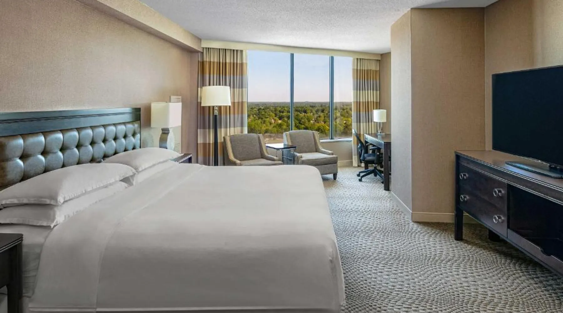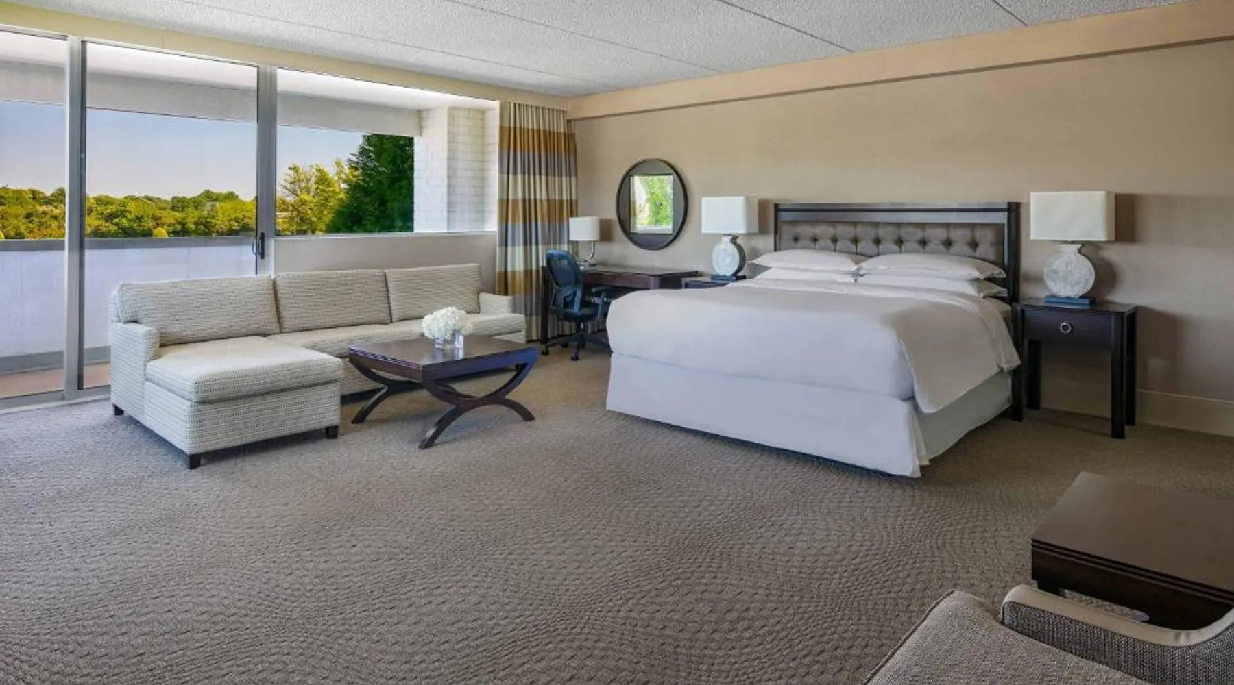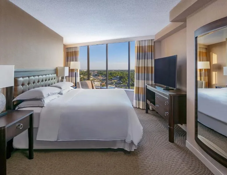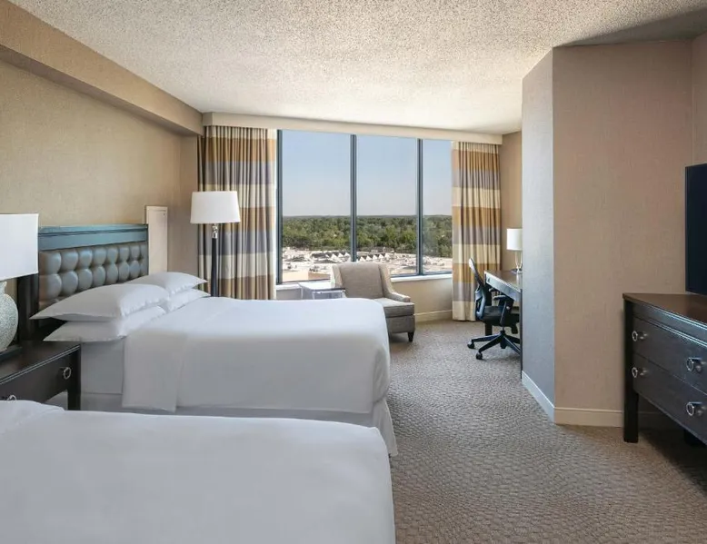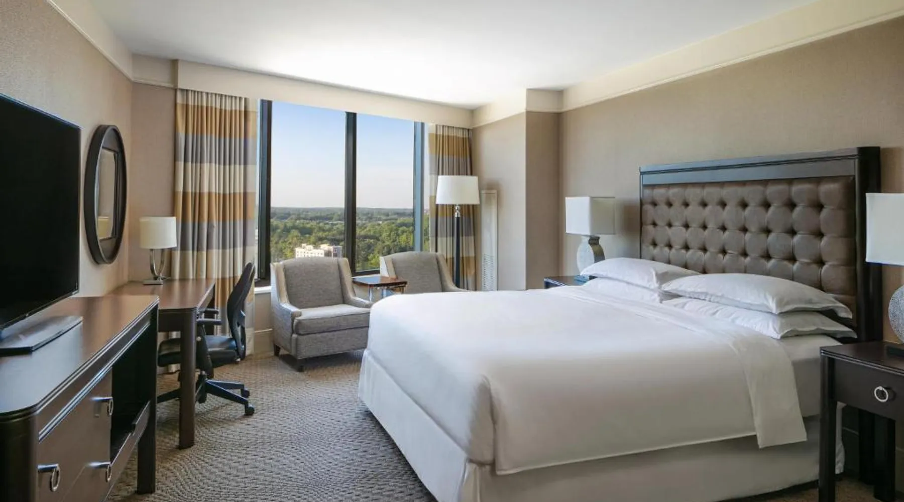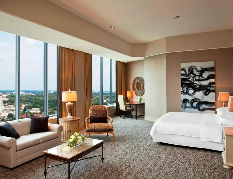 Located in Greensboro, North Carolina, this hotel is 1.4 mi from Greensboro Coliseum. White Oak Amphitheater and Airbound Trampoline Park are also within 1.9 mi. The hotel features a fitness center and on-site dining. Rooms include 37-inch flat-screen TVs. Each air-conditioned room at Sheraton Greensboro includes coffee-making facilities and a work desk. Warmly decorated, the rooms also include free Wi-Fi. Joseph's full-service restaurant, an indoor pool, and an outdoor pool are available at this hotel. Free WiFi in public areas, free self parking, and a free airport shuttle are also provided. Other amenities include 3 bars/lounges, a 24-hour fitness center, and a coffee shop/café. The hotel offers free shuttle service to and from Piedmont Triad International Airport and is 20 minutes’ drive away. The University of North Carolina Greensboro is 3 miles away. The spacious double room features air conditioning, a safe deposit box, as well as a private bathroom boasting a hairdryer. The double room offers a carpeted floor. The unit has 1 bed.