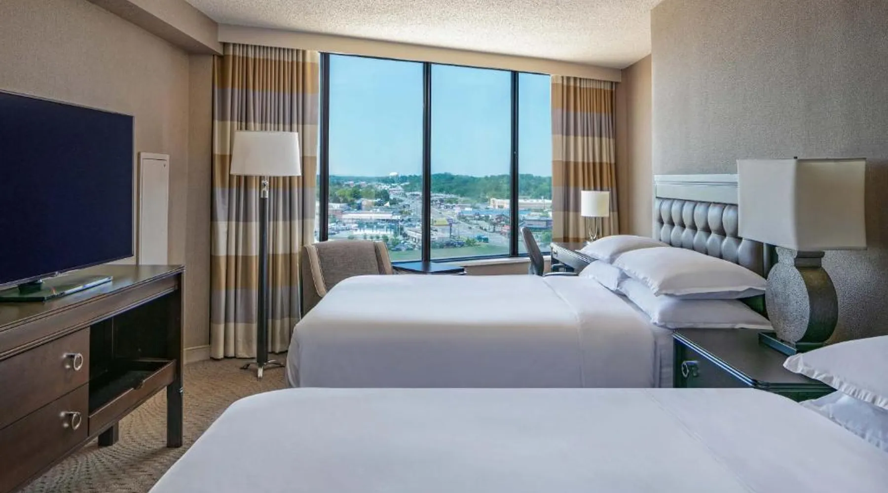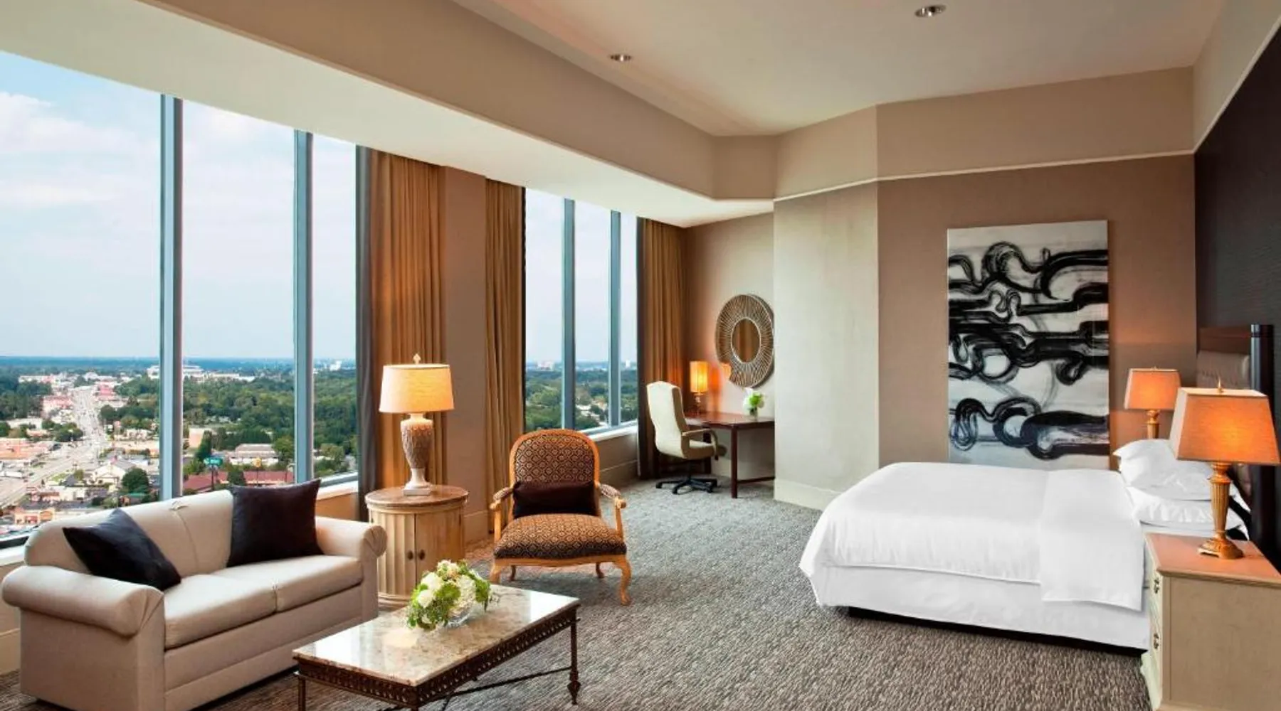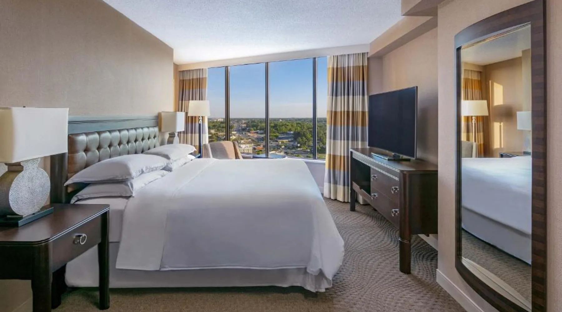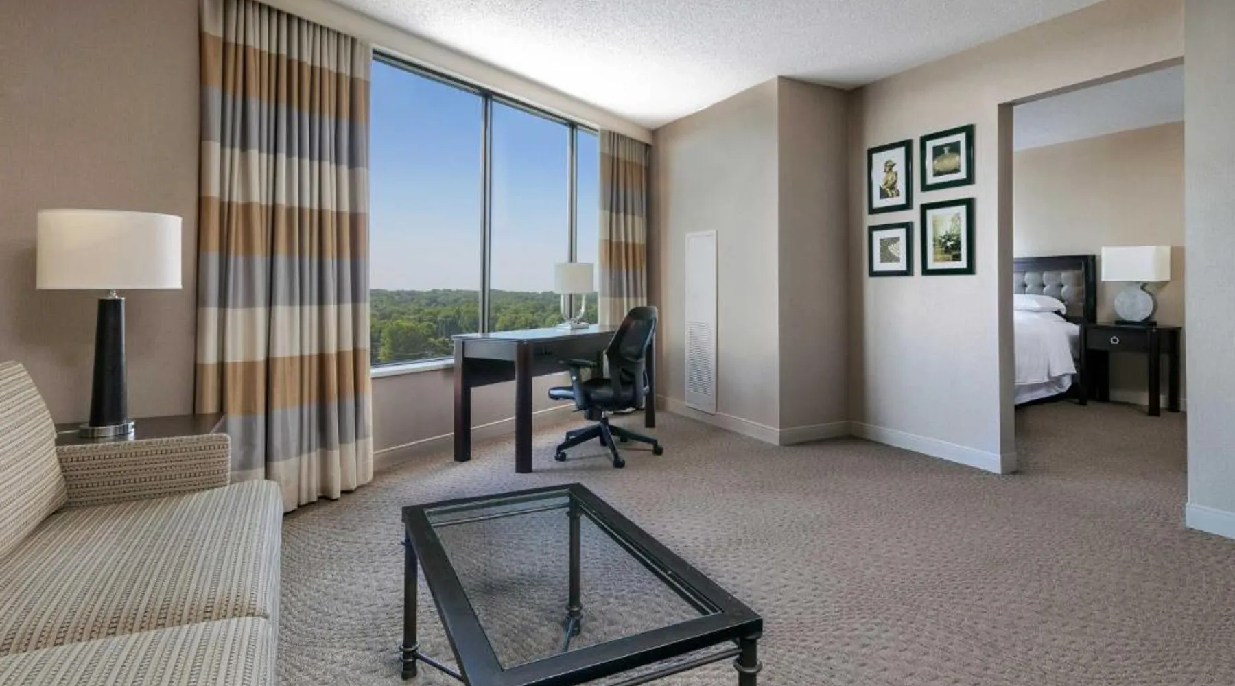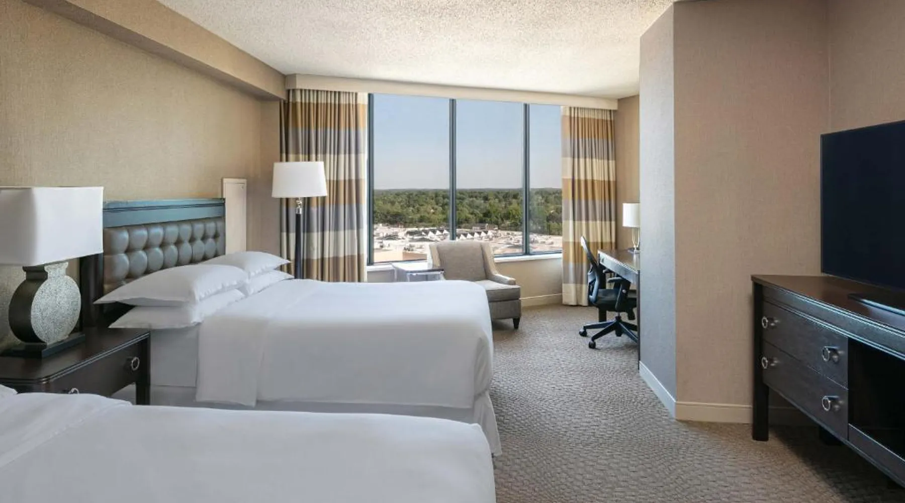 Located in Greensboro, North Carolina, this hotel is 1.4 mi from Greensboro Coliseum. White Oak Amphitheater and Airbound Trampoline Park are also within 1.9 mi. The hotel features a fitness center and on-site dining. Rooms include 37-inch flat-screen TVs. Each air-conditioned room at Sheraton Greensboro includes coffee-making facilities and a work desk. Warmly decorated, the rooms also include free Wi-Fi. Joseph's full-service restaurant, an indoor pool, and an outdoor pool are available at this hotel. Free WiFi in public areas, free self parking, and a free airport shuttle are also provided. Other amenities include 3 bars/lounges, a 24-hour fitness center, and a coffee shop/café. The hotel offers free shuttle service to and from Piedmont Triad International Airport and is 20 minutes’ drive away. The University of North Carolina Greensboro is 3 miles away. The spacious double room features air conditioning, a safe deposit box, as well as a private bathroom boasting a hairdryer. The double room offers a carpeted floor. The unit has 1 bed.