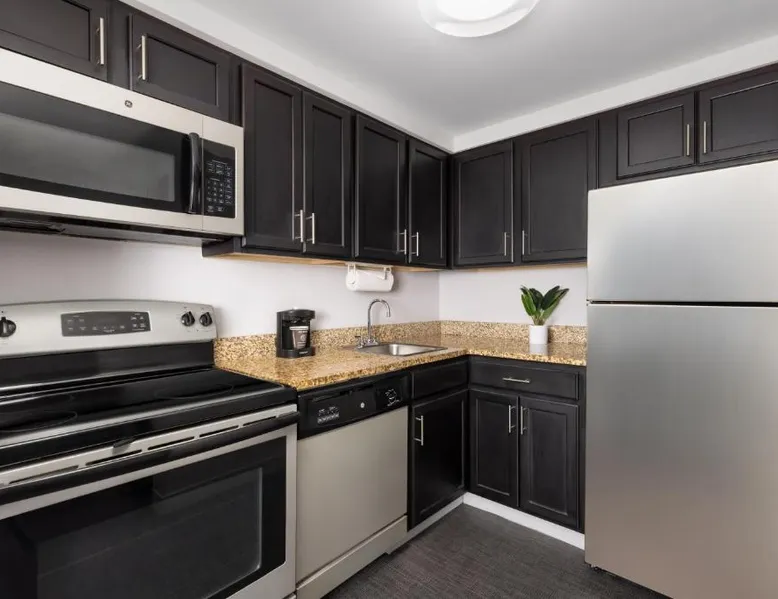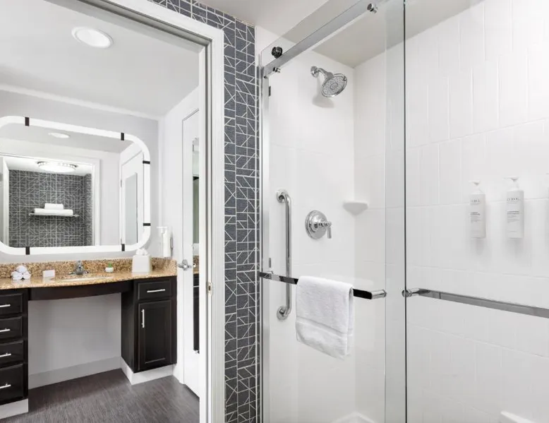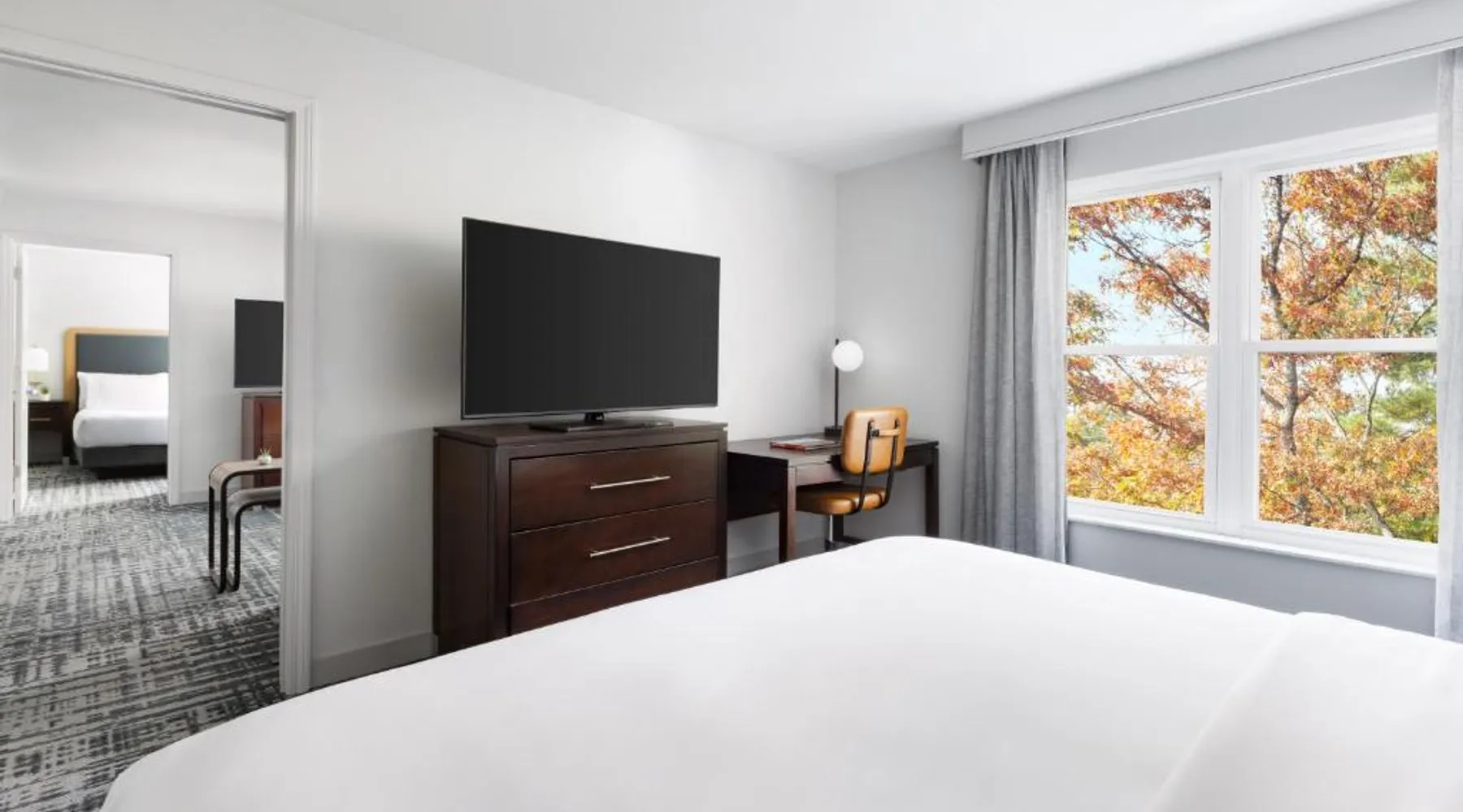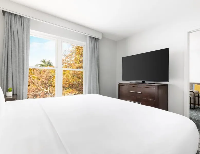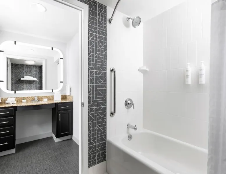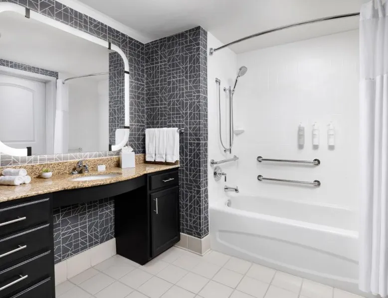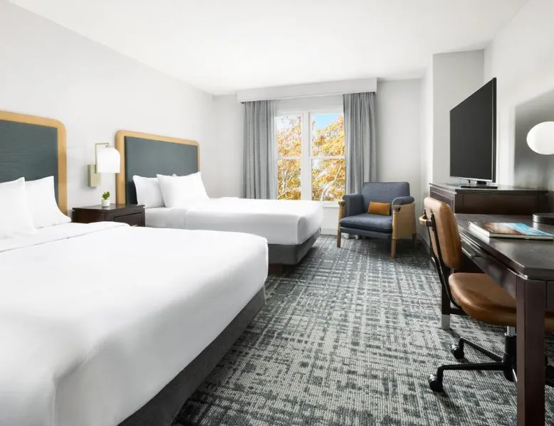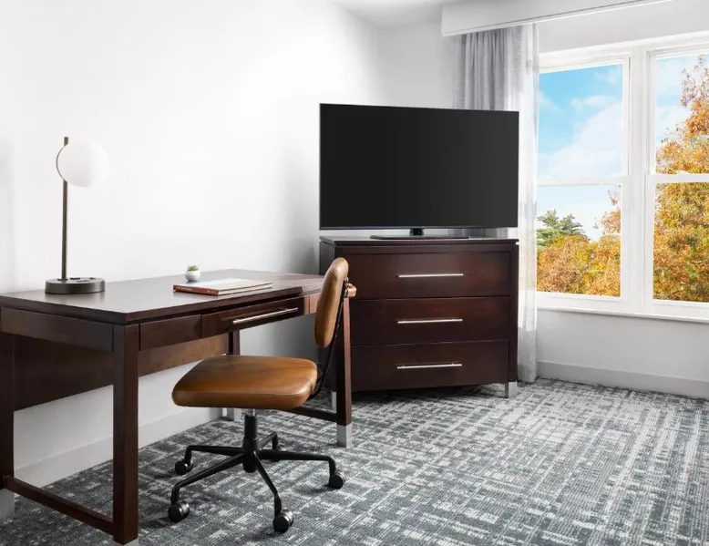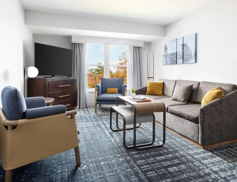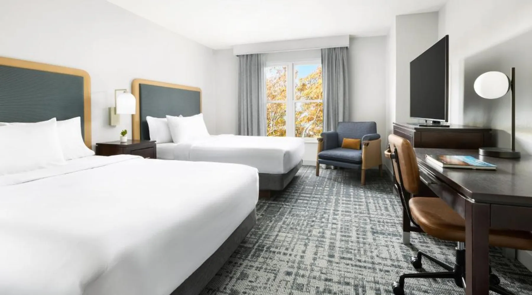 Comfortable Accommodations: Homewood Suites by Hilton Manchester/Airport in Manchester offers family rooms with air-conditioning, kitchen facilities, and free WiFi. Each room includes a work desk, TV, and free toiletries. Exceptional Facilities: Guests can enjoy a fitness center, indoor swimming pool, and free airport shuttle service. Additional amenities include a lounge, minimarket, and outdoor play area. Delicious Breakfast: A complimentary American buffet breakfast is served daily, catering to diverse preferences. Convenient Location: Located 0.6 mi from Manchester Boston Regional Airport, the hotel is near attractions such as Mall Of New Hampshire (2.1 mi) and State Park (6.2 mi). The fully equipped kitchen features a stovetop, a refrigerator, kitchenware and an oven. The suite provides air conditioning, a tea and coffee maker, a seating area, heating, as well as a flat-screen TV. The unit offers 2 beds.