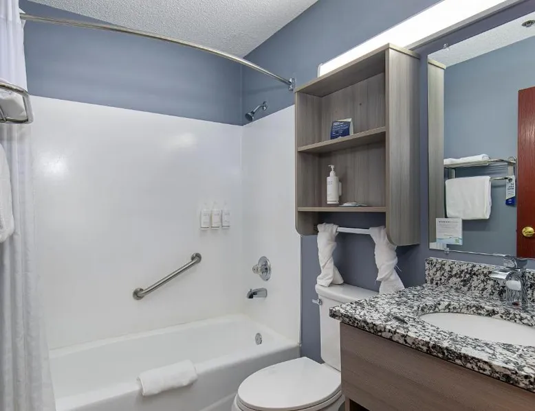Located close to Interstate 75, this Dry Ridge hotel offers free Wi-Fi and rooms equipped with plush bedding, modern decor, and a work desk. Piddle Park and Lake Polliwog are 1 mile away. All rooms at Microtel Inn & Suites by Wyndham Dry Ridge feature cable TV, a seating area, and an private bathroom. Select rooms offer a microwave and refrigerator. Continental breakfast is served each morning and it features hot coffee or tea with fruit and pastries. Guests can use the business center that offers fax and photocopying services. A 24-hour front desk is also provided. Dining options are less than half a mile from Dry Ridge Microtel Inn & Suites by Wyndham and Williamstown Lake is 7 miles away. We are located 5 miles away from The Ark Encounter theme park and 40 miles away from The Creation Museum theme park. Our hot continental breakfast includes scrambled eggs, sausage links and homemade waffles. This suite has a microwave, refrigerator, coffee maker and a separate bathroom. It includes free WiFi and complimentary breakfast.