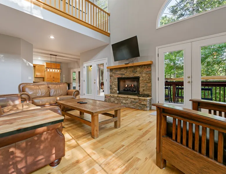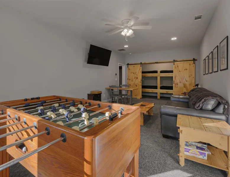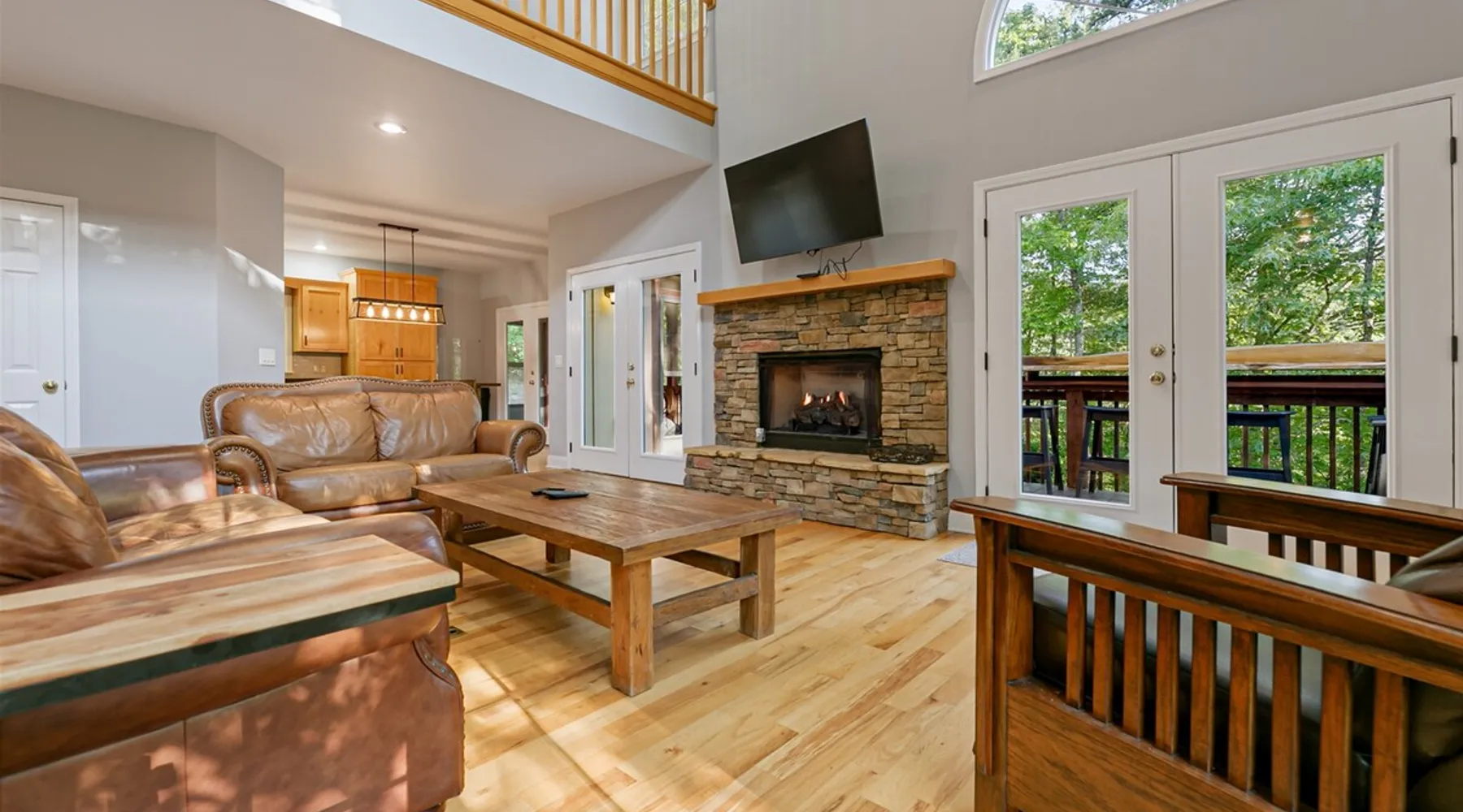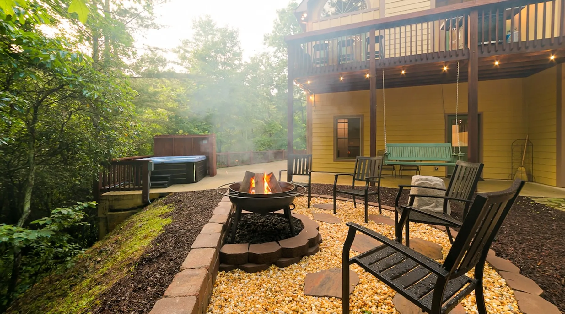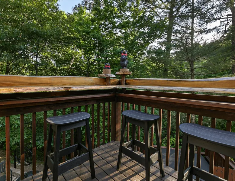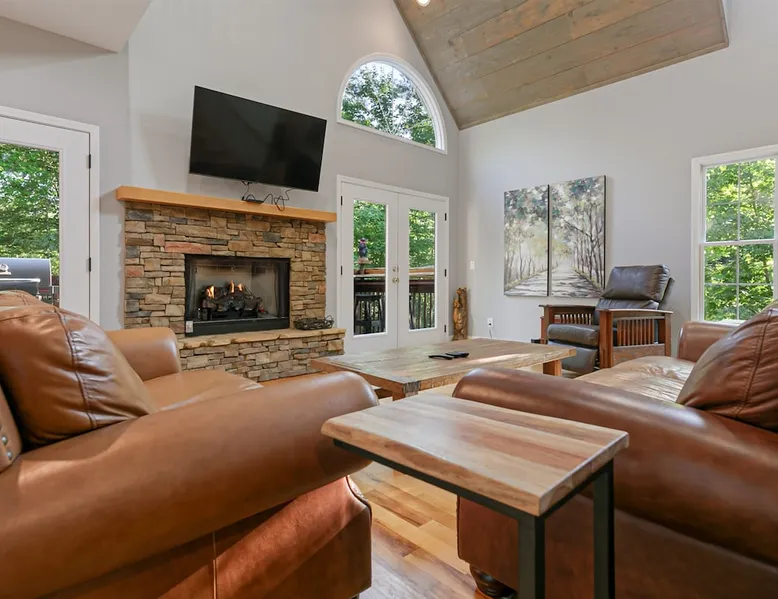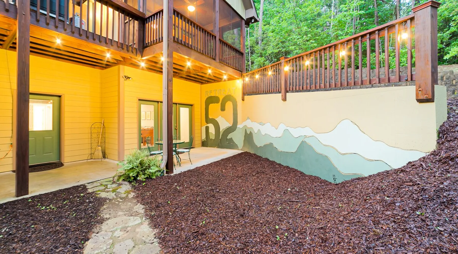 Retreat 52 presents a meticulously upgraded three-level home within Innsbruck Golf Resort. Tucked away at the rear of the community, it boasts direct access to the lush greenery of the golf course, offering unparalleled privacy mere minutes from downtown Helen. The space Retreat 52 is a fully-loaded & newly renovated 3 level home in Innsbruck Golf Resort. The property is nestled in the back of the community right on the green. Enjoy privacy only minutes away from downtown Helen. The inside boasts a spacious main level great room with a modern rustic design, gas fireplace, and large windows that provide great natural light. The kitchen is fully equipped with stainless steel appliances, and a large dining table with a beautiful Edison bulb light fixture. Every bedroom is furnished with ultra-comfortable luxury linens, and Smart TVs for down time. The large deck features a screened-in portion, along with an outside bar on the railing, and commercial grade grill for BBQs. The terrace level is dedicated to entertainment and features a pool table, foosball table, additional family room with Smart TV, patio, fire pit area, and large hot tub. Retreat 52 sleeps 10 comfortably, and is ideal for families with 2-6 kids (bunk bed room). Enjoy all of the additional amenities of Innsbruck including:, golf, spa, & more! Other things to note 25+ age requirement for lead guest. No exceptions. This property is not pet or dog-friendly. No exceptions. Digital rental agreement will be required to sign and complete after property is booked. Firewood not provided for fire pit. Located in a private gated community. Trailers are not allowed. You can bring your own golf cart to travel within Innsbruck and downtown Helen, but it will have to be unloaded prior to entering community. Personal golf carts not allowed on golf course.