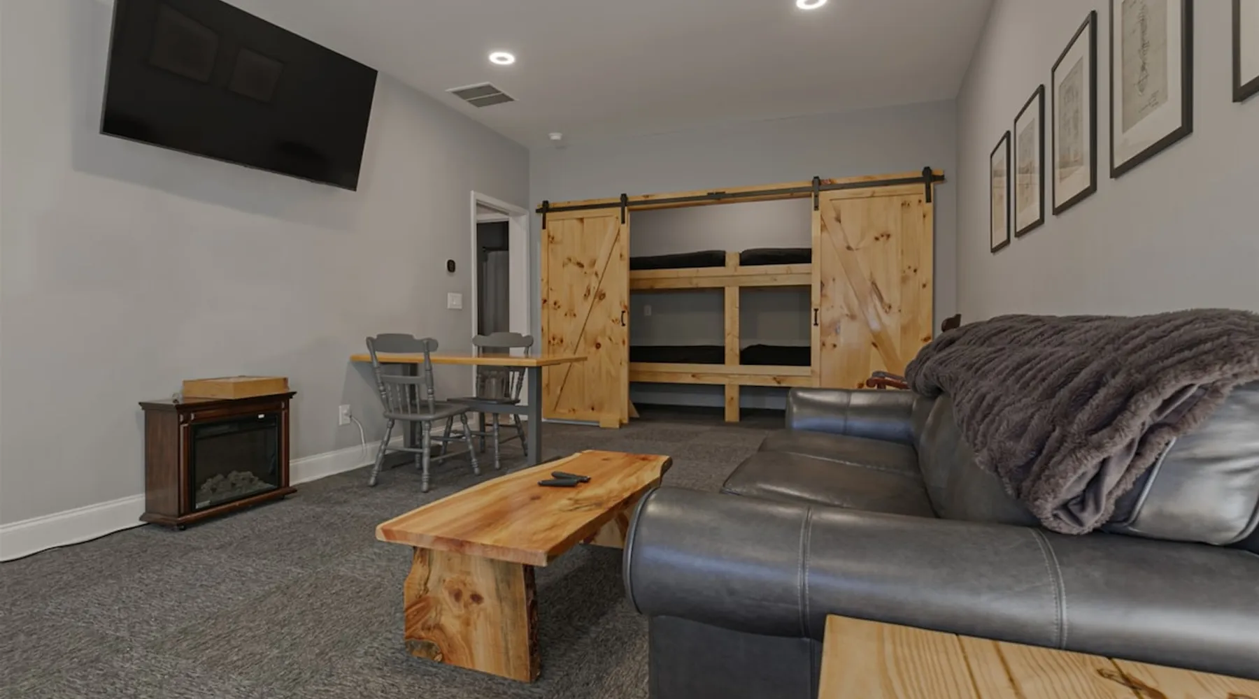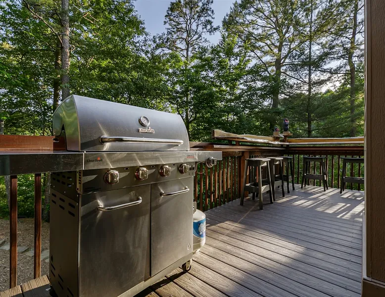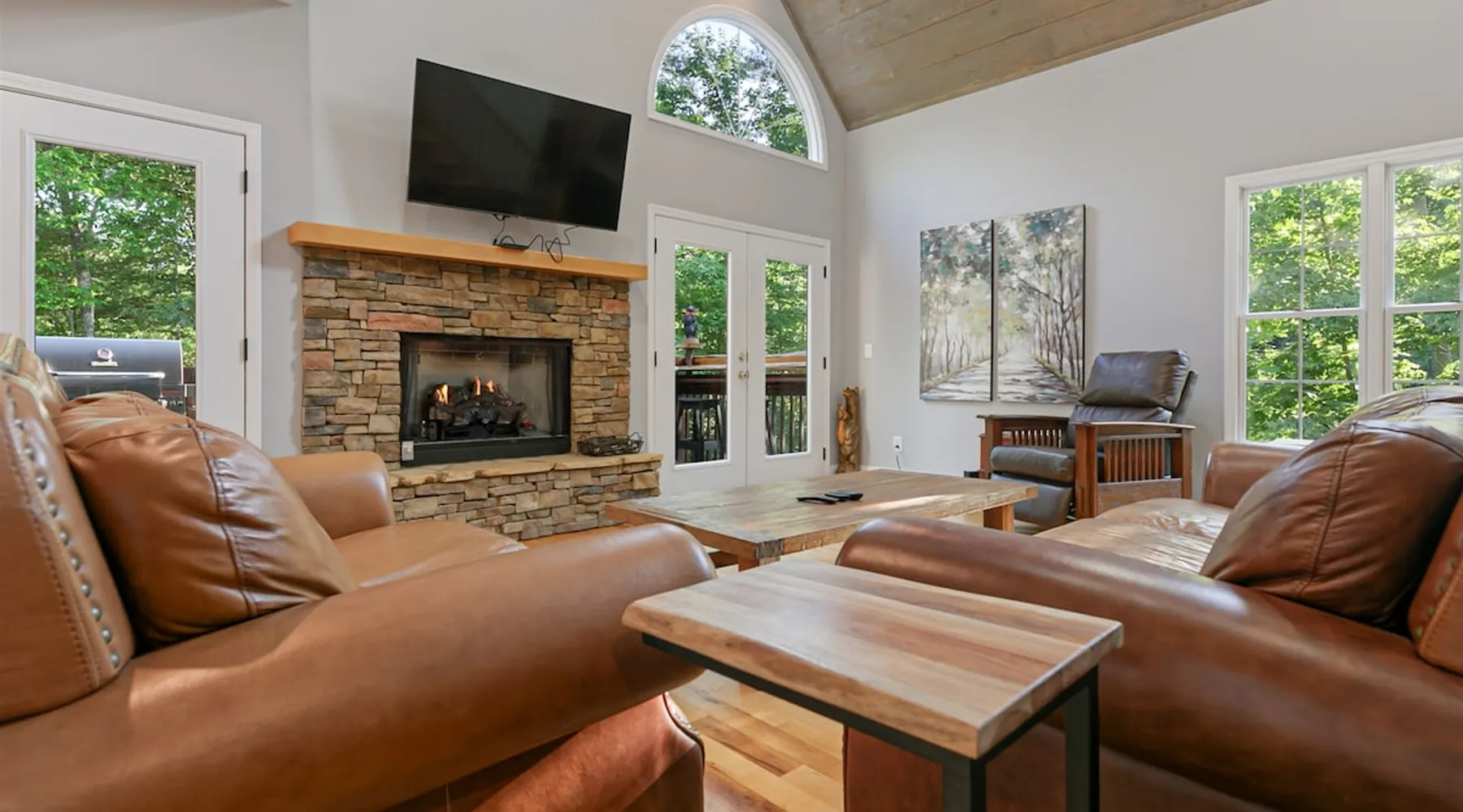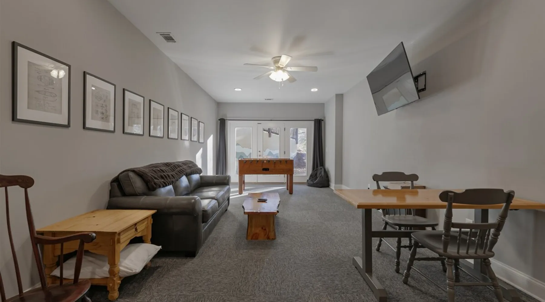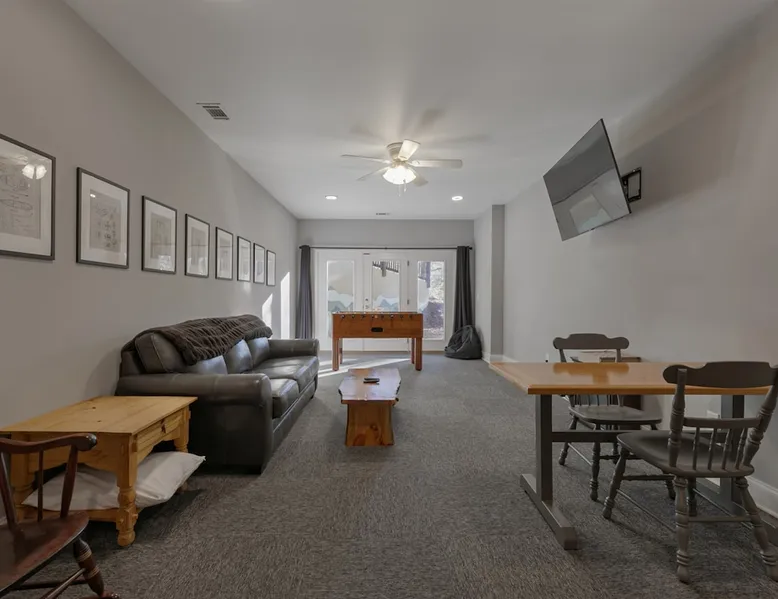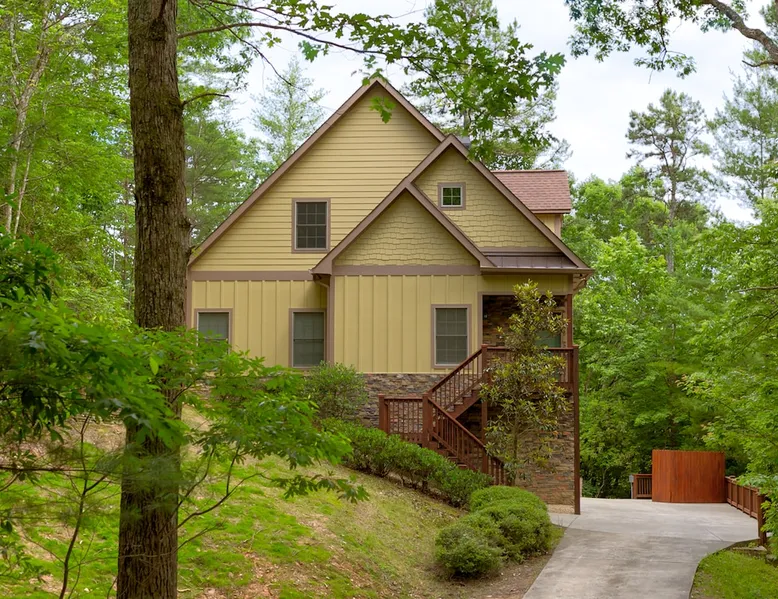 Retreat 52 presents a meticulously upgraded three-level home within Innsbruck Golf Resort. Tucked away at the rear of the community, it boasts direct access to the lush greenery of the golf course, offering unparalleled privacy mere minutes from downtown Helen. The space Retreat 52 is a fully-loaded & newly renovated 3 level home in Innsbruck Golf Resort. The property is nestled in the back of the community right on the green. Enjoy privacy only minutes away from downtown Helen. The inside boasts a spacious main level great room with a modern rustic design, gas fireplace, and large windows that provide great natural light. The kitchen is fully equipped with stainless steel appliances, and a large dining table with a beautiful Edison bulb light fixture. Every bedroom is furnished with ultra-comfortable luxury linens, and Smart TVs for down time. The large deck features a screened-in portion, along with an outside bar on the railing, and commercial grade grill for BBQs. The terrace level is dedicated to entertainment and features a pool table, foosball table, additional family room with Smart TV, patio, fire pit area, and large hot tub. Retreat 52 sleeps 10 comfortably, and is ideal for families with 2-6 kids (bunk bed room). Enjoy all of the additional amenities of Innsbruck including:, golf, spa, & more! Other things to note 25+ age requirement for lead guest. No exceptions. This property is not pet or dog-friendly. No exceptions. Digital rental agreement will be required to sign and complete after property is booked. Firewood not provided for fire pit. Located in a private gated community. Trailers are not allowed. You can bring your own golf cart to travel within Innsbruck and downtown Helen, but it will have to be unloaded prior to entering community. Personal golf carts not allowed on golf course.