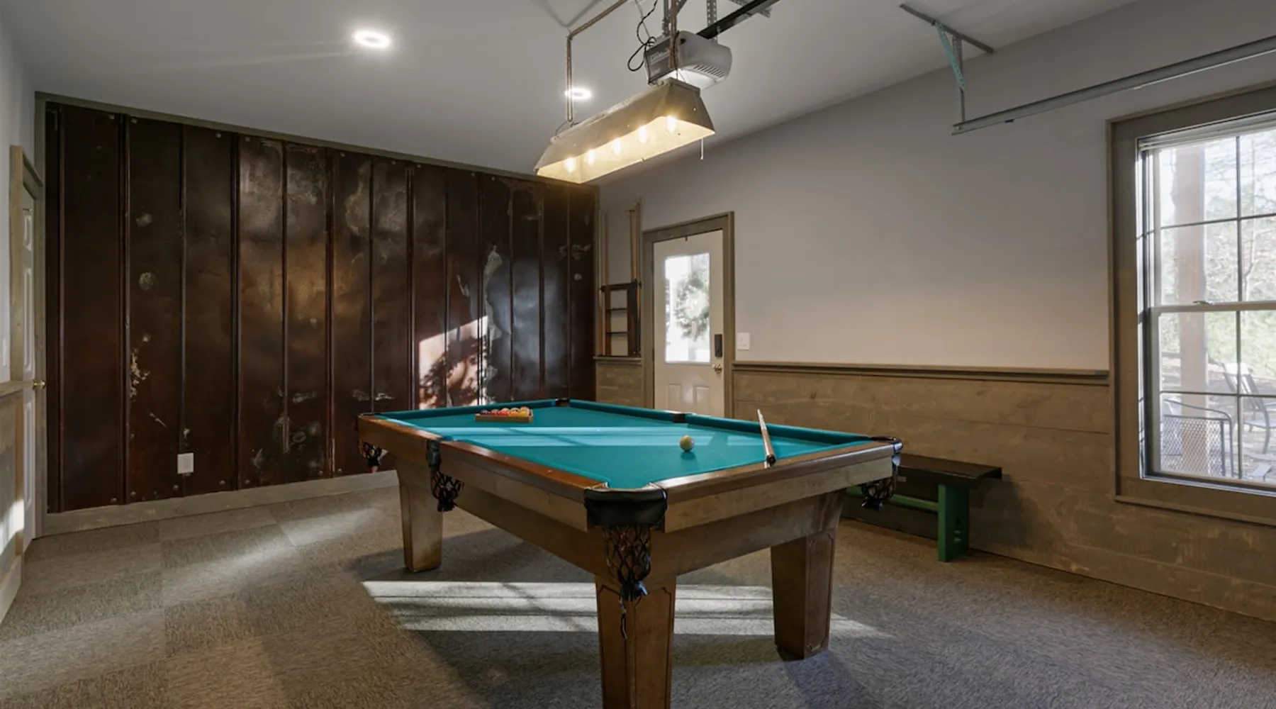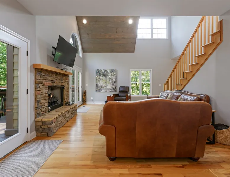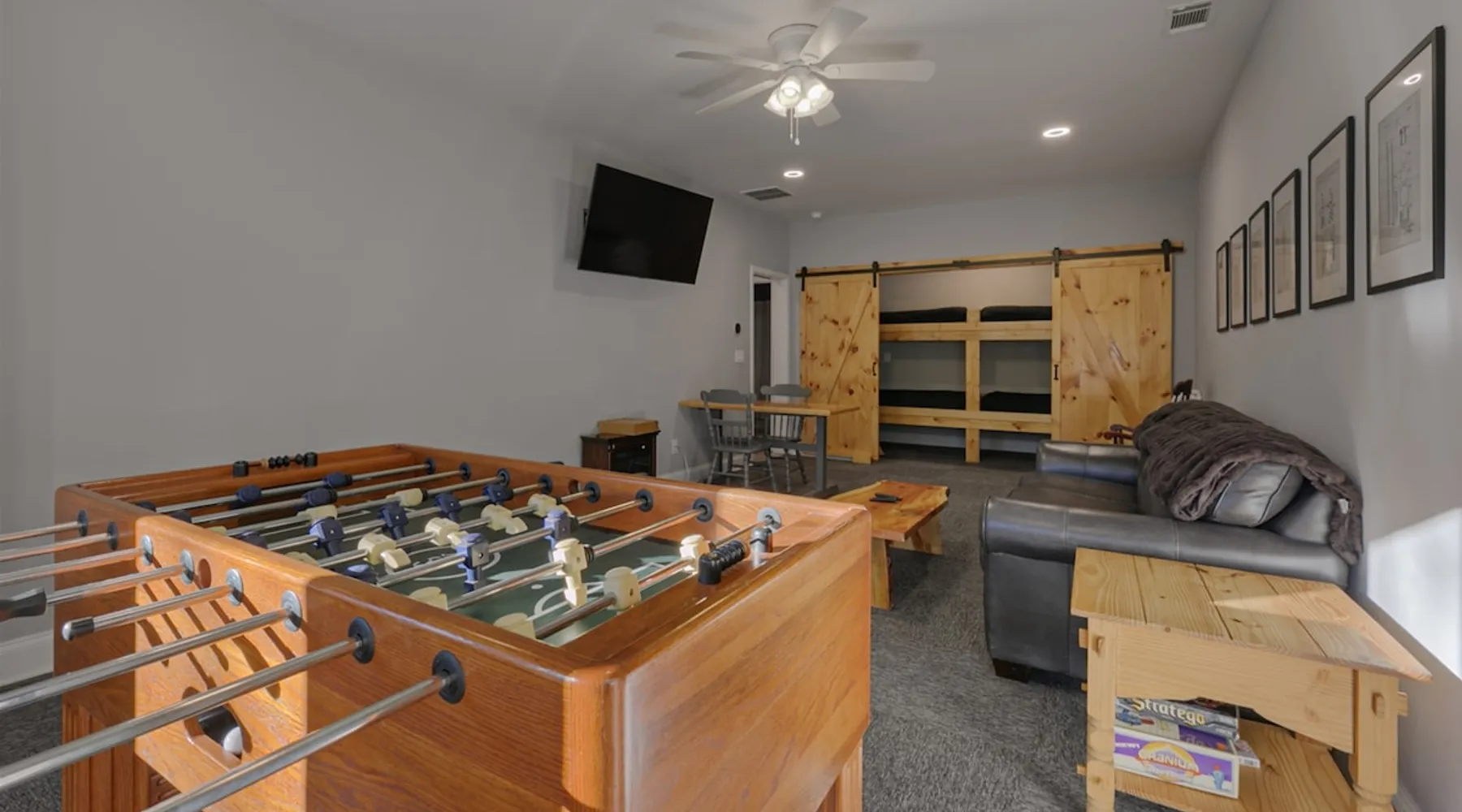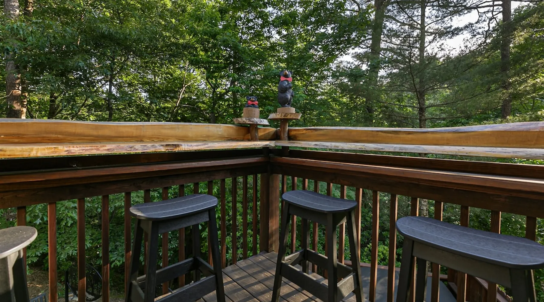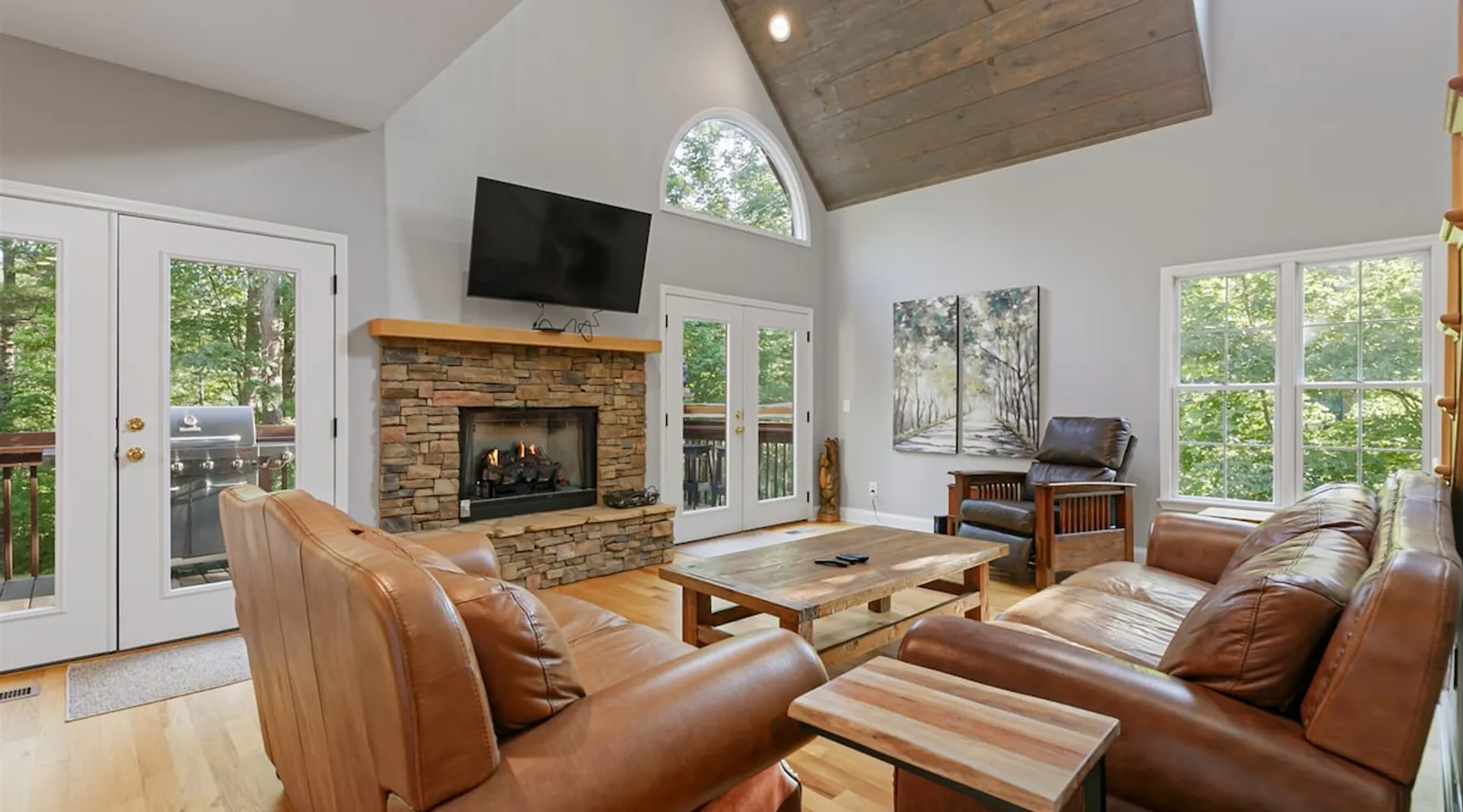 Retreat 52 presents a meticulously upgraded three-level home within Innsbruck Golf Resort. Tucked away at the rear of the community, it boasts direct access to the lush greenery of the golf course, offering unparalleled privacy mere minutes from downtown Helen. The space Retreat 52 is a fully-loaded & newly renovated 3 level home in Innsbruck Golf Resort. The property is nestled in the back of the community right on the green. Enjoy privacy only minutes away from downtown Helen. The inside boasts a spacious main level great room with a modern rustic design, gas fireplace, and large windows that provide great natural light. The kitchen is fully equipped with stainless steel appliances, and a large dining table with a beautiful Edison bulb light fixture. Every bedroom is furnished with ultra-comfortable luxury linens, and Smart TVs for down time. The large deck features a screened-in portion, along with an outside bar on the railing, and commercial grade grill for BBQs. The terrace level is dedicated to entertainment and features a pool table, foosball table, additional family room with Smart TV, patio, fire pit area, and large hot tub. Retreat 52 sleeps 10 comfortably, and is ideal for families with 2-6 kids (bunk bed room). Enjoy all of the additional amenities of Innsbruck including:, golf, spa, & more! Other things to note 25+ age requirement for lead guest. No exceptions. This property is not pet or dog-friendly. No exceptions. Digital rental agreement will be required to sign and complete after property is booked. Firewood not provided for fire pit. Located in a private gated community. Trailers are not allowed. You can bring your own golf cart to travel within Innsbruck and downtown Helen, but it will have to be unloaded prior to entering community. Personal golf carts not allowed on golf course.