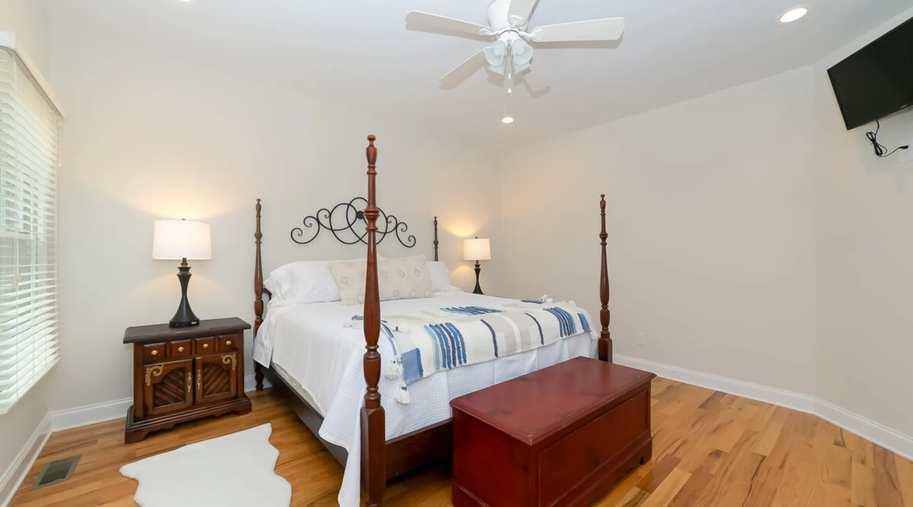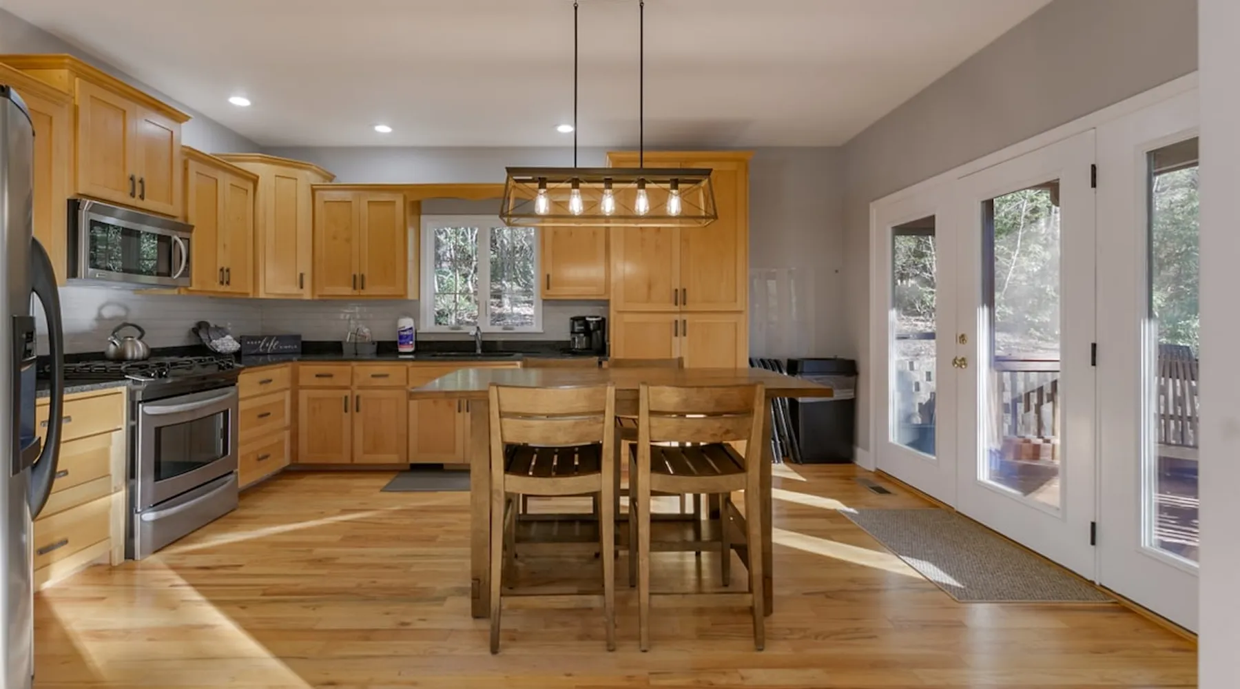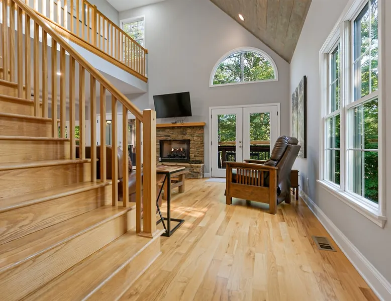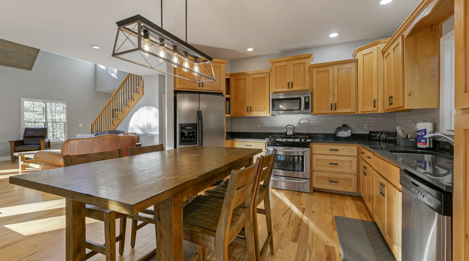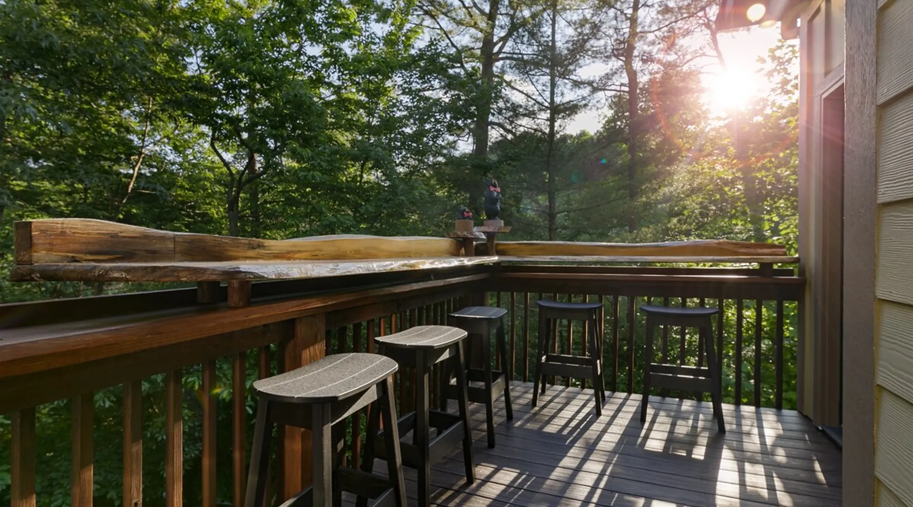 Retreat 52 presents a meticulously upgraded three-level home within Innsbruck Golf Resort. Tucked away at the rear of the community, it boasts direct access to the lush greenery of the golf course, offering unparalleled privacy mere minutes from downtown Helen. The space Retreat 52 is a fully-loaded & newly renovated 3 level home in Innsbruck Golf Resort. The property is nestled in the back of the community right on the green. Enjoy privacy only minutes away from downtown Helen. The inside boasts a spacious main level great room with a modern rustic design, gas fireplace, and large windows that provide great natural light. The kitchen is fully equipped with stainless steel appliances, and a large dining table with a beautiful Edison bulb light fixture. Every bedroom is furnished with ultra-comfortable luxury linens, and Smart TVs for down time. The large deck features a screened-in portion, along with an outside bar on the railing, and commercial grade grill for BBQs. The terrace level is dedicated to entertainment and features a pool table, foosball table, additional family room with Smart TV, patio, fire pit area, and large hot tub. Retreat 52 sleeps 10 comfortably, and is ideal for families with 2-6 kids (bunk bed room). Enjoy all of the additional amenities of Innsbruck including:, golf, spa, & more! Other things to note 25+ age requirement for lead guest. No exceptions. This property is not pet or dog-friendly. No exceptions. Digital rental agreement will be required to sign and complete after property is booked. Firewood not provided for fire pit. Located in a private gated community. Trailers are not allowed. You can bring your own golf cart to travel within Innsbruck and downtown Helen, but it will have to be unloaded prior to entering community. Personal golf carts not allowed on golf course.