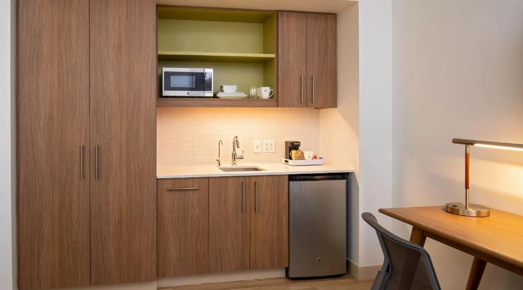 Comfortable Accommodations: Element Moline in Moline offers family rooms with air-conditioning, private bathrooms, and modern amenities. Each room includes a kitchenette, work desk, and free WiFi. Exceptional Facilities: Guests enjoy an indoor swimming pool, fitness center, and free bicycles. Additional facilities include an outdoor fireplace, picnic area, and barbecue facilities. Delicious Breakfast: A buffet breakfast is served daily, featuring warm dishes, fresh pastries, fruits, and juices. Prime Location: Located 5.6 mi from Quad City International Airport, the hotel is a 2-minute walk from TaxSlayer Center. Nearby attractions include Fryxell Geology Museum (1.9 mi) and Adler Theater (3.7 mi). Offering free toiletries, this double room includes a private bathroom with a walk-in shower and a hairdryer. In the kitchen, guests will find a stovetop, a refrigerator, a dishwasher and kitchenware. The spacious air-conditioned double room offers a TV with streaming services, a tea and coffee maker, a seating area, a wardrobe as well as city views. The unit has 1 bed.