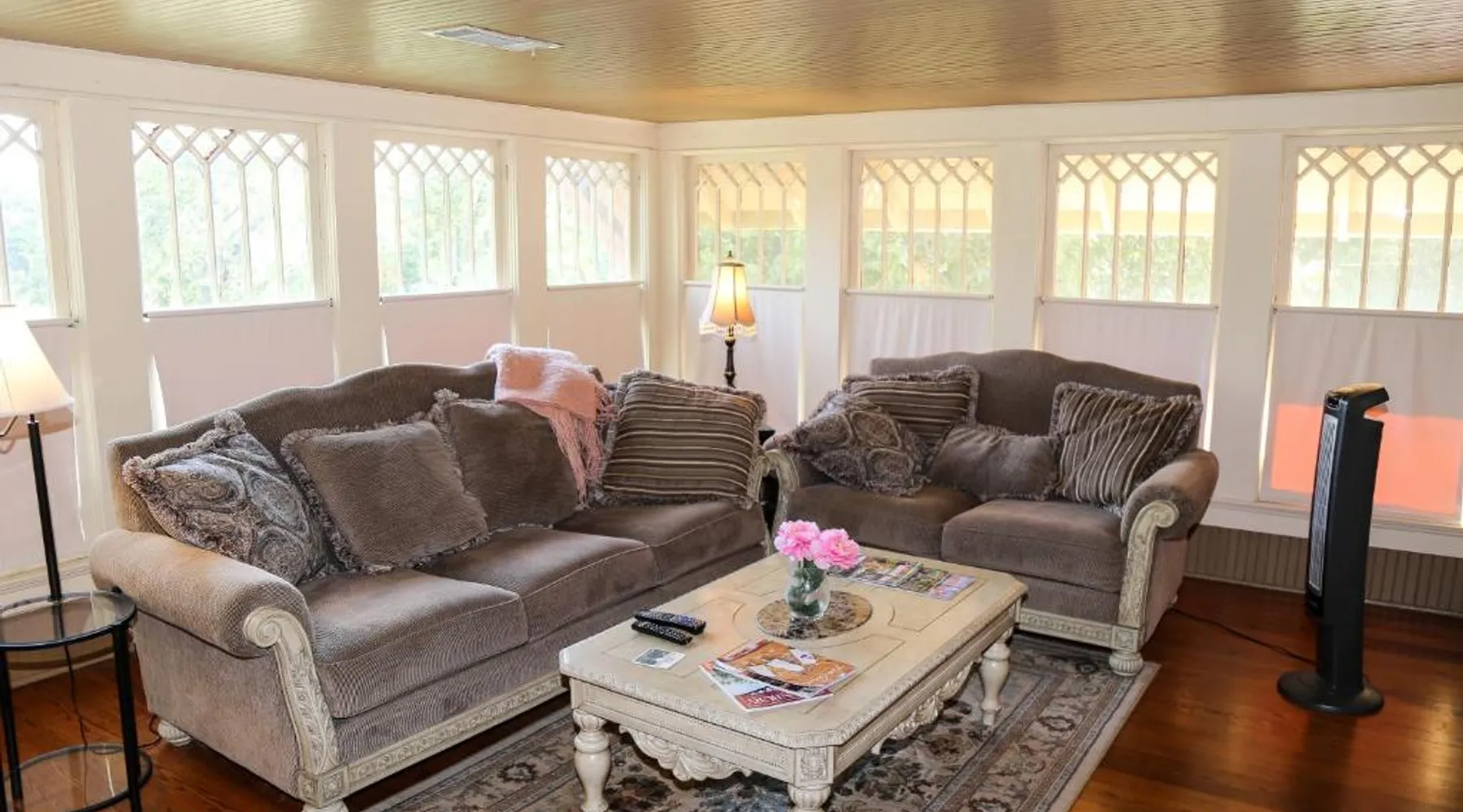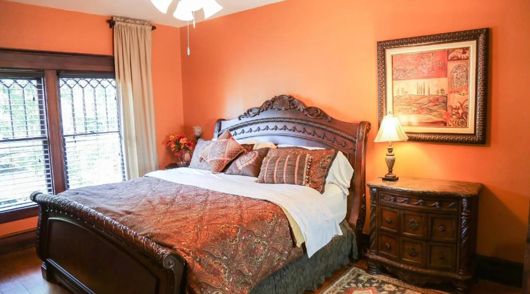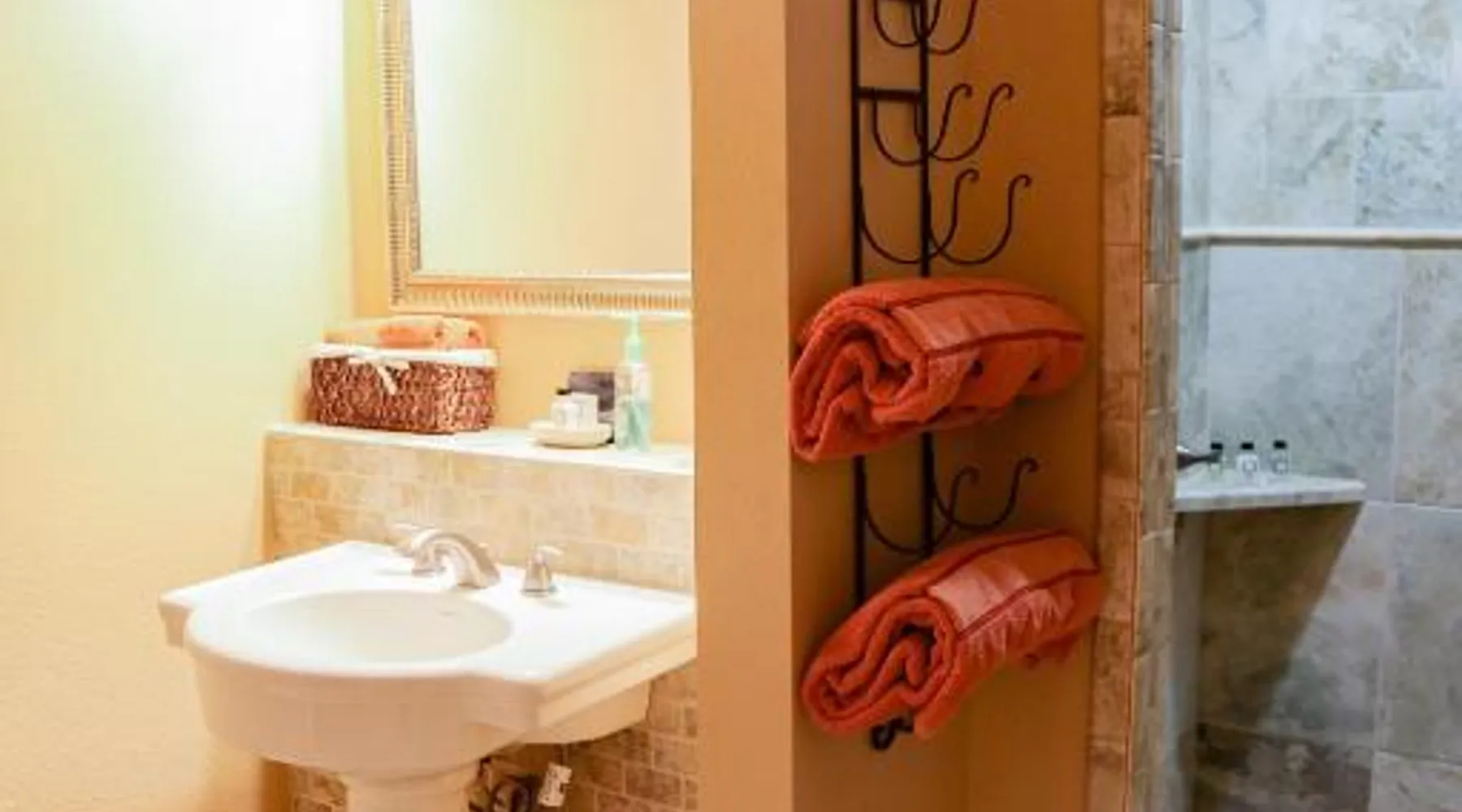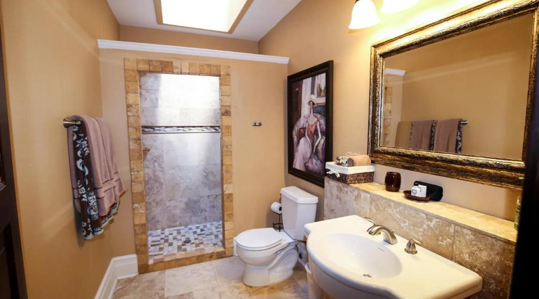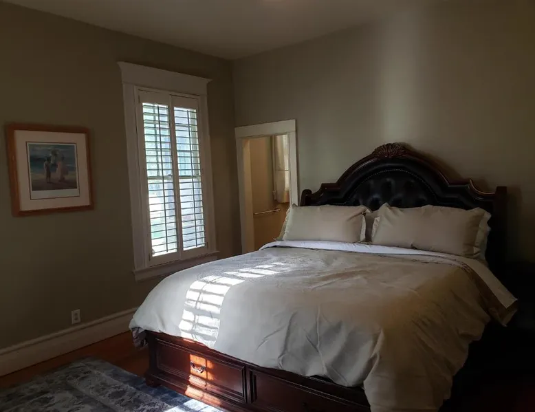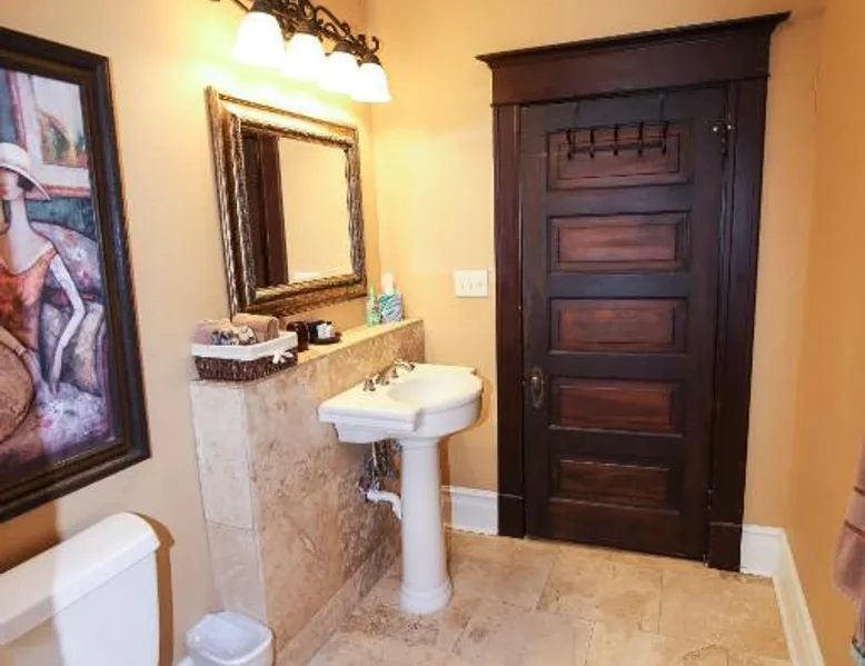 Elegant Accommodations: Iron Horse Inn in Granbury offers adults-only 5-star bed and breakfast experiences. Each room features air-conditioning, private bathrooms, and modern amenities. Exceptional Facilities: Guests enjoy free WiFi, private check-in and check-out, a lounge, and outdoor seating areas. Additional services include a shuttle, laundry, and barbecue facilities. Delightful Dining: Breakfast is served in-room, with menus catering to special diets. The property also offers a bar and outdoor dining areas. Prime Location: Located 21 mi from Dinosaur Valley State Park, the inn is highly rated for its breakfast, host, and history. This air conditioned bungalow features a cable TV, original hardwood floors and a fireplace.
