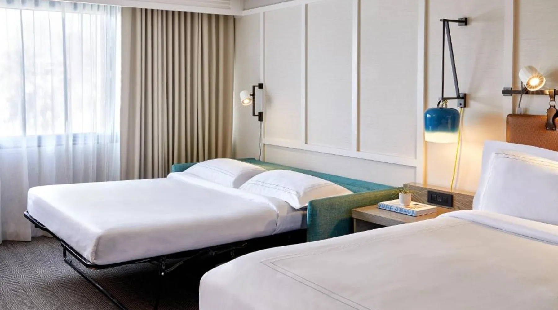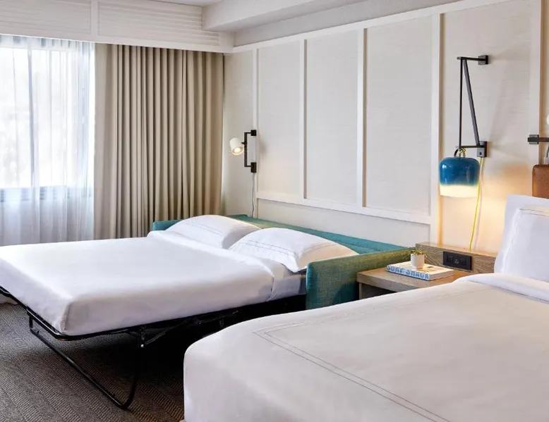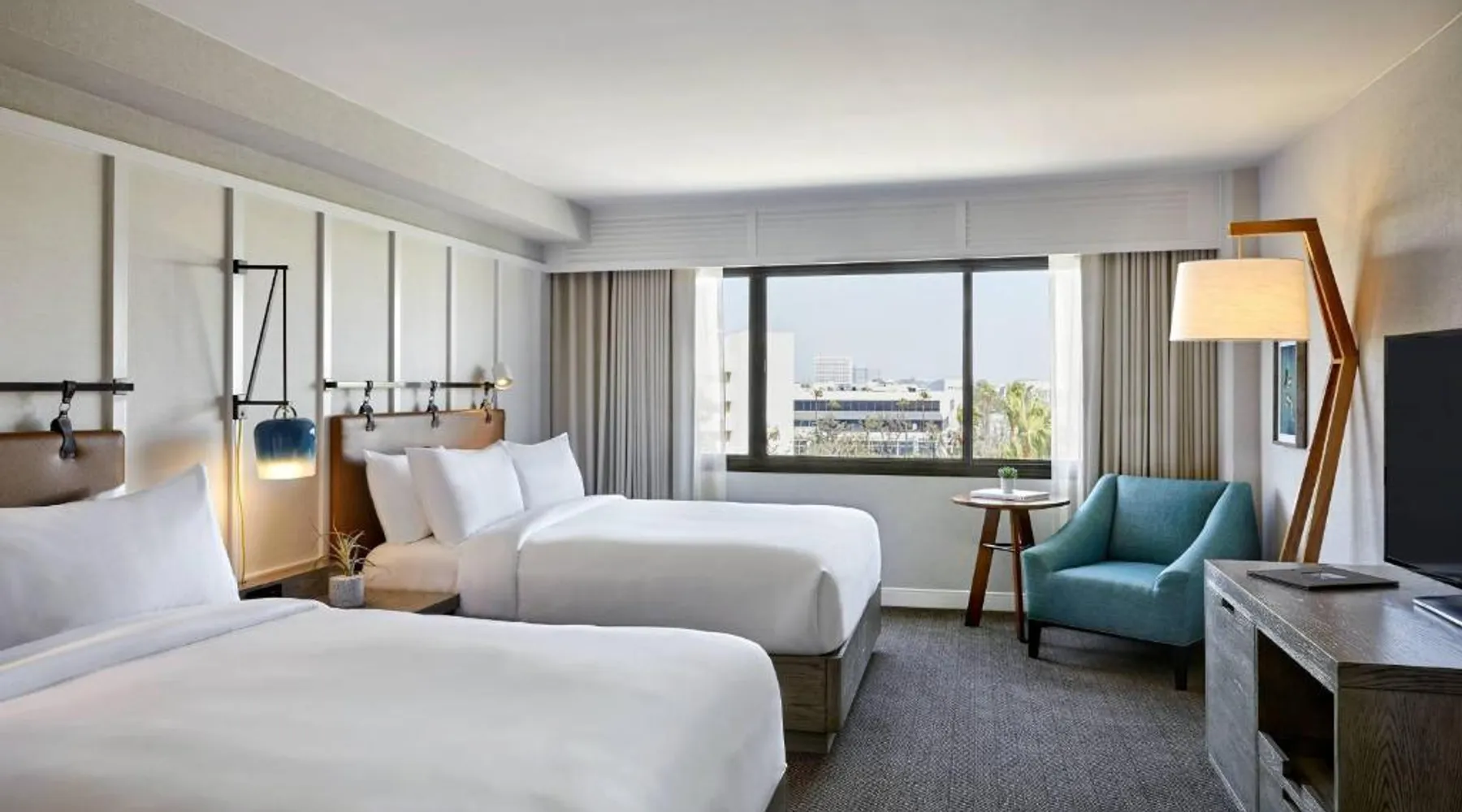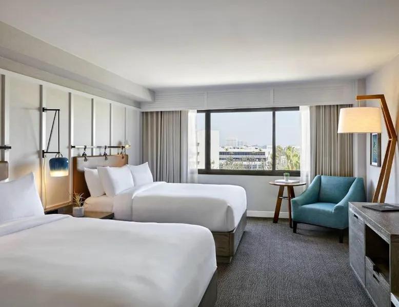 Just 1 mile from the Pacific Ocean, Westdrift Manhattan Beach, Autograph Collection offers elegant accommodations surrounded by a green Golf Club where guests can play. It features an outdoor pool and a well-equipped gym. The spacious rooms at the Westdrift Manhattan Beach hotel include a living area and bathrooms with bathtub. They are decorated with classic furnishings and large windows overlooking the golf course. Showers are featured in King Bed bathrooms and bath tubs are featured in Double Bed bathrooms. Guests can enjoy the views also at the in-house JUTE Coastal Bar + Kitchen, serving a selection of international dishes and drinks. For more gastronomic experiences, the hotel is located next door from the Manhattan Marketplace Shopping Center. Popular nearby attractions include Venice Beach, 7 miles away and Universal Studios Hollywood, 16 miles from the hotel. Los Angeles International Airport is just 3 miles away. The spacious double room provides air conditioning, soundproof walls, as well as a private bathroom featuring a walk-in shower and a bath. The double room features parquet floors, a seating area with a flat-screen TV with cable channels, a tea and coffee maker, a wardrobe, as well as a safe deposit box. The unit offers 2 beds.
