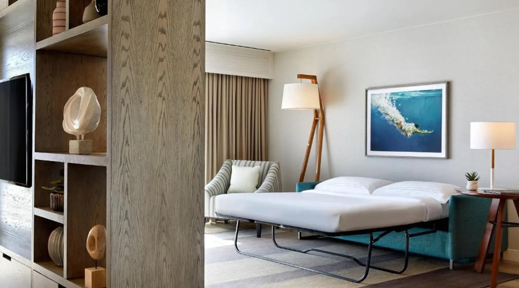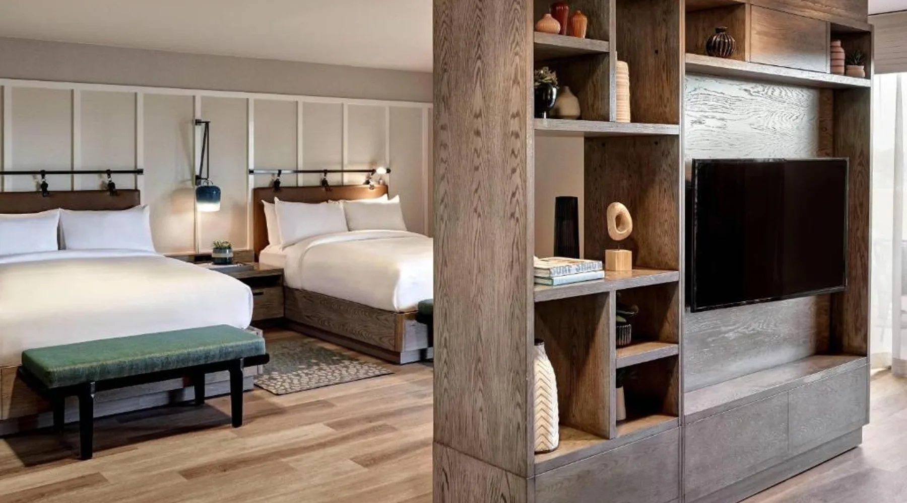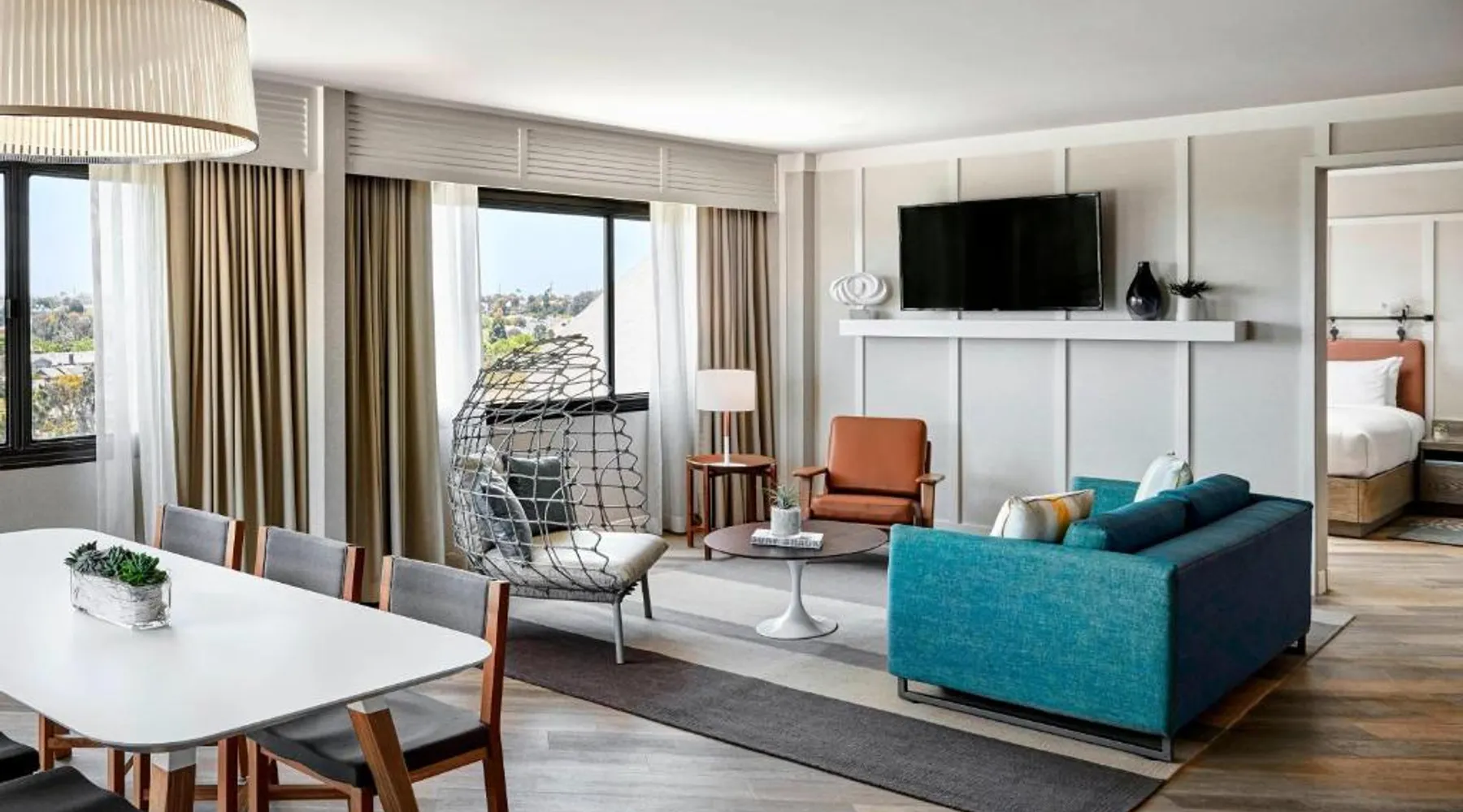 Just 1 mile from the Pacific Ocean, Westdrift Manhattan Beach, Autograph Collection offers elegant accommodations surrounded by a green Golf Club where guests can play. It features an outdoor pool and a well-equipped gym. The spacious rooms at the Westdrift Manhattan Beach hotel include a living area and bathrooms with bathtub. They are decorated with classic furnishings and large windows overlooking the golf course. Showers are featured in King Bed bathrooms and bath tubs are featured in Double Bed bathrooms. Guests can enjoy the views also at the in-house JUTE Coastal Bar + Kitchen, serving a selection of international dishes and drinks. For more gastronomic experiences, the hotel is located next door from the Manhattan Marketplace Shopping Center. Popular nearby attractions include Venice Beach, 7 miles away and Universal Studios Hollywood, 16 miles from the hotel. Los Angeles International Airport is just 3 miles away. The spacious double room provides air conditioning, soundproof walls, as well as a private bathroom featuring a walk-in shower and a bath. The double room features parquet floors, a seating area with a flat-screen TV with cable channels, a tea and coffee maker, a wardrobe, as well as a safe deposit box. The unit offers 2 beds.