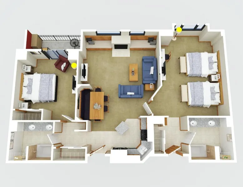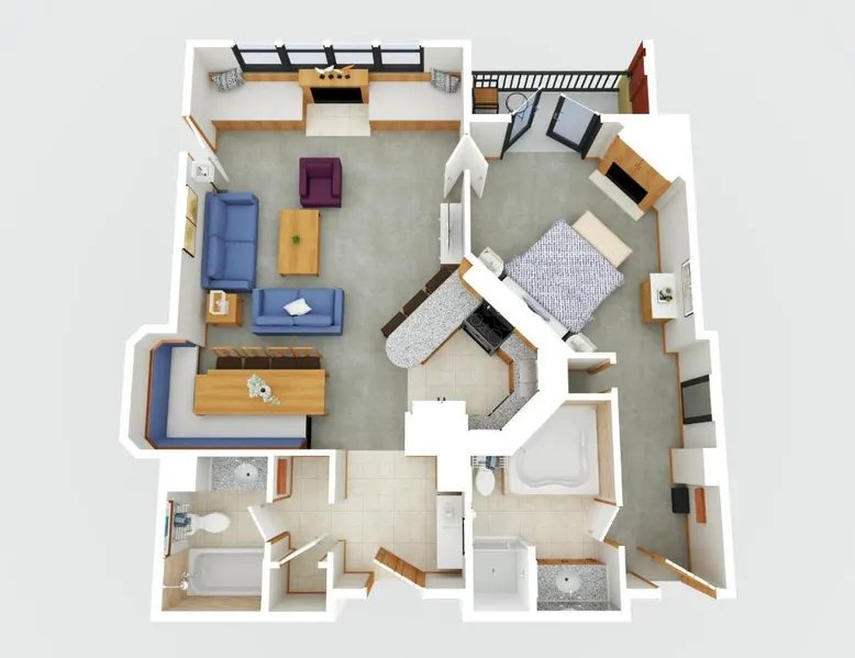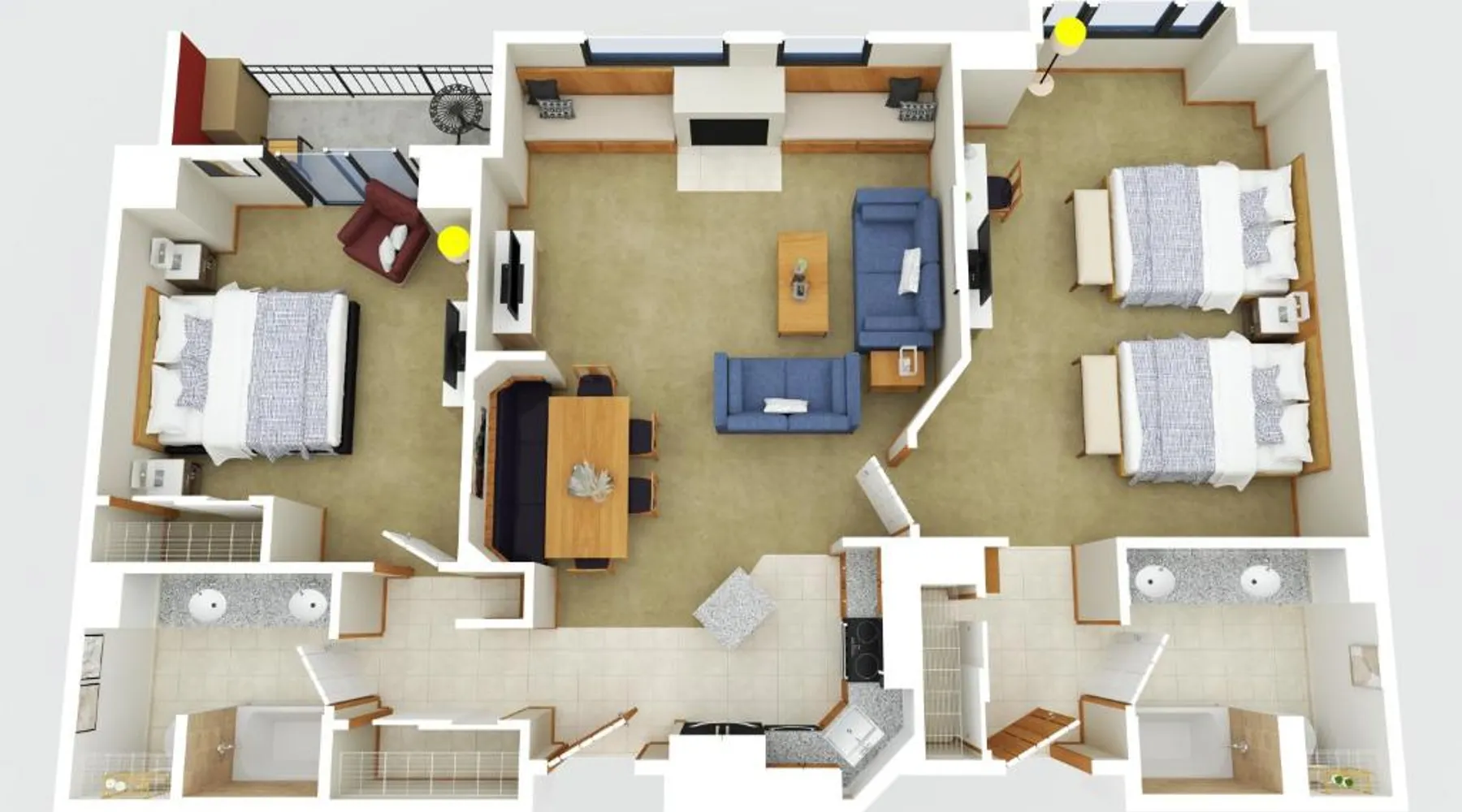 Located 5 minutes' walk from Steamboat Ski Area, this hotel features a year round outdoor pool and hot tub features an on-site restaurant. Ski hire and elevator tickets are available at reception. Free WiFi is available in all guest accommodations. A flat-screen cable TV and a DVD player are available in each spacious unit at The Steamboat Grand. All of the accommodations feature ironing facilities and a coffee maker. Select units include fully equipped modern kitchens with generous woodwork and a dining area, sofa beds and balconies. Serving breakfast, lunch and dinner, The Cabin bar and restaurant is located on-site at Steamboat Grand. The restaurant features authentic Colorado produce, meat and game and offers a children’s breakfast and dinner menu, along with vegetarian options. A Friday through Sunday Happy Hour is offered at the bar. A full service spa is available to guests of The Steamboat Grand which offers a number of different massages, body treatments and facials. Guests have access to the business center with fax and photocopying services. For convenience, a guest launderette is available. A free transfer service is available to Steamboat town center, just 1.6 mi away from this hotel. Strawberry Hot Springs is 10 minutes' drive. Numerous mountain biking and hiking trails are located in the area around this hotel. This apartment has a balcony, sofa and oven. This apartment also includes 2 private bathrooms.