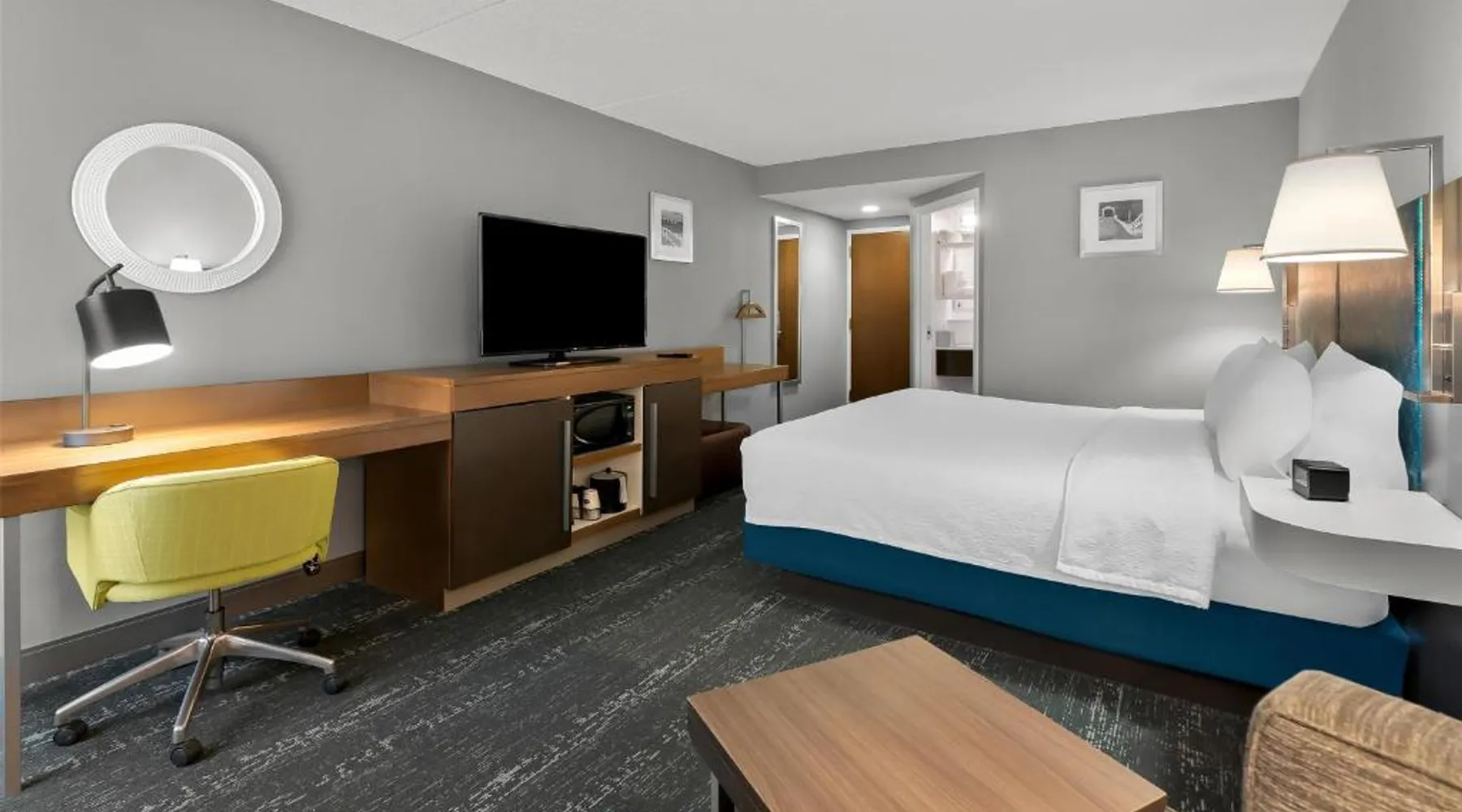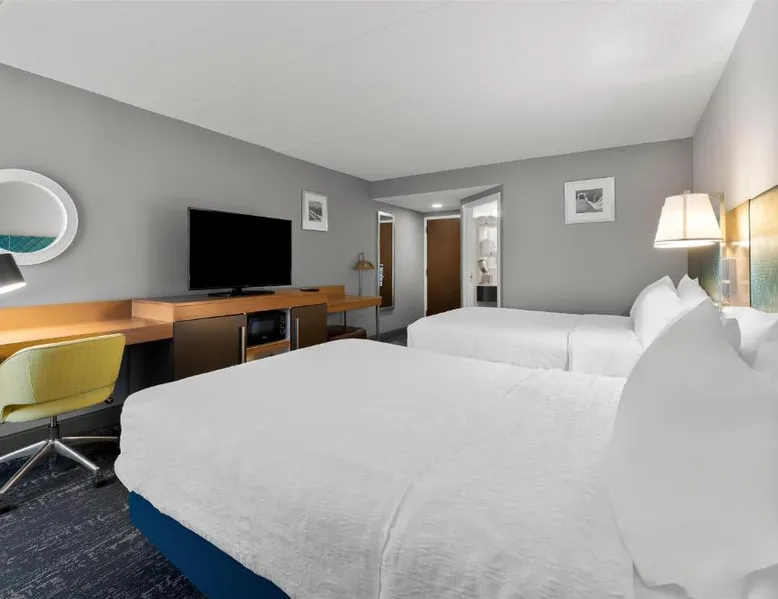 This hotel in Yardley, Pennsylvania offers free high-speed internet access and a free hot breakfast. LaSalle University and the Sesame Place Amusement Park are a short drive from the hotel. Available at the Hampton Inn & Suites Newtown hotel is baggage storage. A fitness room and an outdoor pool are on-site. Available in the room is a coffeemaker. Multi-lingual staff is also available on-site. The Philadelphia Museum of Art and the Philadelphia Zoo are within driving distance of the Newtown Hampton Inn & Suites. The USS Industrial Park is also just a short drive from the hotel. The Washington Crossing Historic Park is moments from the hotel. This suite features a tea and coffee maker, a seating area and a flat-screen TV with cable channels. The unit offers 2 beds.