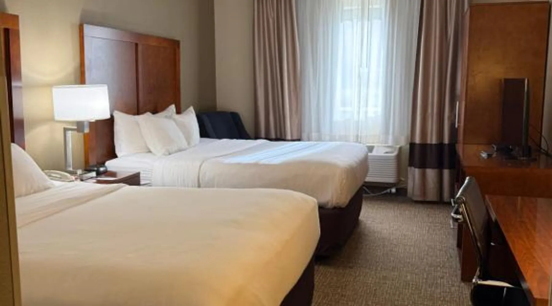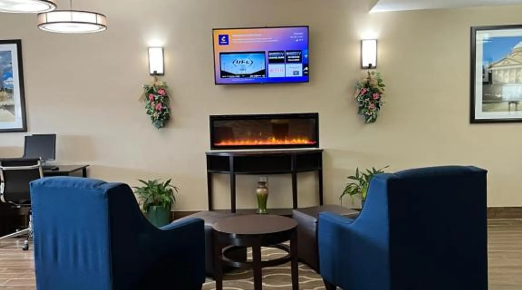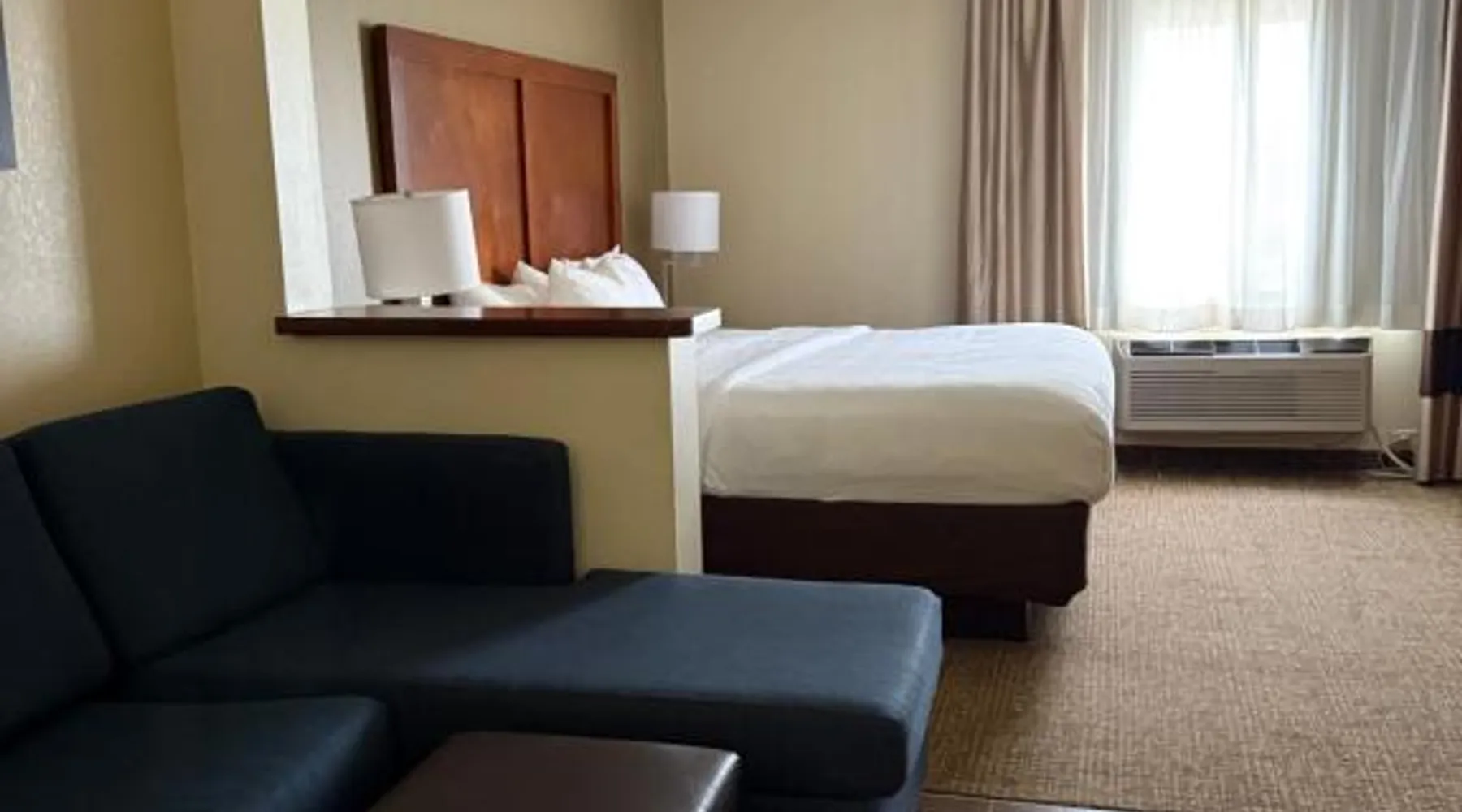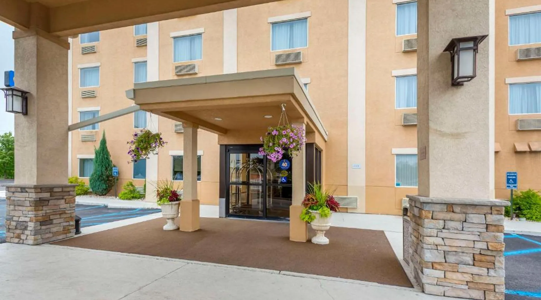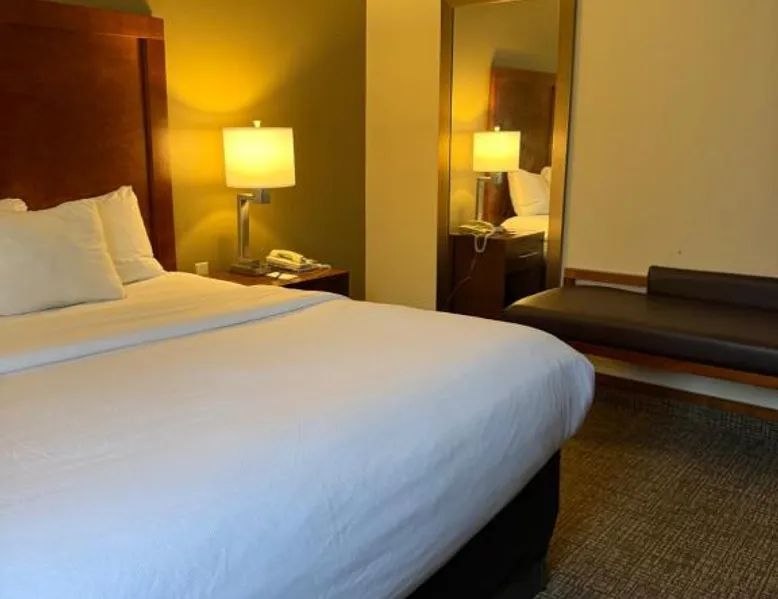 Comfort Inn & Suites Wilkes Barre - Arena hotel is located on Interstate 81, convenient to a number of area businesses, attractions and points of interest like the Mohegan Sun at Pocono Downs casino and racetrack, Mohegan Sun Arena, F.M. Kirby Center for the Performing Arts, Wilkes University and King's College. The Pocono Mountains are just minutes away. Visitors can enjoy browsing the shops at one of the many nearby malls. The Wilkes-Barre / Scranton International Airport is only 14 miles away; contact the hotel for shuttle information. A variety of restaurants can be found in the surrounding area. Taco Bell and a Perkins Restaurant are also located adjacent to this Pennsylvania hotel. Hotel amenities and features include free hot breakfast, free high-speed Internet access in all rooms, free local calls, and free coffee and other hot beverages available 24 hours. There is also the option to use the exercise room or relax in the indoor heated pool. This hotel provides business travelers with a guest computer and access to copy and fax services. All guest rooms feature refrigerators, microwaves, coffee makers, hair dryers, irons and ironing boards. A lit parking lot is on the property. Equipped with a microwave and small refrigerator, this spacious room offers cable TV, ironing facilities and a work area.