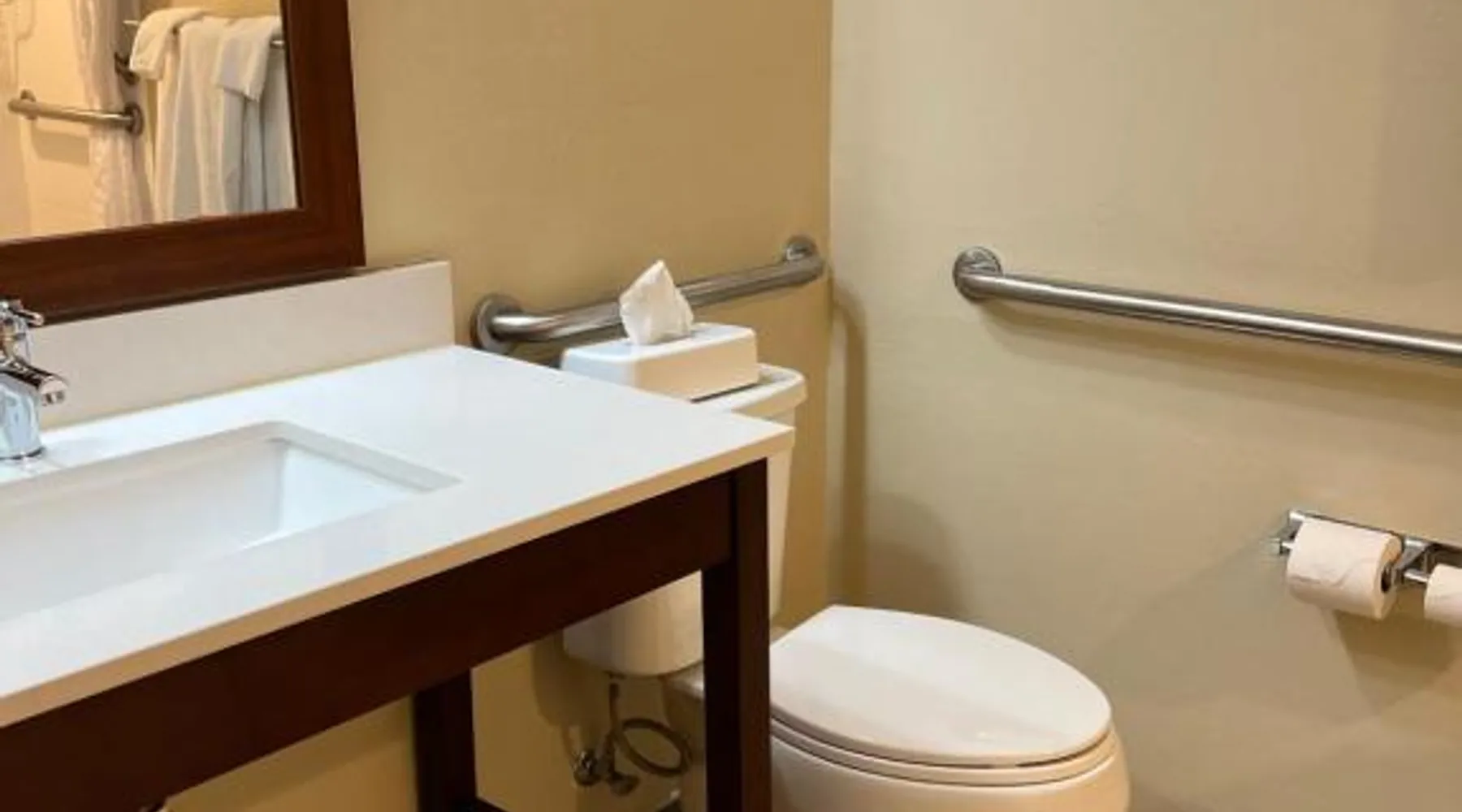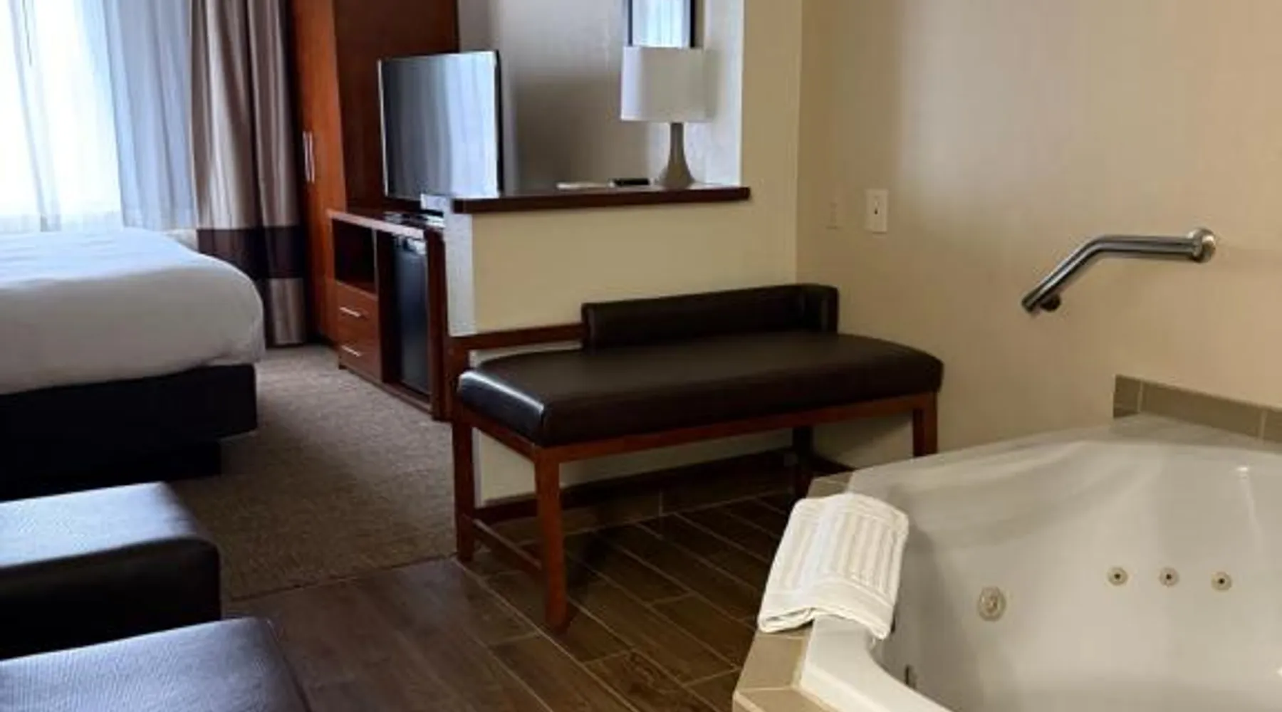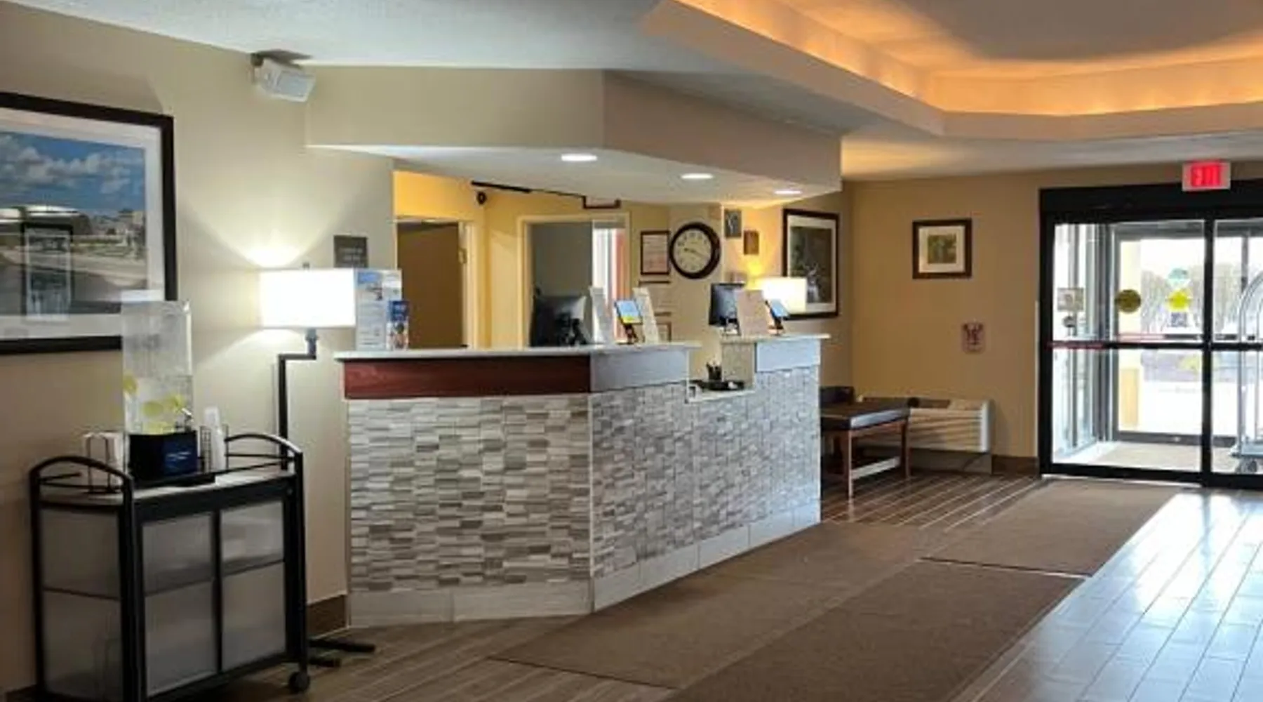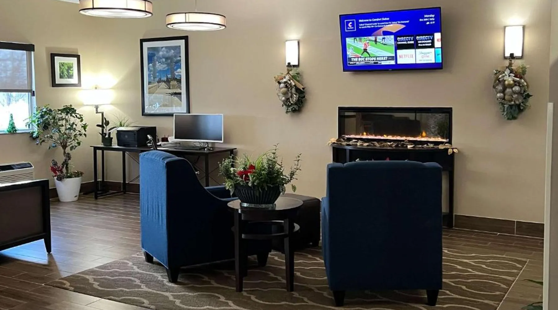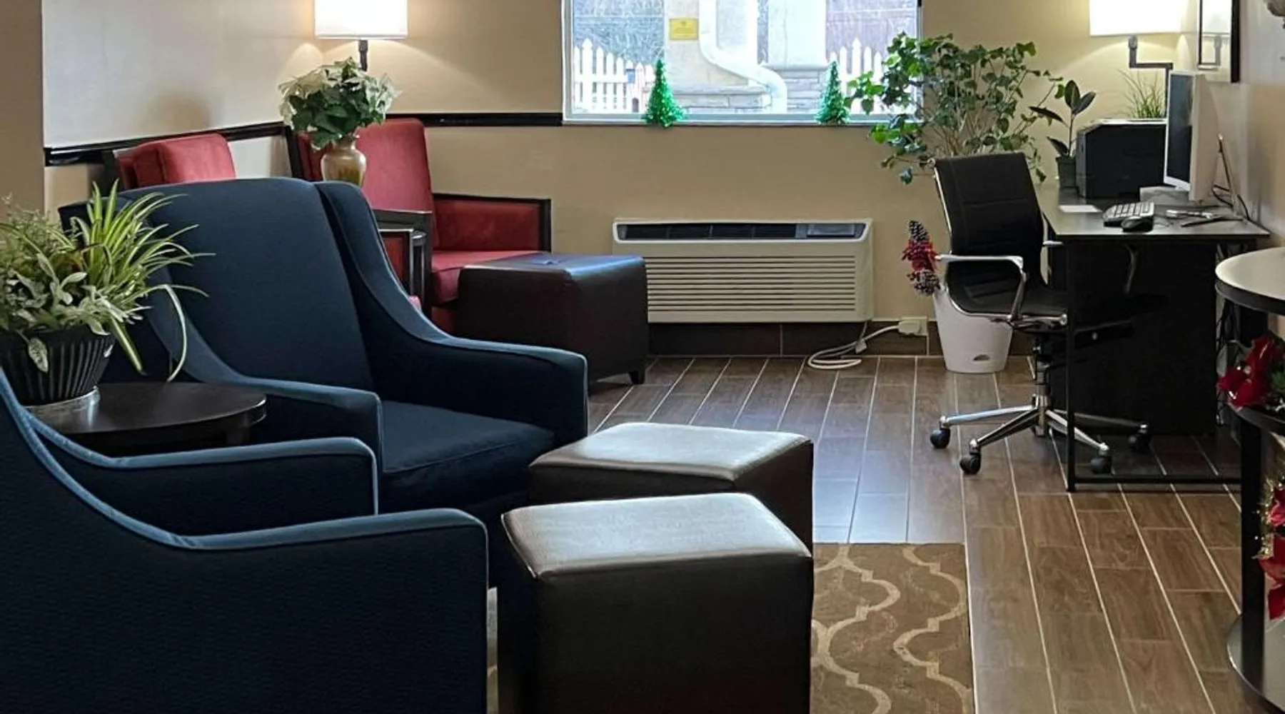 Comfort Inn & Suites Wilkes Barre - Arena hotel is located on Interstate 81, convenient to a number of area businesses, attractions and points of interest like the Mohegan Sun at Pocono Downs casino and racetrack, Mohegan Sun Arena, F.M. Kirby Center for the Performing Arts, Wilkes University and King's College. The Pocono Mountains are just minutes away. Visitors can enjoy browsing the shops at one of the many nearby malls. The Wilkes-Barre / Scranton International Airport is only 14 miles away; contact the hotel for shuttle information. A variety of restaurants can be found in the surrounding area. Taco Bell and a Perkins Restaurant are also located adjacent to this Pennsylvania hotel. Hotel amenities and features include free hot breakfast, free high-speed Internet access in all rooms, free local calls, and free coffee and other hot beverages available 24 hours. There is also the option to use the exercise room or relax in the indoor heated pool. This hotel provides business travelers with a guest computer and access to copy and fax services. All guest rooms feature refrigerators, microwaves, coffee makers, hair dryers, irons and ironing boards. A lit parking lot is on the property. Equipped with a microwave and small refrigerator, this spacious room offers cable TV, ironing facilities and a work area.