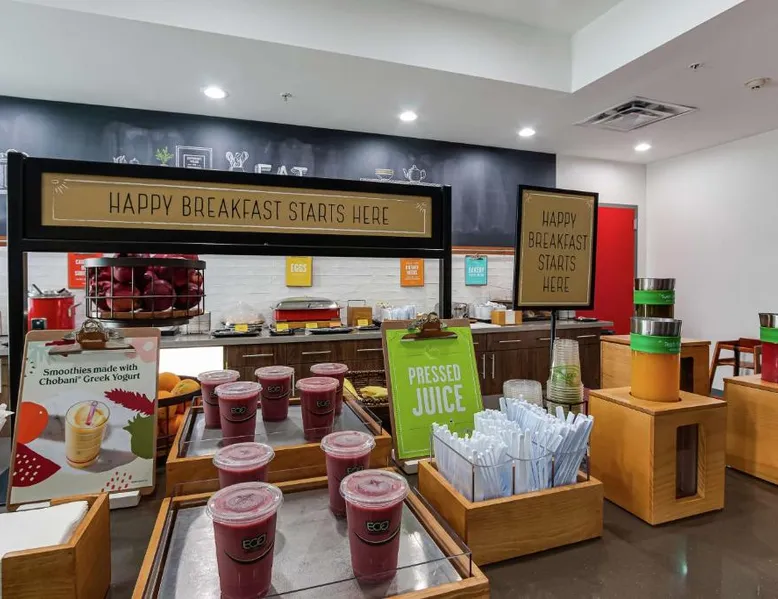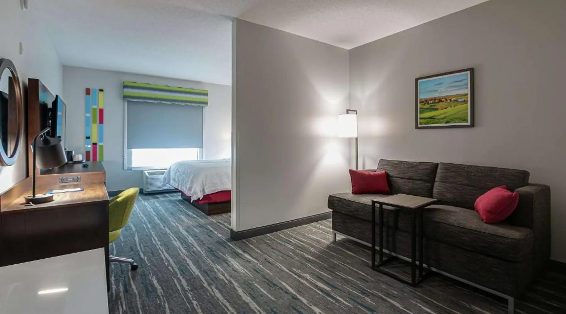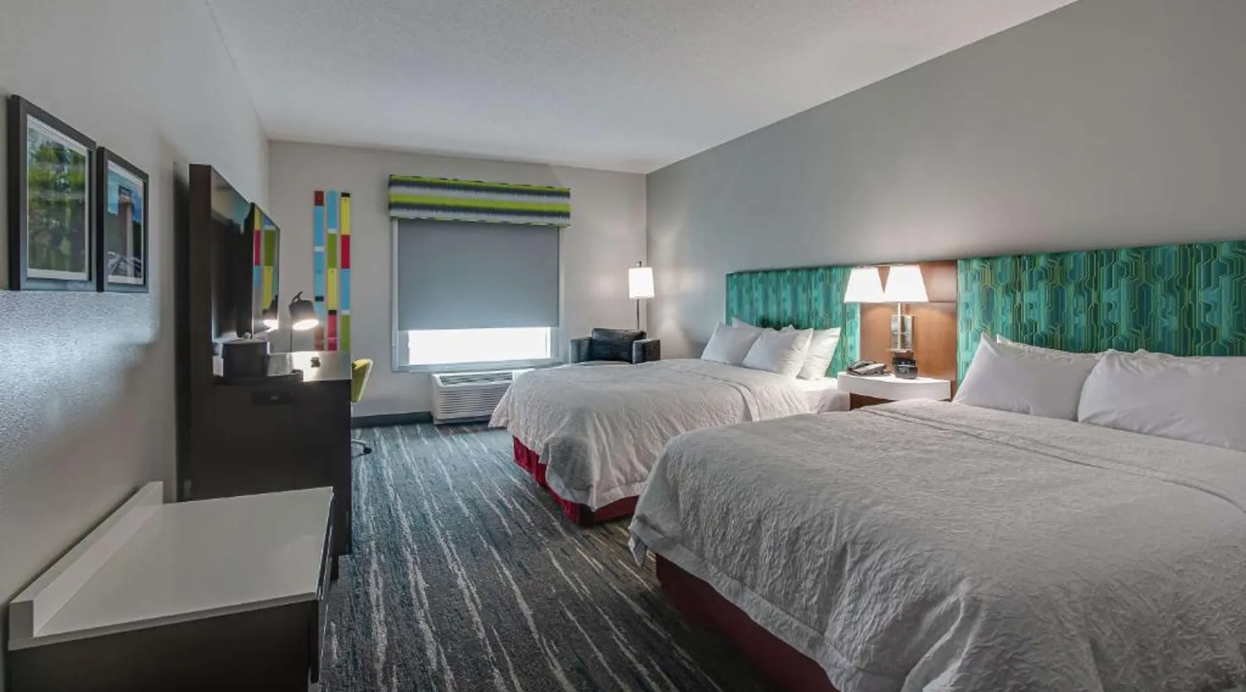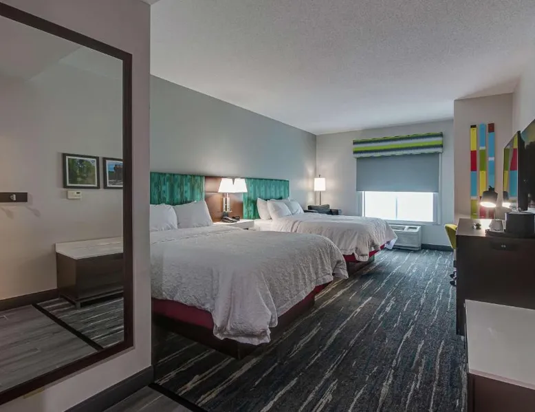Comfortable Accommodations: Hampton Inn Oak Grove Fort Campbell in Oak Grove offers comfortable rooms with air-conditioning, balconies, and free WiFi. Each room includes a tea and coffee maker, hairdryer, refrigerator, work desk, seating area, free toiletries, microwave, and TV. Exceptional Facilities: Guests can enjoy an indoor swimming pool, fitness room, and elevator. The hotel provides free on-site private parking, a 24-hour front desk, and free WiFi throughout the property. Convenient Location: Located 62 mi from Nashville International Airport, the hotel is near Fort Defiance Civil War Park & Interpretive Center (12 mi), McGregor Park Riverwalk (13 mi), and Customs House Museum and Cultural Center (14 mi). Guest Satisfaction: Highly rated for its attentive staff, excellent breakfast, and immaculate rooms. The air-conditioned quadruple room provides a TV with cable channels, a tea and coffee maker, a seating area and a safe deposit box. The unit offers 2 beds.