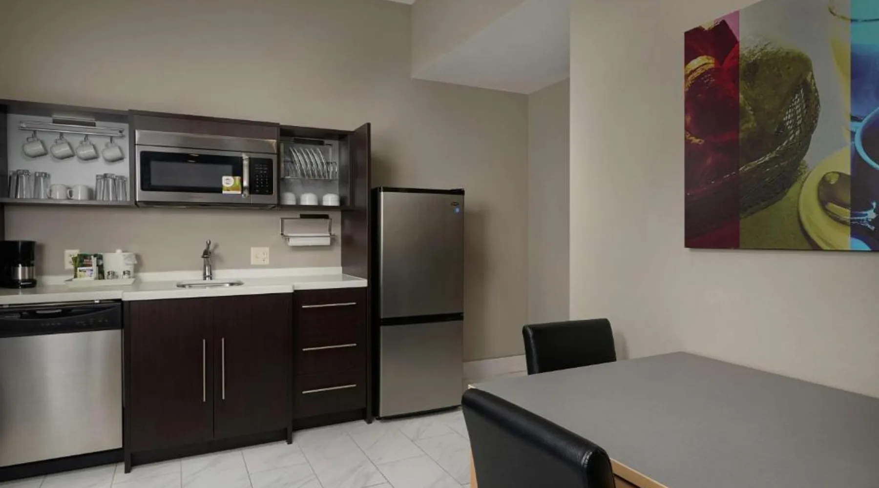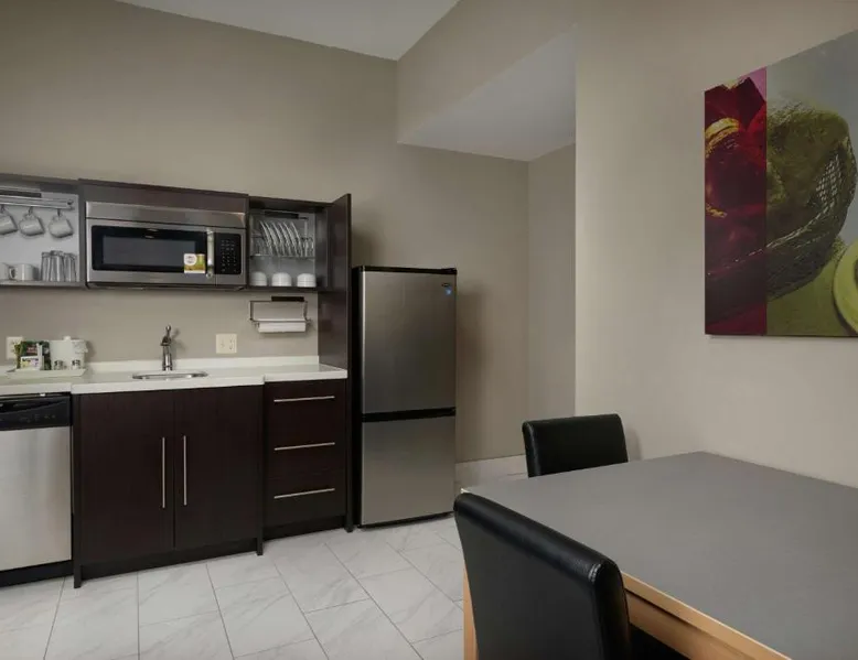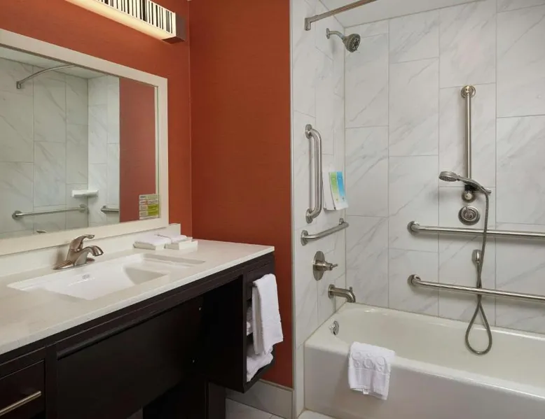 Comfortable Accommodations: Home2 Suites By Hilton Muskogee in Muskogee offers family rooms with air-conditioning, kitchen facilities, and free WiFi. Each room includes a sofa bed, work desk, and free toiletries. Leisure Facilities: Guests can enjoy a sun terrace, seasonal outdoor swimming pool, and free use of bicycles. The property also features an outdoor fireplace, fitness room, and outdoor seating areas. Convenient Services: The hotel provides a lounge, minimarket, and 24-hour front desk. Additional amenities include free on-site parking, daily housekeeping, and luggage storage. Nearby Attractions: Tulsa International Airport is 44 mi away. Guests appreciate the attentive staff, room cleanliness, and breakfast provided by the property. In the well-equipped kitchen, guests will find a refrigerator, a dishwasher, kitchenware and a microwave. This studio is air-conditioned and features a flat-screen TV, a tea and coffee maker, a seating area and heating. The unit offers 2 beds.