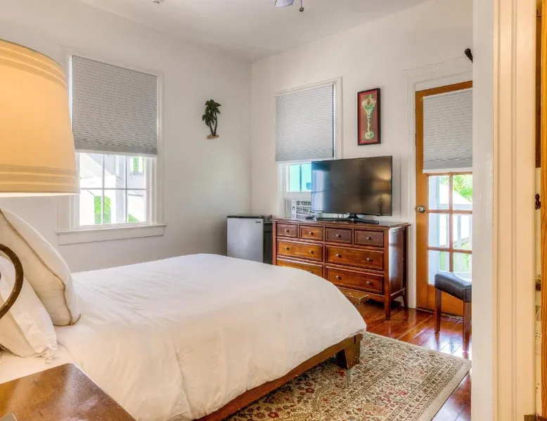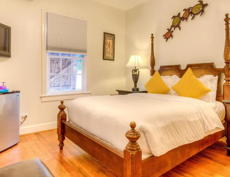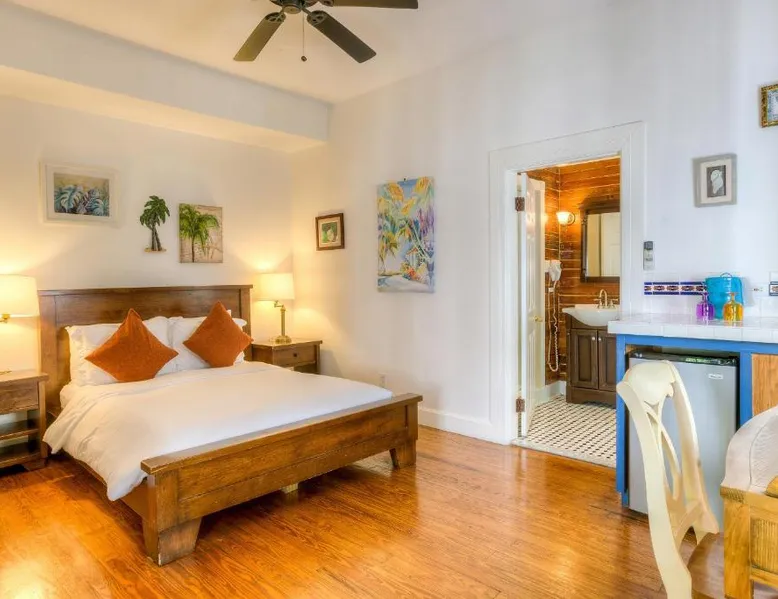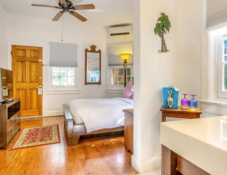 Historic Setting: Key West Harbor Inn - Adults Only is located in Key West city center, housed in a historic building. The property offers a sun terrace, garden, open-air bath, bar, indoor swimming pool, and free WiFi. Comfortable Accommodations: Rooms feature air-conditioning, private bathrooms with walk-in showers, garden or pool views, and amenities such as tea and coffee makers, hairdryers, and free toiletries. Additional facilities include a terrace, balcony, and work desk. Exceptional Services: Guests benefit from concierge service, housekeeping, bike hire, luggage storage, and outdoor seating areas. The property is 2.5 mi from Key West International Airport and near attractions like Ernest Hemingway Home and Museum (0.6 mi) and Mallory Square (2297 feet). Guest Favorites: Visitors appreciate the convenient location, swimming pool, and attentive staff. Activities available include cycling, snorkeling, and water sports. The spacious double room provides air conditioning, a private entrance, a terrace with garden views as well as a private bathroom featuring a walk-in shower. The unit offers 1 bed.