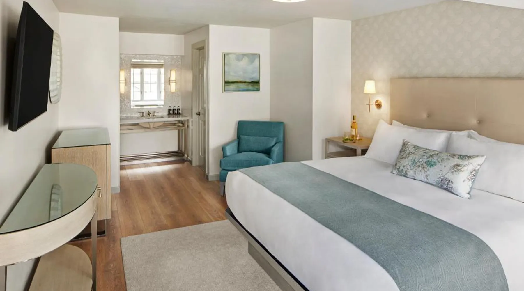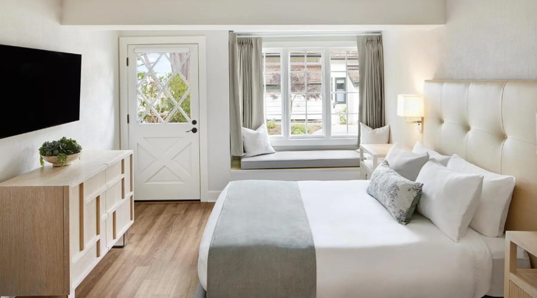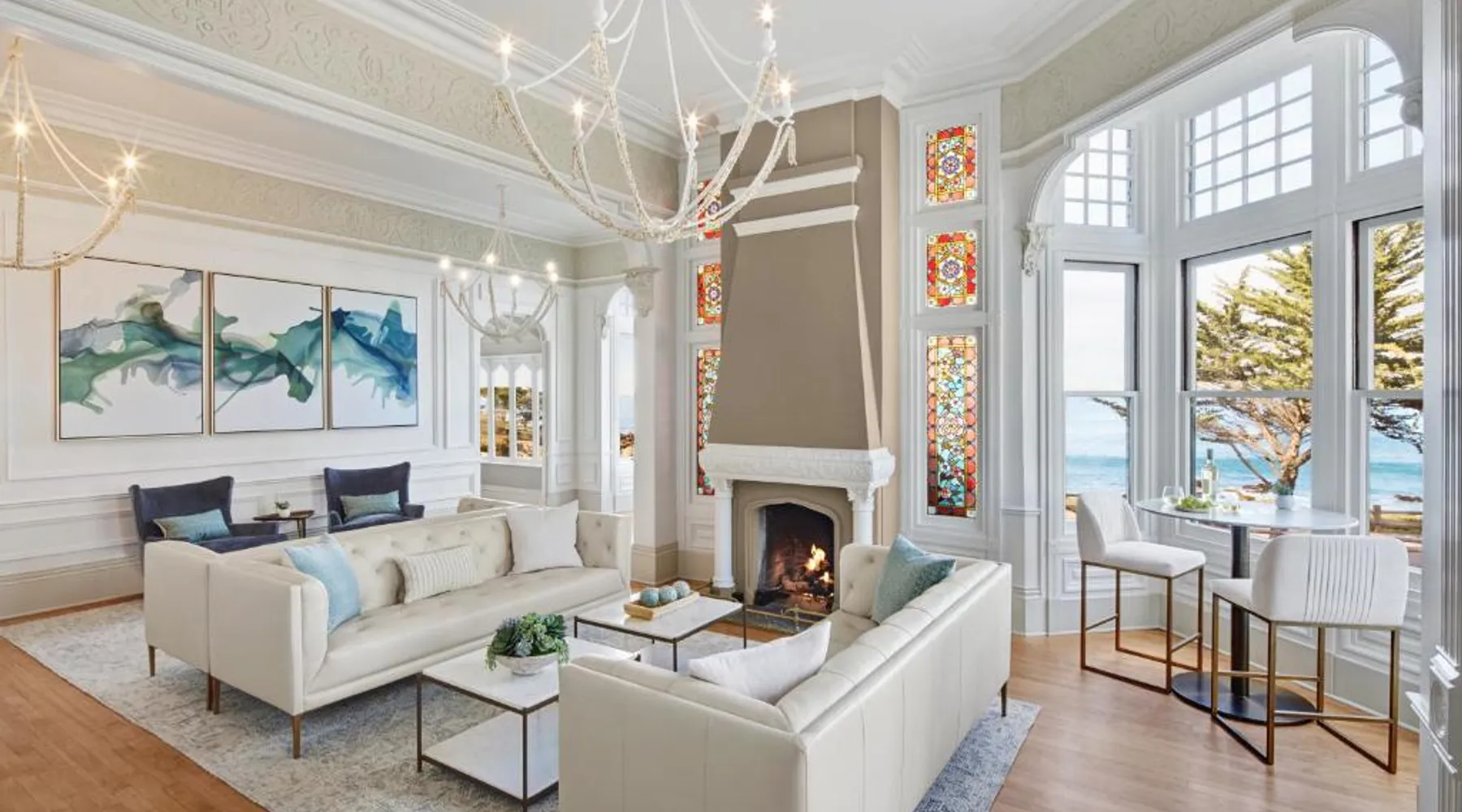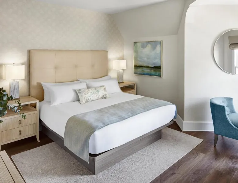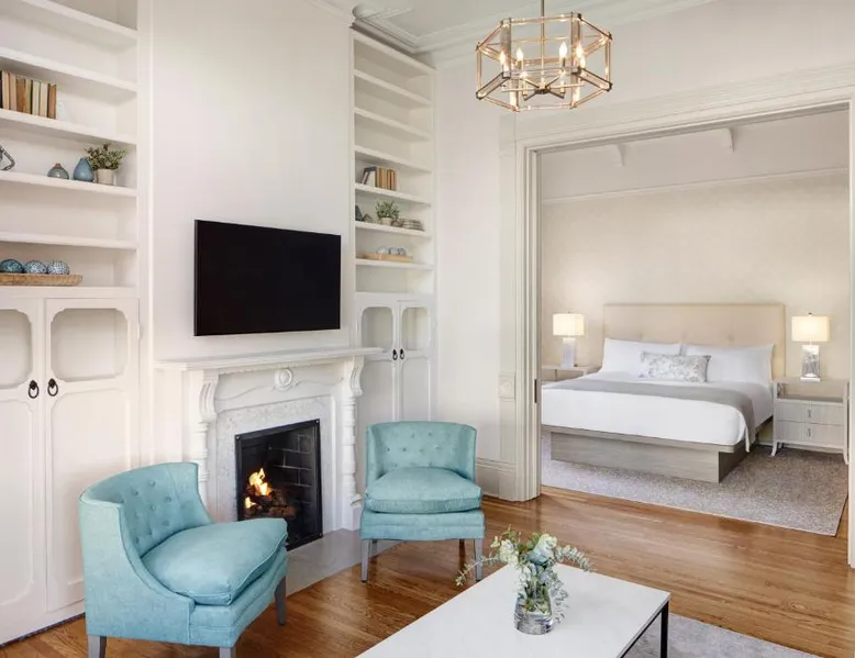 Comfortable Accommodations: Green Gables Inn, A Four Sisters Inn in Pacific Grove offers private bathrooms with sea views, balconies, and modern amenities. Each room includes a fireplace, tea and coffee maker, and free WiFi. Exceptional Facilities: Guests can relax in the garden or outdoor seating area. The inn provides a concierge service, tour desk, and luggage storage. Additional amenities include a spa bath, work desk, and free parking. Prime Location: Located 5 mi from Monterey Regional Airport, the inn is near Lovers Point Beach (13-minute walk), Monterey Bay Aquarium (less than 0.6 mi), and Cannery Row (16-minute walk). Hiking, cycling, and boating are available in the surroundings. Guest Favorites: Guests highly rate the breakfast provided by the property, convenient location, and scenic views. Also known as the "Deluxe Queen Guestroom" this room features a small private bathroom and view of the Monterey Bay from a window seat in a gable loft.