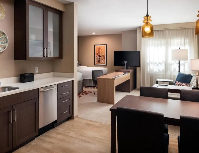 Comfortable Accommodations: Residence Inn by Marriott Santa Barbara Goleta in Goleta offers air-conditioned rooms with private bathrooms, kitchen facilities, and free WiFi. Each room includes a sofa bed, work desk, and TV. Exceptional Facilities: Guests can enjoy a fitness center, outdoor swimming pool, terrace, and free bicycles. Additional amenities include an outdoor fireplace, hot tub, and barbecue facilities. Convenient Location: Located 3281 feet from Santa Barbara Airport, the hotel is near attractions such as the Santa Barbara Museum of Art (9.3 mi) and Granada Theater (9.9 mi). Free on-site private parking is available. Guest Services: The hotel provides a 24-hour front desk, minimarket, grocery delivery, business area, and meeting rooms. A buffet breakfast with fresh pastries is served daily. Featuring free toiletries, this studio includes a private bathroom with a bath or a shower and a hairdryer. Guests can make meals in the kitchen that features a refrigerator, a dishwasher, kitchenware and an oven. The spacious studio features air conditioning, a tea and coffee maker, a seating area, a dining area, as well as a flat-screen TV with cable channels. The unit has 3 beds.