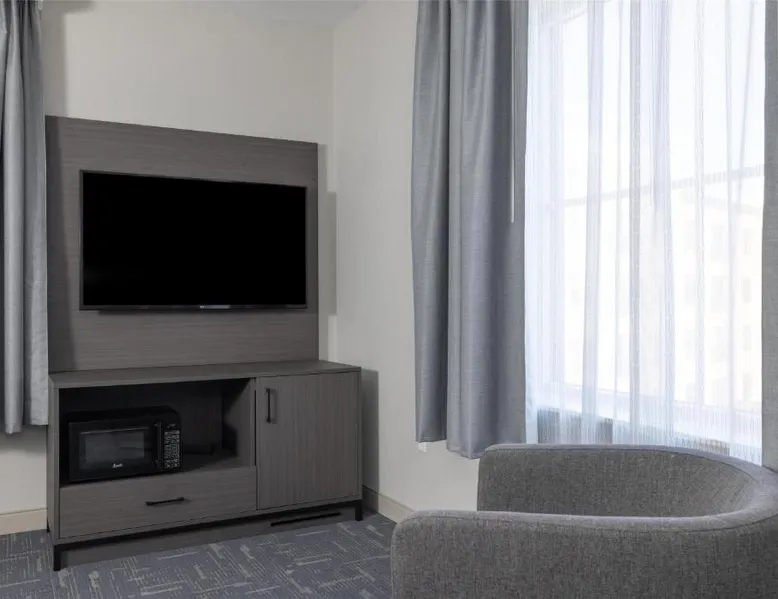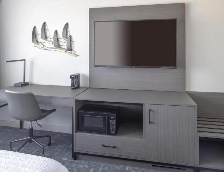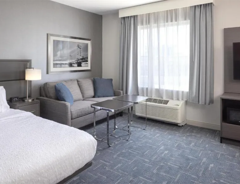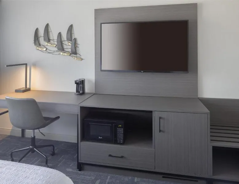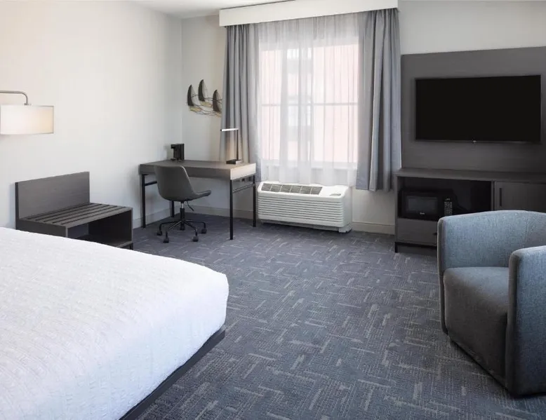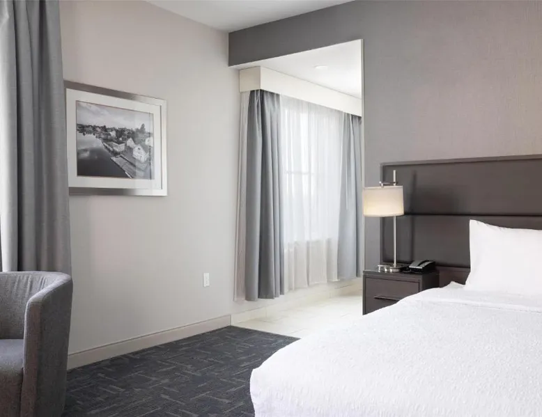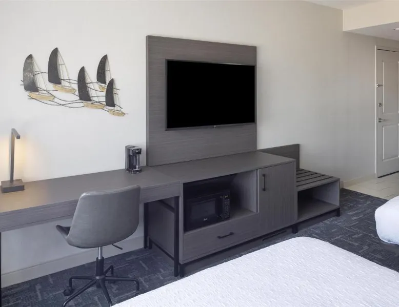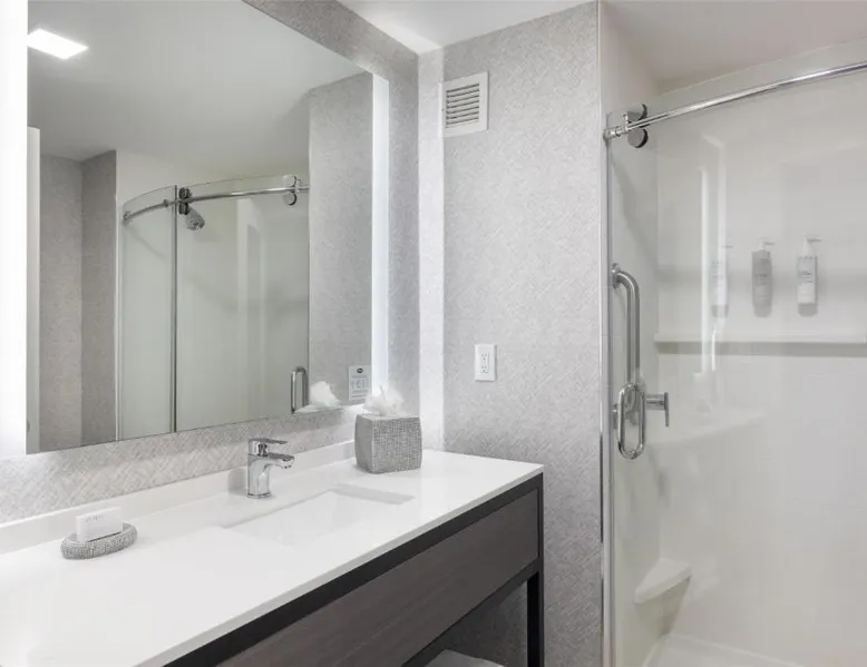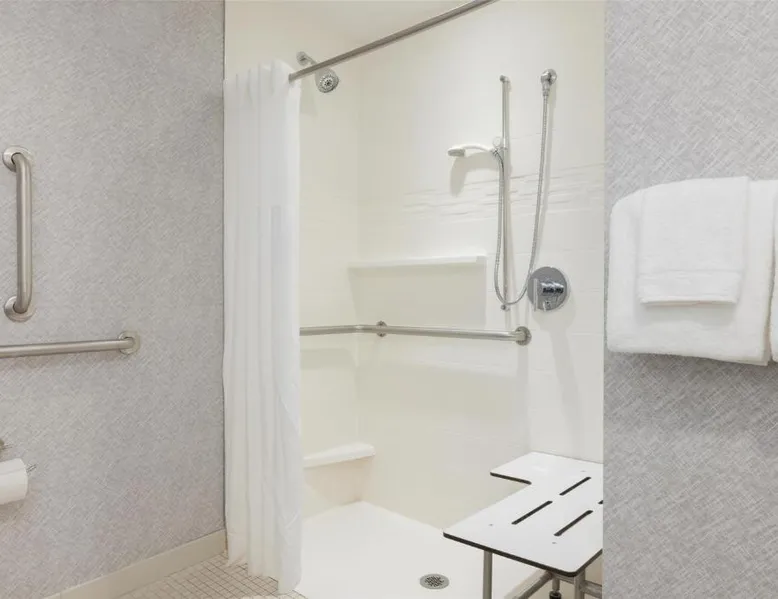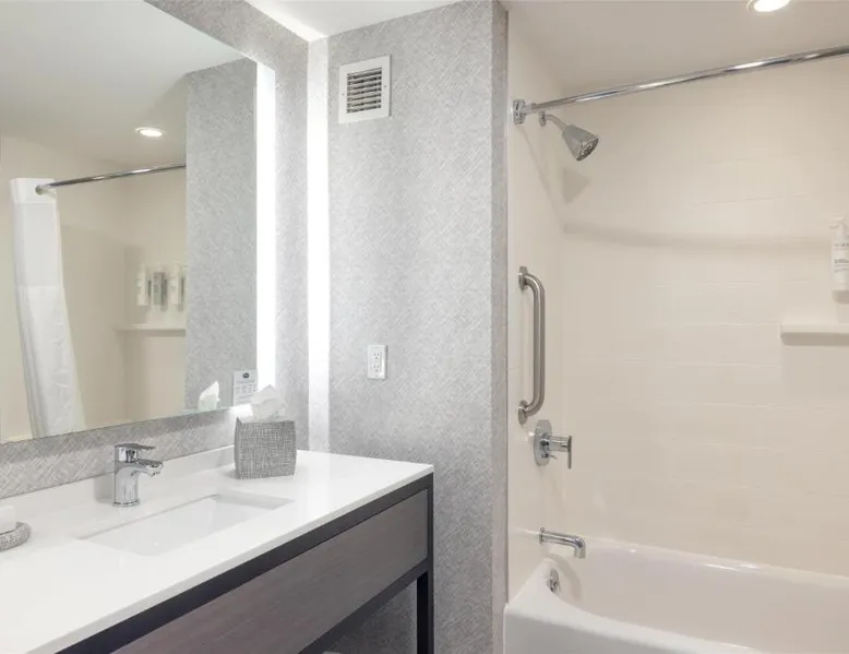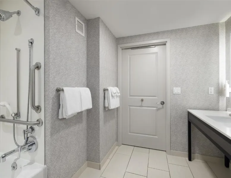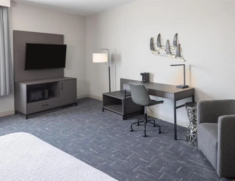 Featuring an indoor swimming pool and a gym, this hotel is in Portsmouth. Free Wi-Fi access is available and breakfast is served daily. A flat-screen HD TV, a refrigerator, and a microwave are included in each guest room at Hampton Inn & Suites Portsmouth Downtown. The private bathrooms include a hairdryer. Portsmouth Downtown Hampton Inn & Suites has a 24-hour front desk. Laundry facilities are available. Strawbery Banke Museum is a 4-minute drive from the property. The Kittery Outlets are a 7-minute drive away. This room has a visual alarm and notification devices for the doorbell and incoming phone calls. The bathroom is equipped with a roll-in shower. The room also features a refrigerator, a microwave, and a flat-screen TV. Please note, photos may not reflect the specific accessible room type.
