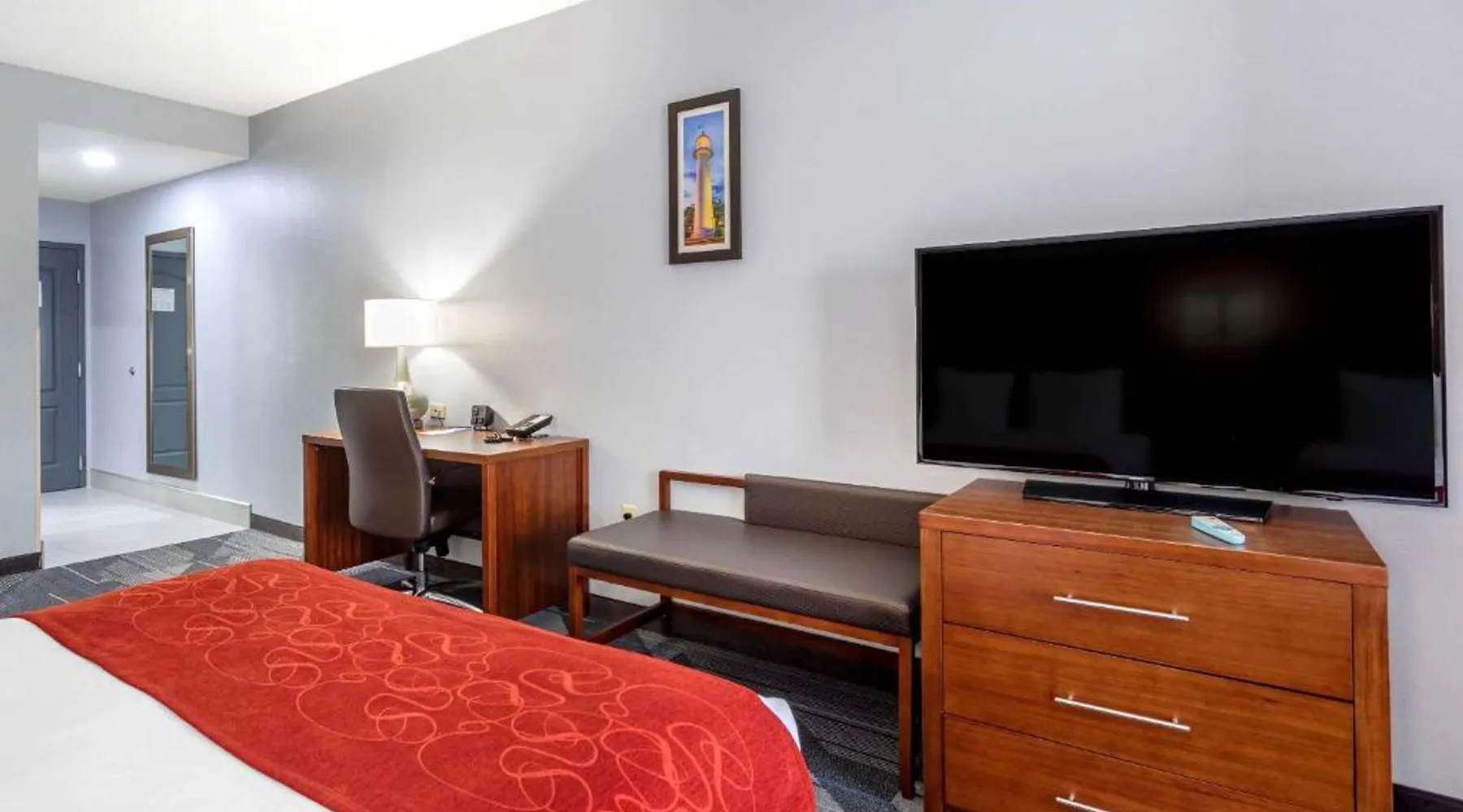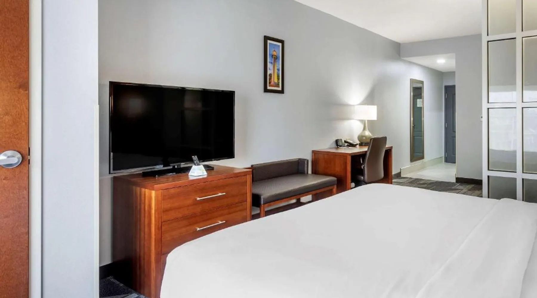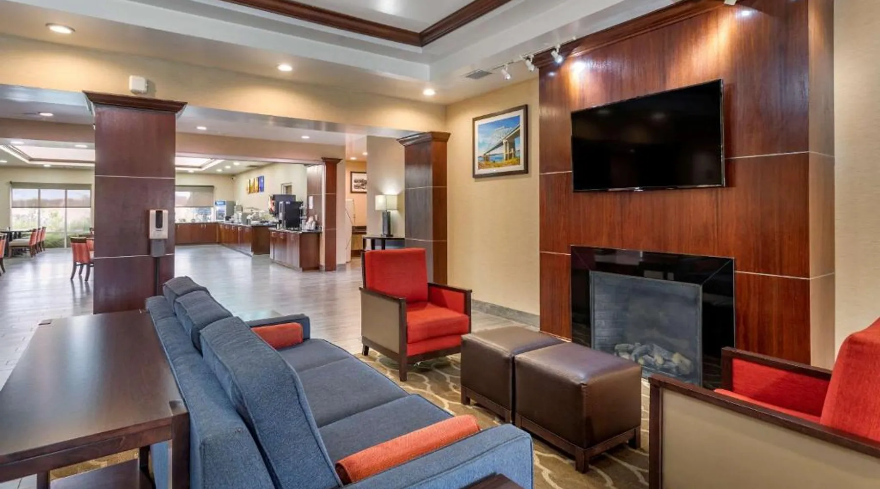 The Comfort Suites hotel is conveniently located on U.S. Highway 78 in the commercial area of town. This Olive Branch, MS hotel is minutes from the DeSoto Civic Center. Downtown Memphis, the famous Graceland estate and former home of Elvis Presley, the Memphis Zoo, FedEx Forum arena, Mike Rose Soccer Complex, the Olive Branch Airport and popular Beale Street are less than 20 miles away. All guest rooms come equipped with microwaves, refrigerators, flat-screen televisions, mini bars, voice mail, irons, ironing boards, hair dryers, coffee makers, desks, safes and cable television. Keep your electronic devices charged with the recharge device including AC and USB outlets provided in all guest rooms. Rooms with whirlpool bathtubs are offered for that special occasion. Laundry facilities are located on the property for your added convenience. As a guest of this Olive Branch, MS hotel, you'll enjoy amenities and features like: Free wireless high-speed Internet access; Free local calls; Free coffee; Manager's reception Monday through Thursday 5:30 p.m. - 7 p.m. Enjoy our free hot breakfast featuring eggs, meat, yogurt, fresh fruit, cereal and more, including your choice of hot waffle flavors! If you're leaving early, a Your Suite Success Grab & Go bag is available for the two hours prior to breakfast. After a busy day, relax in the seasonal outdoor pool. Be sure to take advantage of the on-site exercise room.Corporate travelers will appreciate access to copy and fax services. The meeting room accommodates up to 100 people. The city of Olive Branch has many community parks, offering lakes, tennis courts, a playground, baseball fields, walking and nature trails, a scenic overlook, an amphitheater and a picnic pavilion. Three upscale golf courses are close to our hotel. Several shopping opportunities are located just minutes away. We are walking distance from a variety of restaurants and movie theaters. This suite has a mini-bar, a sofa bed and a 50-inch flat-screen TV.