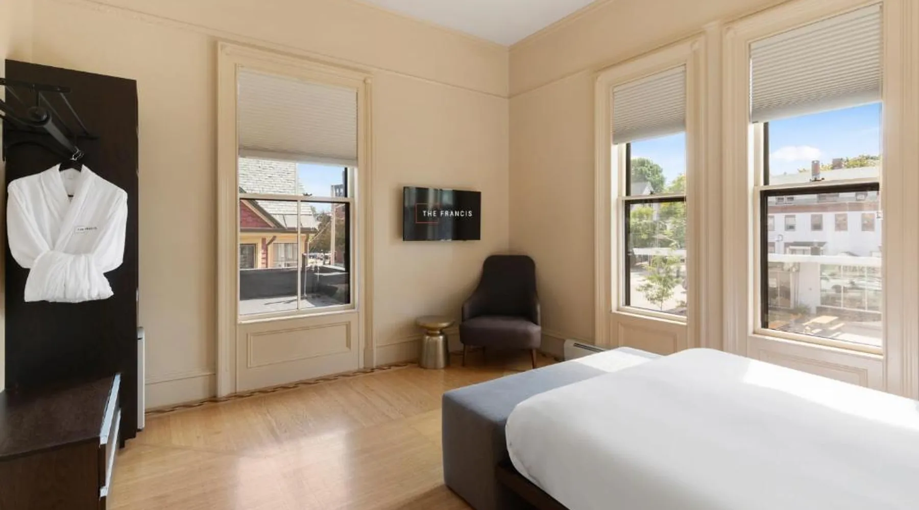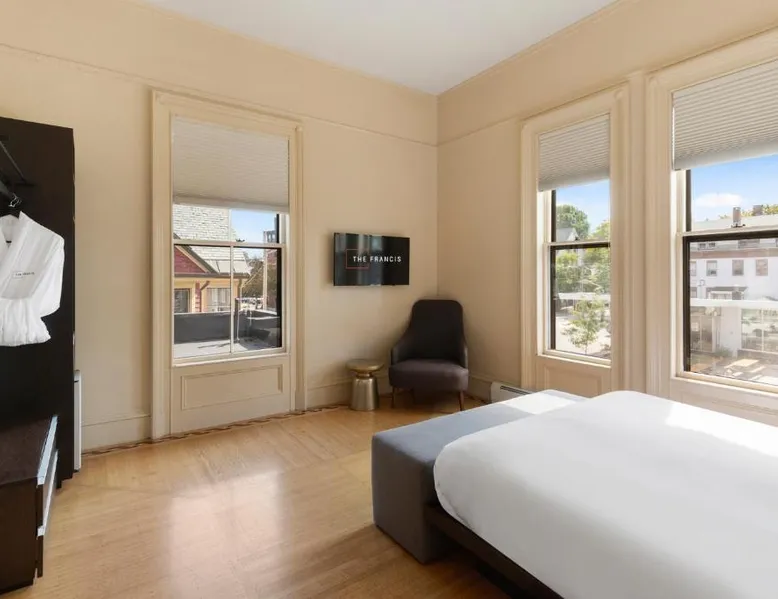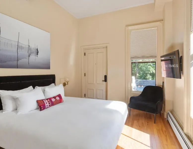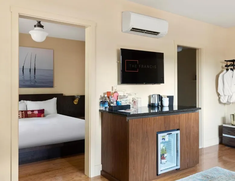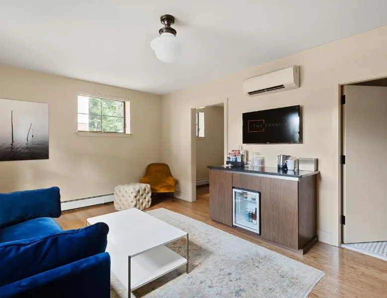 The Francis Hotel, a historic landmark, is located in Portland's Bramhall neighborhood, near Art District. Free WiFi is provided throughout the property. Located on the second floor. Museums, galleries, theaters, skating rinks, craft breweries and boutiques are within a 0.9 mi radius of the property. Portland International Jetport Airport is 3.2 mi from The Francis Hotel. This suite features 1 living room, 1 separate bedroom and 1 bathroom with a walk-in shower and free toiletries. The suite has parquet floors, a seating area with a flat-screen TV with cable channels, air conditioning, a tea and coffee maker, as well as a wardrobe. The unit has 1 bed.