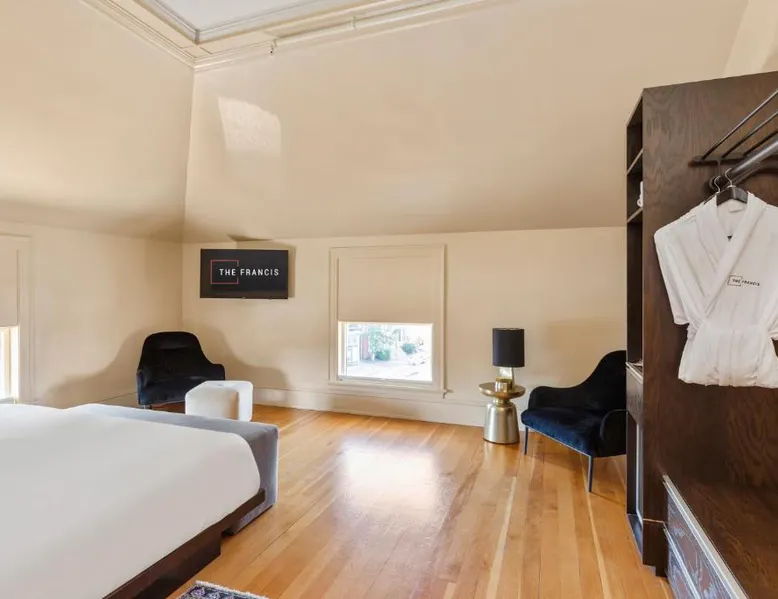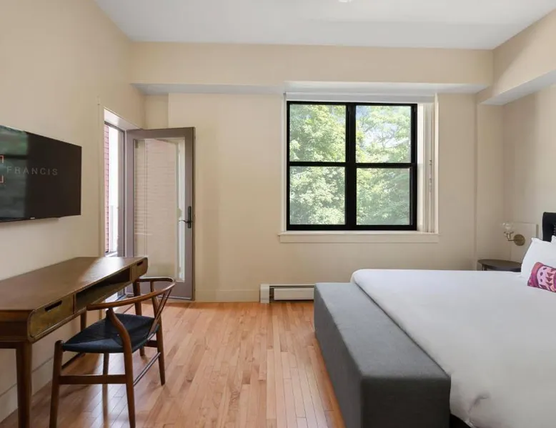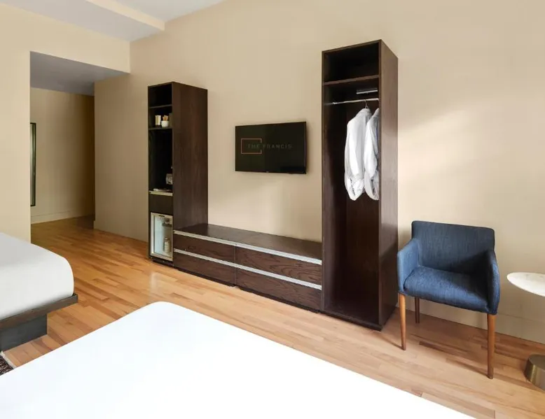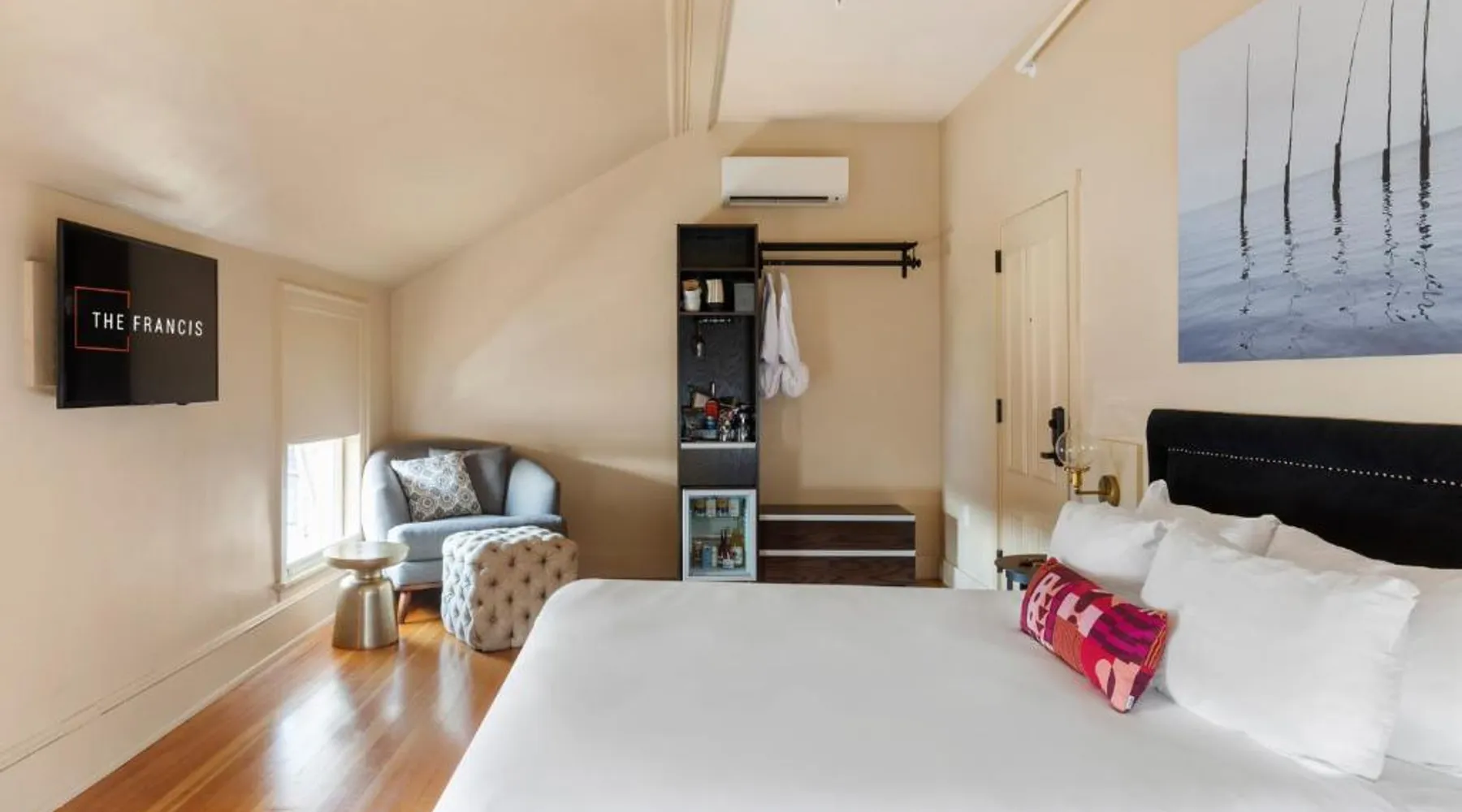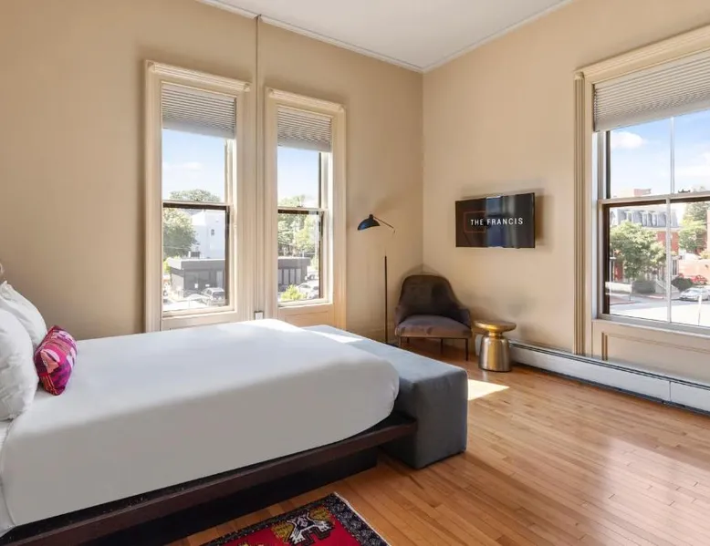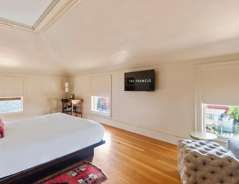The Francis Hotel, a historic landmark, is located in Portland's Bramhall neighborhood, near Art District. Free WiFi is provided throughout the property. Located on the second floor. Museums, galleries, theaters, skating rinks, craft breweries and boutiques are within a 0.9 mi radius of the property. Portland International Jetport Airport is 3.2 mi from The Francis Hotel. This suite features 1 living room, 1 separate bedroom and 1 bathroom with a walk-in shower and free toiletries. The suite has parquet floors, a seating area with a flat-screen TV with cable channels, air conditioning, a tea and coffee maker, as well as a wardrobe. The unit has 1 bed.