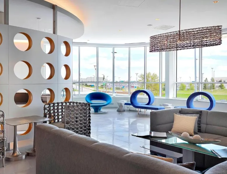 Comfortable Accommodations: Rooms feature air-conditioning, private bathrooms, and modern amenities such as free WiFi, streaming services, and work desks. Additional comforts include bathrobes, mini-bars, and soundproofing. Dining and Leisure: The modern restaurant serves local cuisine with vegetarian, vegan, gluten-free, and dairy-free options. Guests can enjoy brunch, lunch, dinner, and cocktails in a relaxed setting. The hotel also offers a fitness center, indoor swimming pool, hot tub, and free bicycles. Convenient Location: Located in Nisku, the hotel is a few steps from Edmonton International Airport. Nearby attractions include Whyte Avenue (17 mi), University of Alberta (19 mi), and West Edmonton Mall (24 mi). Guests appreciate the connectivity to the airport and the attentive staff. Free WiFi, a flat-screen cable TV and a seating area are featured in this spacious room. A mini fridge and a coffee machine are included. This room enjoys Club Lounge access which includes: - Continental breakfast - Midday snack - Afternoon tea - Hors d'oeuvres - Dessert - Honor bar - Complimentary nonalcoholic beverages - Complimentary business services The Club Lounge is open Monday-Thursday 6:30-22:00, Friday-Saturday 6:30-21:00, Sunday 17:30-21:00