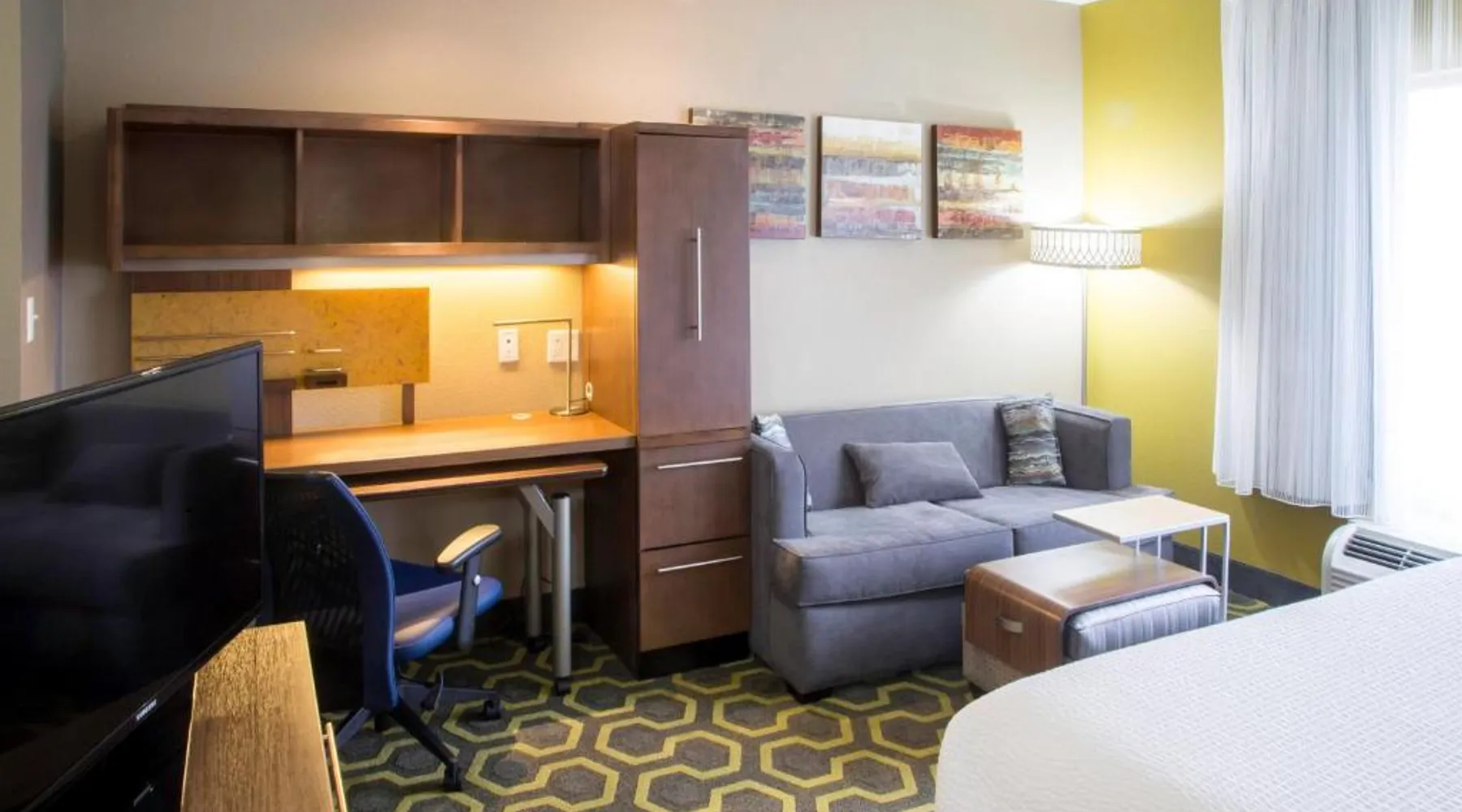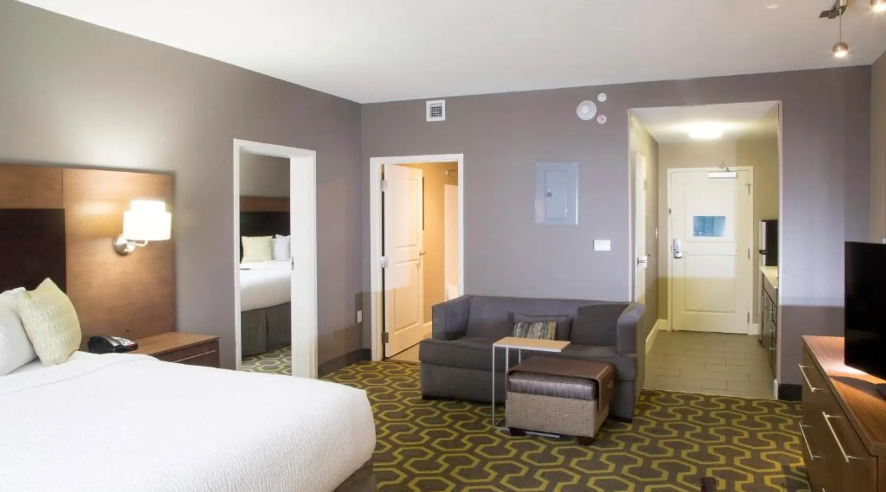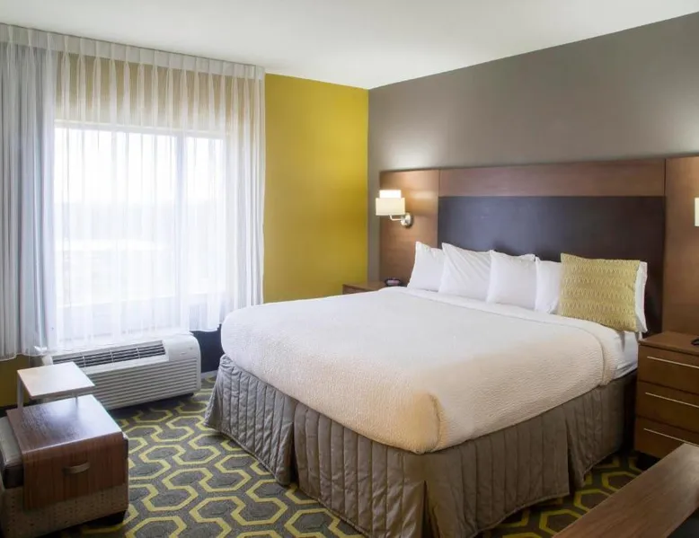 Comfortable Accommodations: TownePlace Suites by Marriott Oxford in Oxford offers comfortable rooms with air-conditioning, private bathrooms, and fully equipped kitchens. Each room includes a refrigerator, microwave, stovetop, and TV. Essential Facilities: Guests enjoy free WiFi, a 24-hour front desk, and free on-site parking. The hotel provides a continental and à la carte breakfast with fresh pastries and fruits. Prime Location: Located 3.1 mi from Vaught-Hemingway Stadium and 49 mi from Tupelo Regional Airport. Highly rated by guests for its excellent service and amenities. The suite features air conditioning.