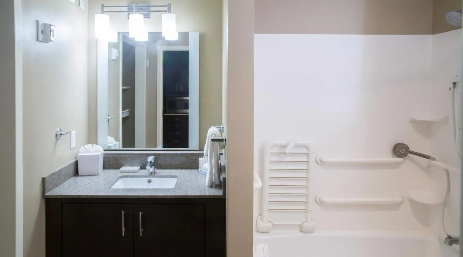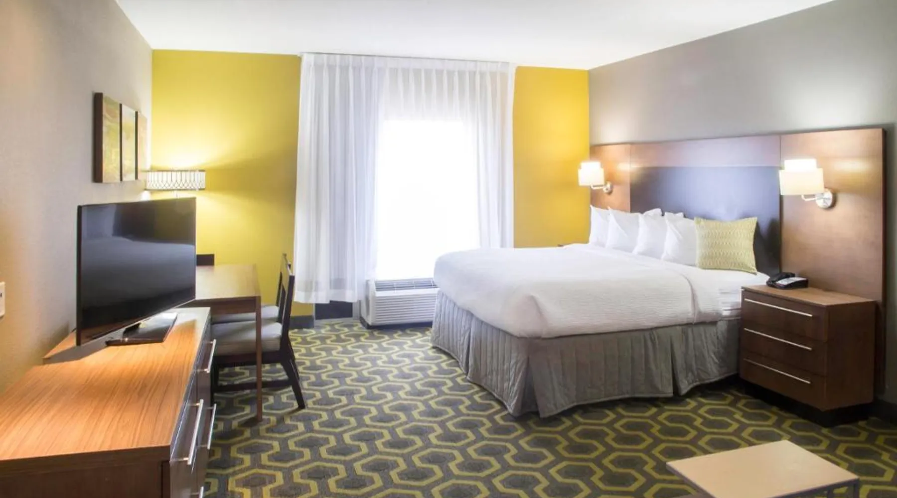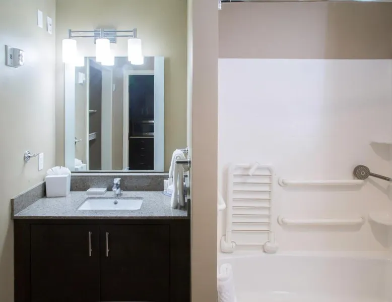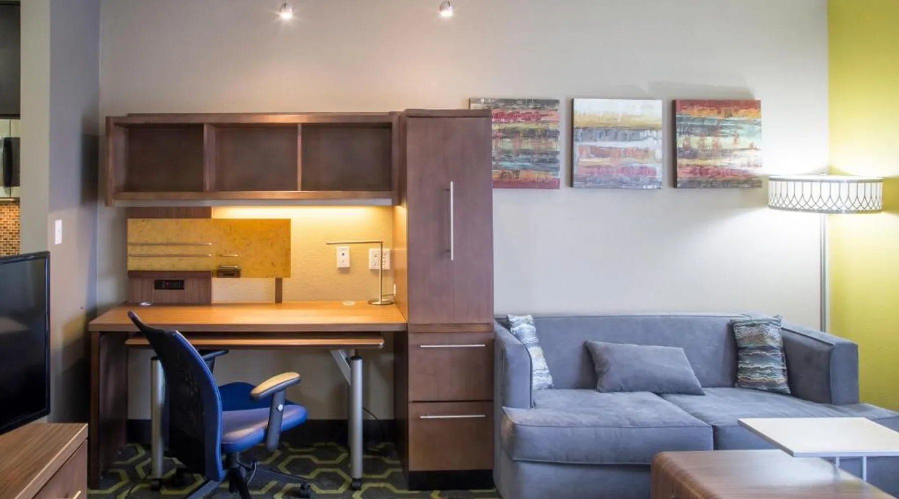 Comfortable Accommodations: TownePlace Suites by Marriott Oxford in Oxford offers comfortable rooms with air-conditioning, private bathrooms, and fully equipped kitchens. Each room includes a refrigerator, microwave, stovetop, and TV. Essential Facilities: Guests enjoy free WiFi, a 24-hour front desk, and free on-site parking. The hotel provides a continental and à la carte breakfast with fresh pastries and fruits. Prime Location: Located 3.1 mi from Vaught-Hemingway Stadium and 49 mi from Tupelo Regional Airport. Highly rated by guests for its excellent service and amenities. The suite features air conditioning.